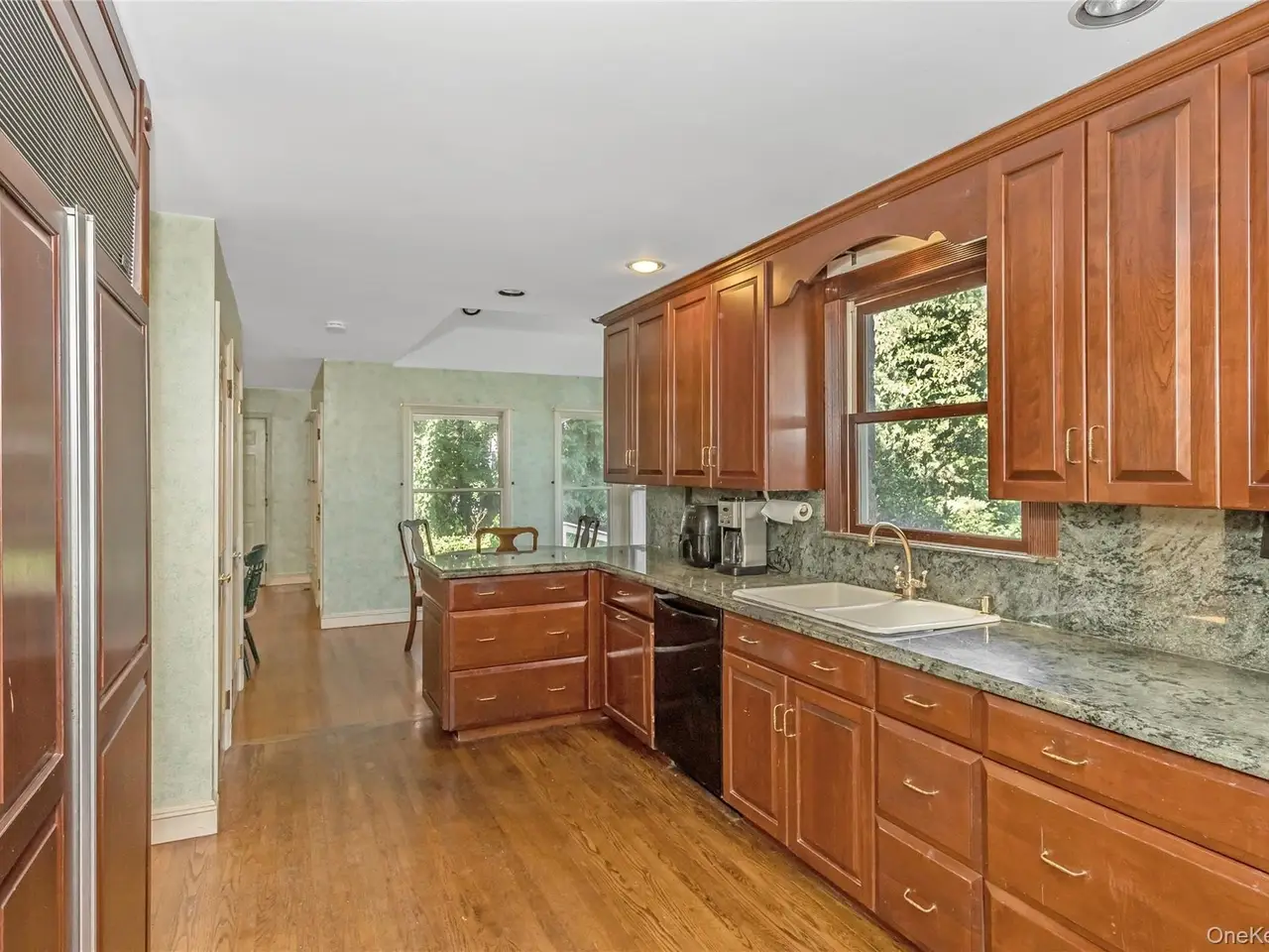Welcome to 45 Orchard Meadow Road in East Williston! Perched atop a scenic hill in East Williston, this 4-bedroom, 3-bath Colonial offers timeless character, exceptional space, and sweeping views of the golf course and evening sunsets. With approximately 2,800 sq ft of interior living space plus a spacious 1,500 sq ft full basement with a private outside entrance, the home is well-suited for both everyday living and entertaining. The main level features a welcoming living room with fireplace, a formal dining room, a versatile den, and a thoughtfully laid-out kitchen. Upstairs, you'll find four generously sized bedrooms and two full baths. A third full bath is located on the main floor for added convenience. Set on a 15,000 sq ft lot (0.36 acres), the property boasts mature landscaping and flowerbeds lovingly planted and maintained by the owner's mother, a passionate gardener. With just a bit of attention, the gardens can be revived back to their full beauty. Trimming back overgrown hedges could also significantly expand the private backyard. Additional highlights include a full walk-out basement, central air conditioning, 2-zone gas heating, anew hot water heater, in-ground sprinkler system, and a roof that was replaced approximately 10 years ago. Being sold in as-is condition, this home presents an opportunity in a solid, well-maintained property with exceptional views and strong foundation.