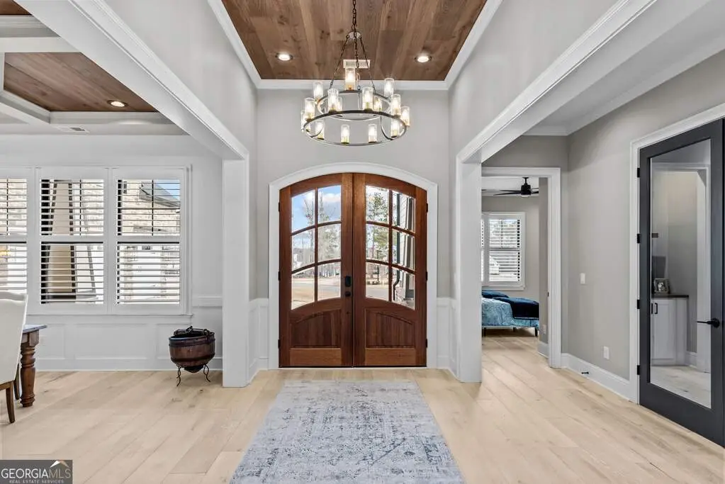 THIS EXQUISITE CUSTOM-BUILT HOME AWAITS YOU AT HARMONY BAY ON LAKE OCONEE! This nearly new home was constructed in 2023 on a .72-acre lake view lot with gorgeous year-round lake views, and your deeded assigned boat slip is just a few steps away. Designed to elevate your lifestyle, this sprawling one-story home boasts over 5, 900 sqft and is ideal for luxurious living and effortless entertaining. The attention to detail is evident in the quality of construction and the thoughtful selections and finishes throughout the house. The two-story Great Room has a floor-to-ceiling fireplace with custom built-ins and coffered ceilings. The spacious primary suite provides a luxurious bathroom with dual vanities, a glass-enclosed massaging shower & tub with waterfall tile, separate water closets, double custom closets, and a dressing area. Three additional guest suites are on the opposite side of the house, offering ultimate privacy and comfort. The chef's kitchen is adorned with stylish Z-Line black stainless-steel appliances, abundant custom cabinetry with pull-out cabinets for ease of use and storage, and gorgeous quartz countertops. The butler's pantry has a glass door entry with custom cabinets and shelving to store your countertop appliances and daily essentials. Additional features of this home include the study with glass French doors and a cozy fireplace, the dining room/living room with intricate ceiling details and custom lighting, a spacious laundry room with abundant cabinets and a utility sink, a half bath, and a mud room just off the garage. A large bonus room/guest suite over the garage is the perfect flex space to meet your desired needs. Additional storage is provided in the walk-in attic with upgraded foam insulation. This house would not be complete without outdoor living, and this one is sure to satisfy. The sliding glass doors in the great room open to a covered porch with multiple fans, a brick-faced fireplace, and a built-in grilling area. The 3-car garage has an electric car charging station, epoxy flooring, abundant custom storage cabinets, and a large utility closet. Harmony Bay is a Gated Community with a private boat ramp, assigned slips, and daily-use docks. Conveniently located to all local amenities. The majority of the furniture is negotiable on a separate bill of sale. The seller also owns a lot in Reynolds with a golf membership and is willing to sell separately. Call us today to schedule your private tour of this amazing property!!