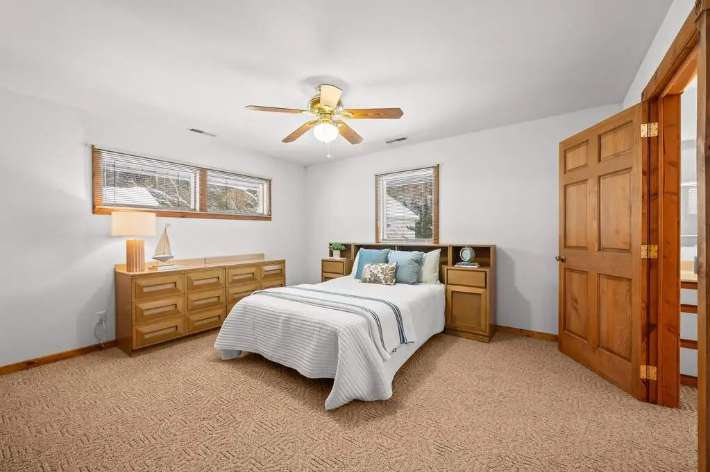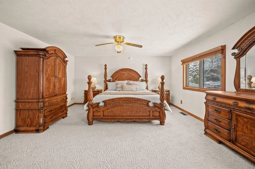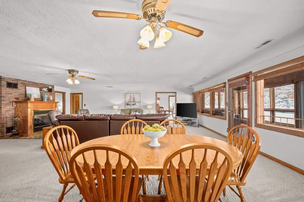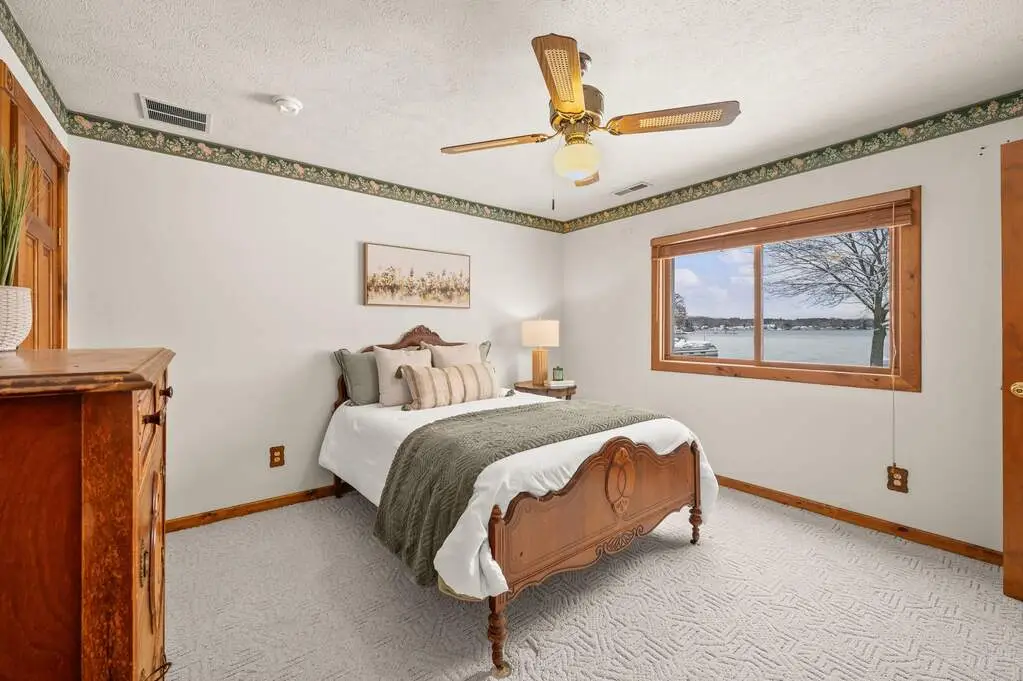 Welcome to Indian Lake in the Sister Lakes area of Southwest Michigan. This expansive property offers 140' of flat, sandy shoreline with peaceful sunrise views. The home lives like a ranch, with the primary bedroom suite located upstairs plus a second ensuite bedroom on the main level. Three additional main-level bedrooms and two more baths offer space for everyone. Enjoy a spacious game room with bar, three-season room, and hot-tub room. A connected 2BR/1.5BA apartment provides flexible space for guests, related living, or rental use. Outdoor living includes a large composite lakeside deck, permanent pier with lift, seawall, and sandy-bottom swimming. Storage is abundant with an attached 2-car garage, detached garage with workshop for boats, lake gear, and golf carts, plus an additional shed. Indian Lake is a 500-acre all-sport lake with a 27-hole golf course, clubhouse, and rare yacht club offering fuel service, social events, and a 4th of July boat parade. 2 hours from Chicago