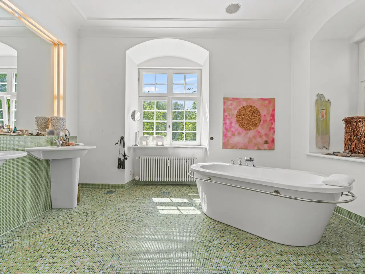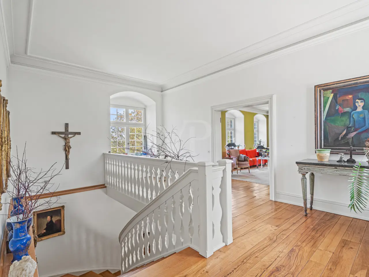 Welcome to an incomparable real estate offer that represents the pinnacle of luxury and exclusivity: a magnificent castle with an adjoining forester's house, surrounded by a variety of high-quality outbuildings and first-class equestrian facilities. The castle and forester's house At the heart of the property is the impressive castle from 1609, which is characterized by its majestic architecture and historical elegance. The main apartment extends over a generous approx. 850 square meters and offers the highest level of living comfort. A private wellness area with sauna, whirlpool and an outdoor pool (approx. 9.5 mx 4.5 m) invite you to relax. The connection to the underground car park, which offers space for 14 vehicles, ensures maximum convenience. In addition to the main apartment, there are two exquisite maisonette apartments in the castle, which offer ideal retreats with a living space of approx. 270 square meters and approx. 174 square meters. Manager's house The manager's house on the property combines functionality and living comfort. It includes an office, a workshop and a spacious apartment with around 140 square meters of living space, which provides stylish accommodation for the property manager. Semi-detached house for horse groomers A charming semi-detached house is available to accommodate the horse grooming staff. The two residential units offer enough space and comfort with around 123 square meters and around 75 square meters. Equestrian facilities A paradise for horse lovers: the extensive stables and paddocks, complemented by a riding hall in tournament dimensions, leave nothing to be desired. Here you can enjoy your passion for equestrian sports to the fullest. Other facilities The property also has various storage buildings and carports that offer additional functionality and storage space. A picturesque chapel from 1616 completes the picture of this unique property and offers a quiet place for reflection. Conclusion This extraordinary castle property offers a unique combination of luxurious living space, first-class equestrian facilities and extensive outbuildings. It is the perfect place for all those who are looking for something special and place the highest value on exclusivity and comfort. Be enchanted by the historic splendor and modern amenities of this property and discover your new home. Contact us today for more information and to arrange a viewing. Position The exclusive castle estate is located in one of the most sought-after regions in Germany, nestled between Stuttgart and Lake Constance. This picturesque area offers an ideal combination of natural idyll and excellent accessibility to urban centers. The region between Ulm and Ravensburg impresses with its scenic diversity and numerous leisure opportunities. Extensive forests, rolling hills and picturesque valleys stretch out here, inviting you to take long walks, hikes and bike tours. The nearby Lake Constance offers a wide range of water sports activities such as sailing, swimming and boat trips, while in winter the Swabian Alb and the Allgäu offer excellent conditions for winter sports enthusiasts. Golf lovers will get their money's worth in nearby Bad Waldsee. The renowned golf course offers challenging fairways and greens amidst a breathtaking natural backdrop. Here you can perfect your golf skills while enjoying the peace and beauty of the surroundings. Excellent transport links and helipad The property benefits from excellent transport links. The A7 and A8 motorways provide fast connections to Stuttgart, Ulm and towards Lake Constance. There is also a freely usable helipad right next to the property. This exclusive advantage ensures a quick and convenient arrival by helicopter, whether for private or business purposes. The region also has a lot to offer in terms of culture and cuisine: numerous historic towns such as Ulm and Ravensburg invite you to explore. Stroll through medieval alleys, visit museums and galleries or enjoy regional specialties in the numerous first-class restaurants and traditional inns. The location of this castle estate combines the best of nature, leisure and luxury. Whether you appreciate the tranquility of the rural surroundings, take advantage of the numerous leisure opportunities or make use of the excellent connections and the exclusive helipad - here you will find the perfect balance between relaxation and activity. Discover the diversity and quality of life of this unique region and make this exceptional property your new home. Furnishing Unique castle complex consisting of: 1) Main apartment in the castle - built around 1609; renovated in 1999 with representative living and dining rooms, seven bedrooms, three bathrooms (approx. 850 m²) Highlights: - Wellness area and outdoor pool approx. 9.5 mx 4.5 m - Passenger elevator - Dumbwaiter - Open-plan kitchen-living room - Three fireplaces - Direct access to the underground car park Forsthaus (side wing of the castle) 2) Maisonette apartment on the ground floor / ground floor - built around 1620; renovated in 1999 with representative living and dining rooms, three bedrooms, two bathrooms (approx. 270 m²) Highlights: - High-quality fitted kitchen - Additional kitchenette - Two fireplaces - Own vaulted cellar - Direct access to the underground car park 3) Maisonette apartment on the first and second top floor - built around 1620; Renovation in 1999 with representative living and dining rooms, two bedrooms, two bathrooms (approx. 174 m²) Highlights: - high-quality fitted kitchen - open gallery in the second attic floor - fireplace Manager's house office, workshop, garages, social rooms (approx. 137 m²) 4) Manager's maisonette on the first floor / top floor - built approx. 1960; Renovation in 1999 with high-quality and bright living and dining rooms, 2 bedrooms, 2 bathrooms (approx. 140 m²) - fireplace - fitted kitchen Horse groomer's semi-detached house 5) Semi-detached house (WE 1) - built around 1999 with high-quality