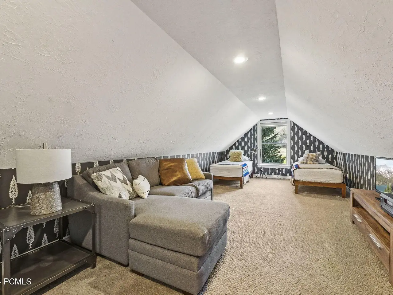 Expansive windows Bonus bunk room with twin beds