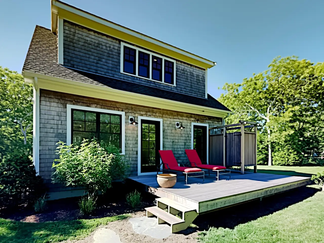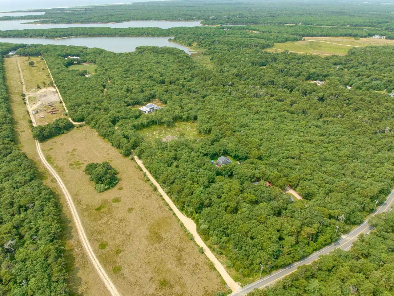 Discover this private Katama retreat, perfectly situated on over 3 acres of forested and landscaped grounds. Located just a mile from Edgartown Great Pond and a little over 2 miles from both South Beach and Edgartown Village, this contemporary guesthouse offers the ultimate island escape. Built in 2018, it boasts a proven rental history and is outfitted with every modern amenity. With a 6-bedroom septic system already in place, there's ample opportunity to expand by adding a main house or additional structures, pending necessary town approvals. Enjoy now while envisioning its full potential!