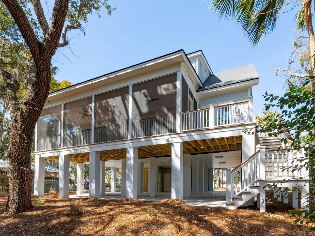 Take the plunge! SELLER IS OFFERING TO INSTALL IN GROUND POOL AT NO COST WITH APPROPRIATE OFFER until end of September. Experience the pinnacle of coastal luxury in this brand-new, elevated contemporary home, perfectly situated just a 2-minute stroll from the sandy shores of Edisto Beach. Nestled on nearly half an acre, this 2,600-square-foot masterpiece offers an exceptional blend of privacy, modern design, and timeless Lowcountry charm. Thoughtfully crafted for both comfort and style, the home features 4 generously sized bedrooms and 3.5 designer bathrooms, comfortably accommodating up to 10 guests. Soaring 10-foot ceilings on the main level and 9-foot ceilings upstairs create an open, breezy ambiance, complemented by stunning white oak flooring throughout. The chef-inspired kitchen is a true showpiece, boasting sleek quartz countertops, top-of-the-line stainless steel appliances, and custom cabinetry perfect for entertaining or quiet evenings at home. The expansive screened in porch off the main level features double sliding doors and has serene lagoon views. Each bathroom is beautifully appointed with luxurious designer tile and quartz finishes, creating a spa-like experience in every space. Enjoy effortless living with an in-home elevator, elevated construction for peace of mind and scenic views, and ample outdoor space for relaxing or entertaining in the salty sea air. Don't miss this rare opportunity to own a refined coastal retreatwhere luxury meets lifestyle on beautiful Edisto Beach.