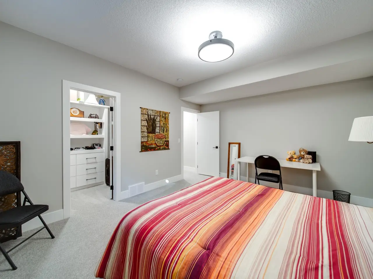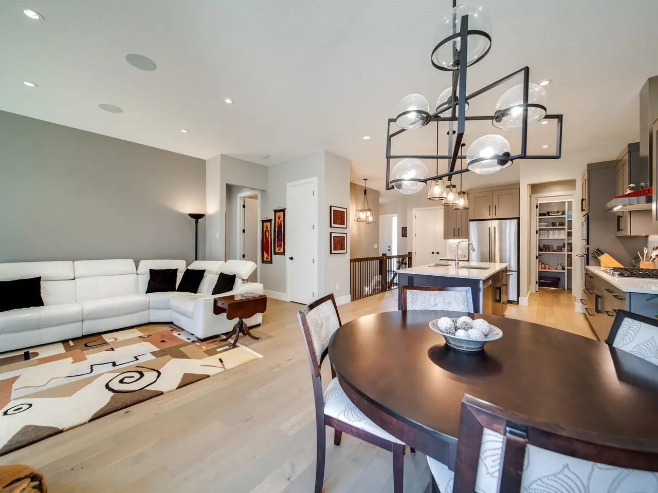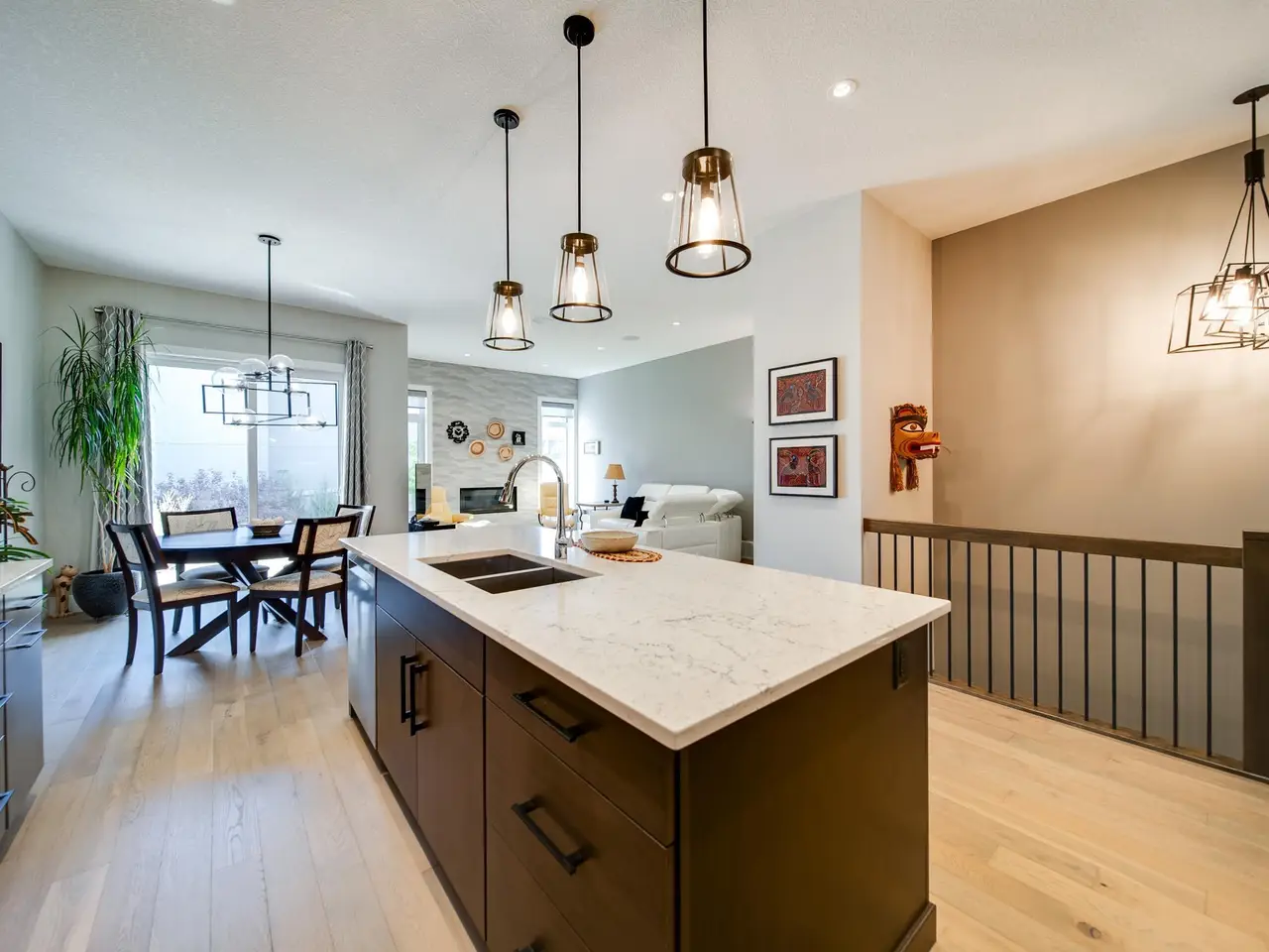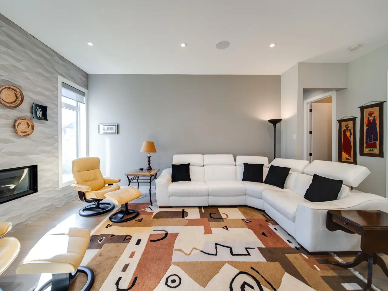 This former SHOW HOME blends high-end design with effortless living in the heart of Keswick. Tucked into a quiet cul-de-sac, this executive half-duplex bungalow offers 2900 sq ft of impeccably finished living space, fully air-conditioned and move-in ready. Soaring 10’ ceilings lead to a dream kitchen with quartz counters, built-in appliances, a prep sink and a butler’s pantry made for entertainers. The open living and dining area is warm and inviting, anchored by a sleek linear fireplace and a private study. The primary suite is a retreat — spa-style ensuite, walk-through closet and direct access to laundry. Downstairs, 9’ ceilings frame a bright rec room with wet bar, 2 bedrooms and a 4 pc bath. Details that matter: maple railing with iron spindles, black exterior windows, custom mudroom built-ins, concrete party wall with Roxul insulation, and a heated dbl garage with floor drain, H/C water, epoxy and lift-ready height. No condo fees, well below new build cost, and barely lived in — pride of ownership!