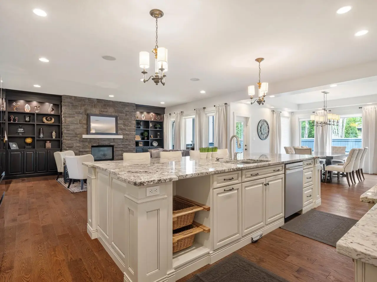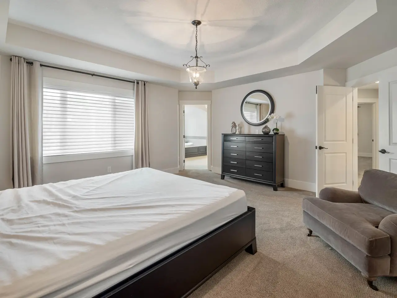 Steps from the serene MacTaggart Ravine, this elegant SW Edmonton home offers nearly 5000 sqft of beautifully designed living space. With 6 spacious bedrooms and 4 full baths, it’s ideal for multi-generational living. A main floor bedroom with adjacent full bath provides flexibility, while a private basement entrance from the garage suits extended family. The fully finished basement features a wet bar and a large rec room—perfect for entertaining. Enjoy the expansive dining area with views of the backyard and covered deck. The bright, open layout has a main floor with chefs kitchen, loads of cabinet space, large pantry and a mud room with built in mill work. Upstairs includes a luxurious primary suite with a massive custom walk-in closet and spa-like 5-piece ensuite. 2 furnaces/AC and infloor heat. Second-floor laundry adds everyday ease. Located in a prestigious, family-friendly community near top-rated schools, shops, and restaurants—this is refined living at its finest.