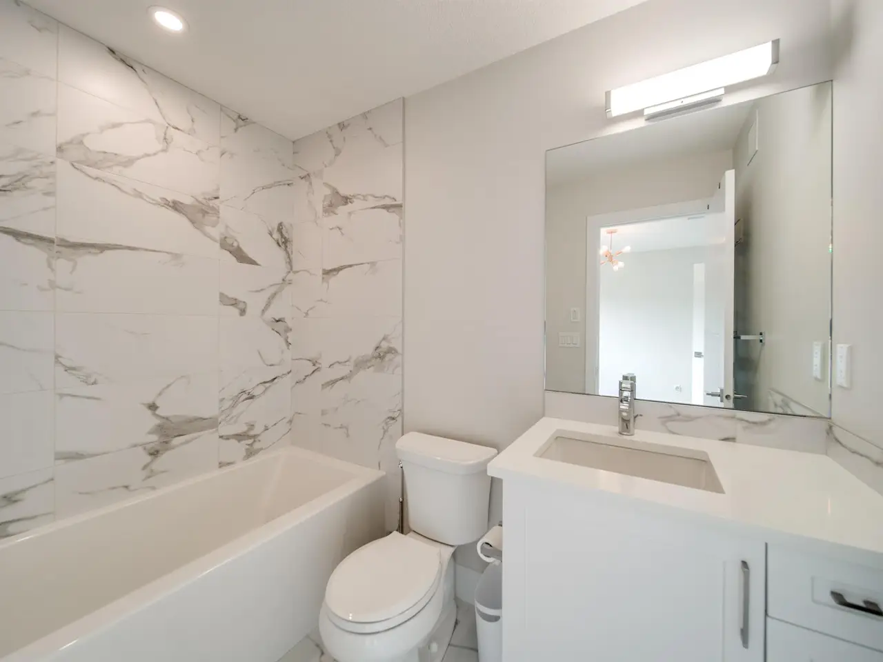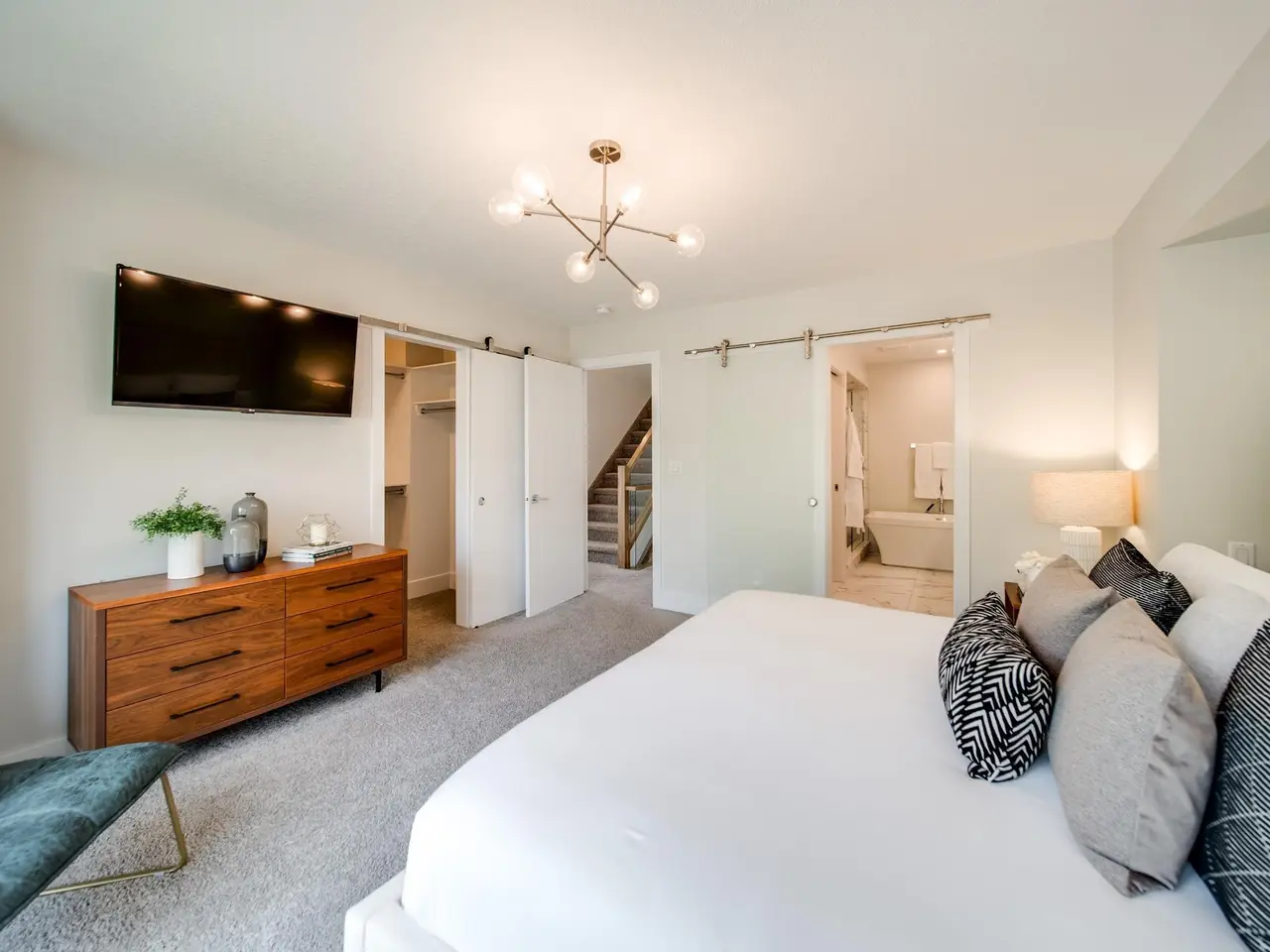This 2,305 sq. ft. 2.5-storey stunner sits in Edmonton’s most coveted neighbourhood—GLENORA & features a total of 4 beds, 4 full baths & 2 half baths. Designed for modern living, it blends minimalism, comfort, & elegance with striking glass details throughout. The main floor showcases an open layout anchored by a 13-ft quartz island, complemented by a premium stainless steel appliance package. A floor-to-ceiling glass wine wall highlights the dining area, while an open-riser staircase encased in glass adds architectural flair. Upstairs, the primary retreat impresses with sliding glass barn doors leading to a spa-inspired ensuite with freestanding tub & custom shower. Two additional bedrooms, each with ensuites, plus handy same-level laundry complete this floor. The third level offers an urban lounge with seamless access to an indoor/outdoor rooftop patio boasting skyline views. Fully finished basement has rec area & 4th bed/bath. Built in sound + minutes from the River Valley, Ice District, and downtown.