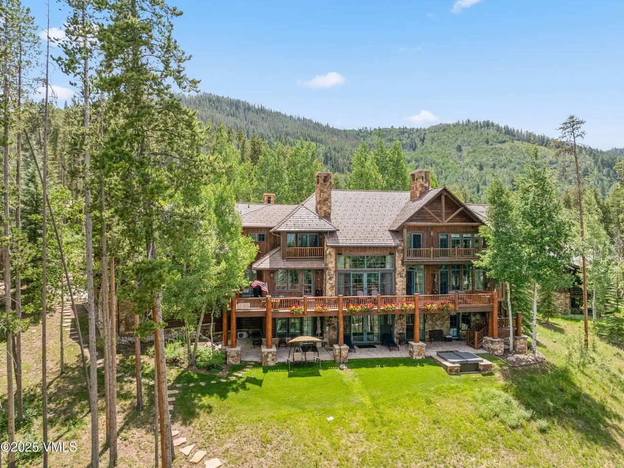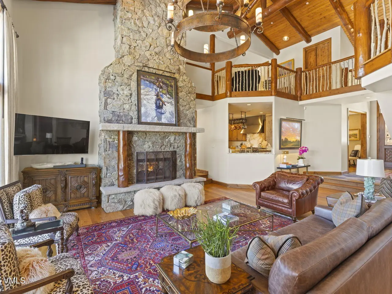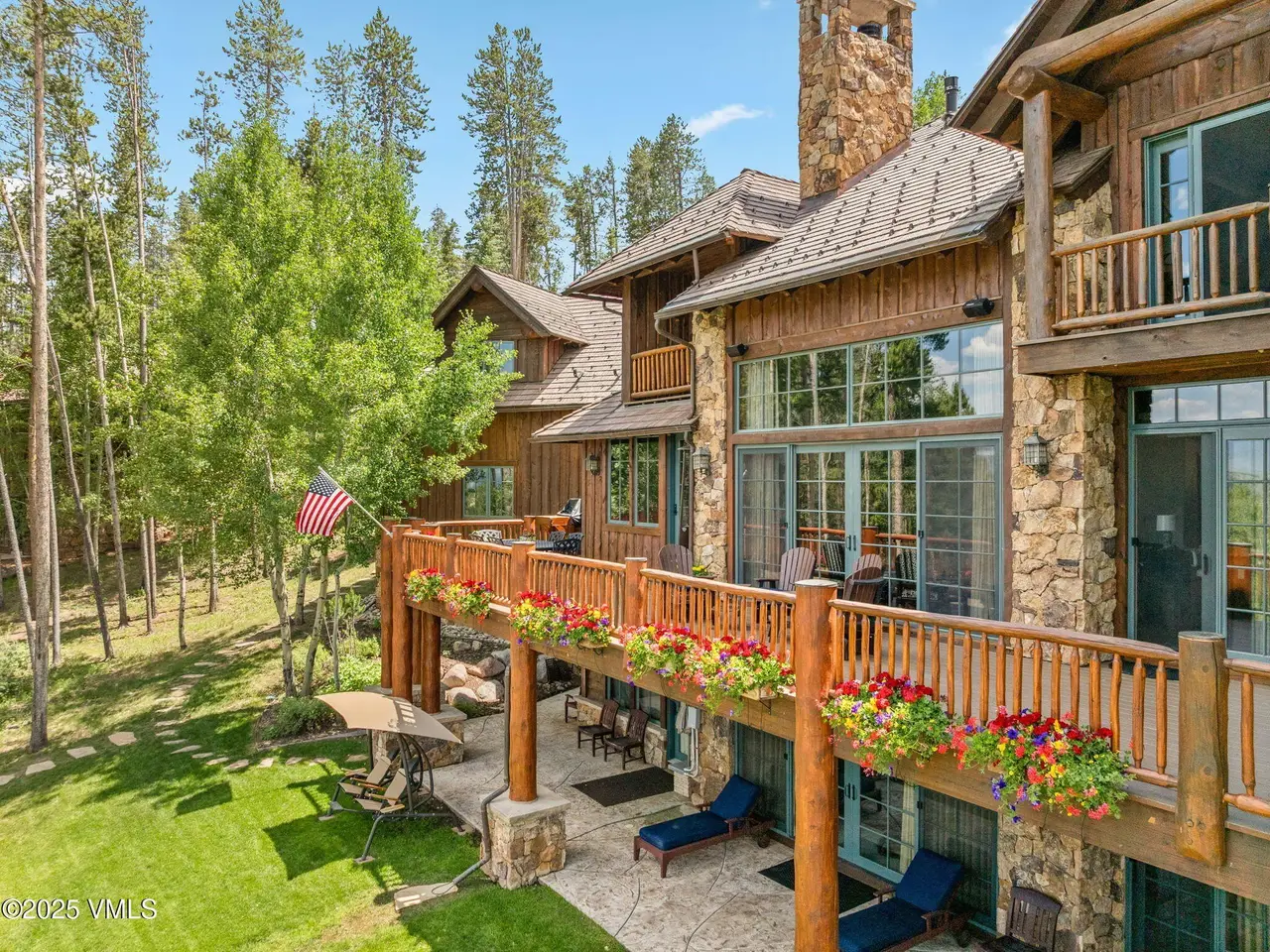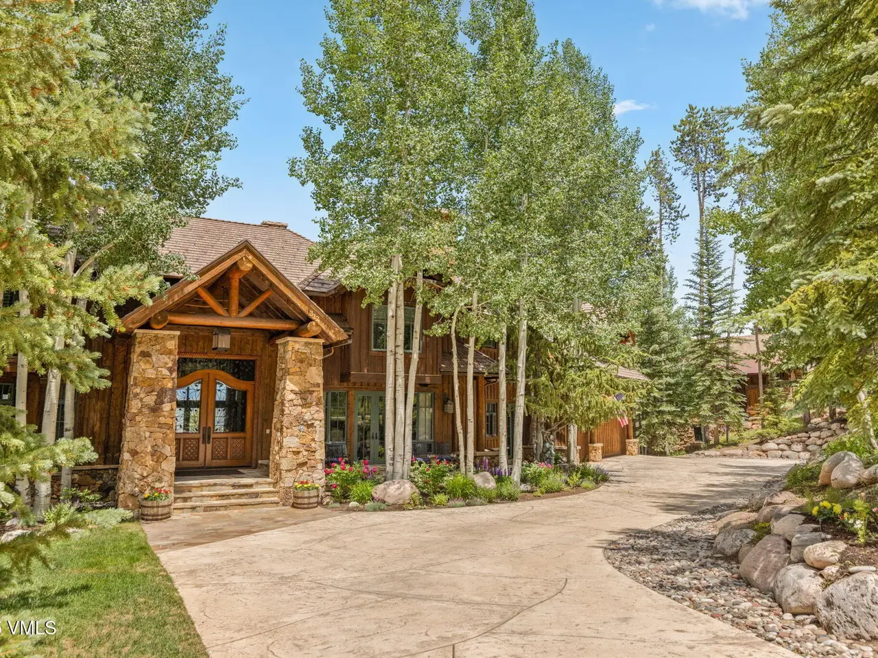 Perched on a premier, elevated site just beyond the gates of The Ranch, this remarkable mountain estate embodies the spirit of Colorado living. Crafted with massive hand-peeled log accents and warm, natural materials throughout, the home blends rustic elegance with thoughtful, sophisticated design. Inside, expansive living spaces are tailored for both grand entertaining and quiet retreat, featuring dedicated areas for movie nights, fitness, soaking under the stars in the outdoor hot tub, game days, billiards and a well appointed wine tasting enclave. The heart of the home is a beautiful chef's kitchen, complete with high-end appliances and an adjacent morning room filled with natural light-the perfect place to start your day. For those who work remotely or need a quiet place to create, there are two private offices. The layout includes two luxurious primary suites, four additional guest suites, and a custom-built bunk room that can comfortably sleep a crowd. Panoramic views stretch out to the Gore Range, completing this one-of-a-kind alpine retreat.