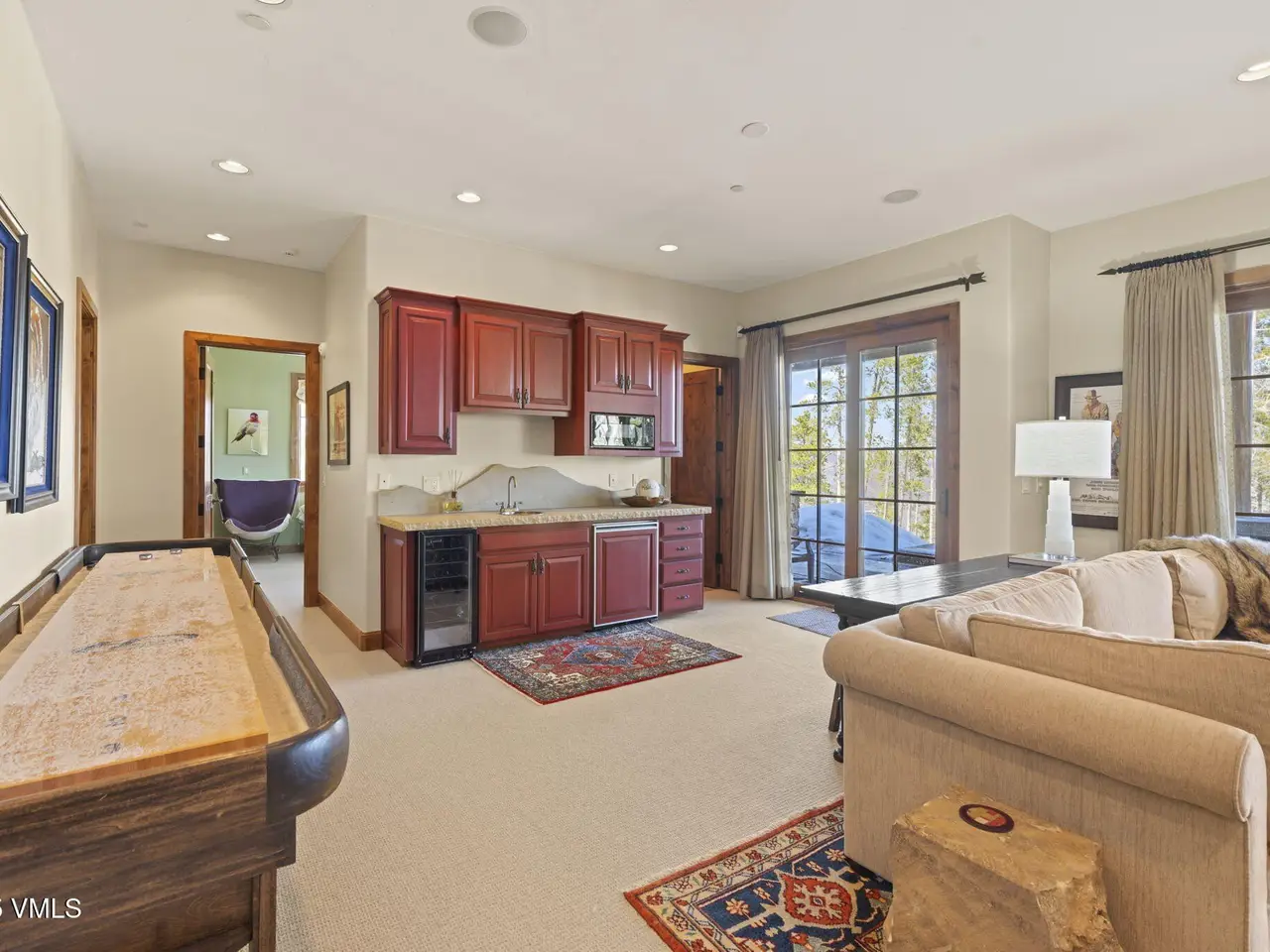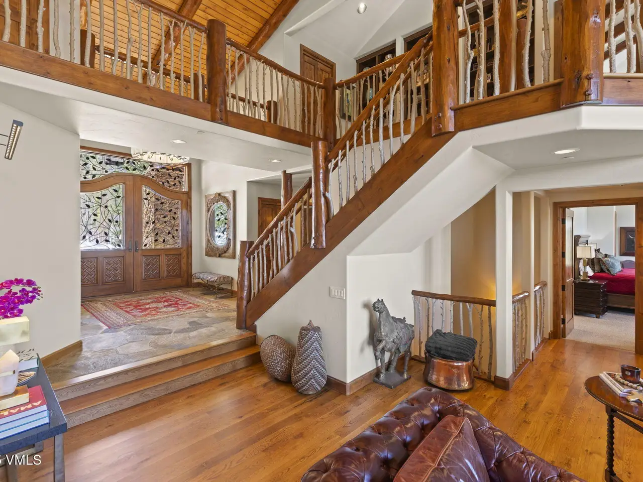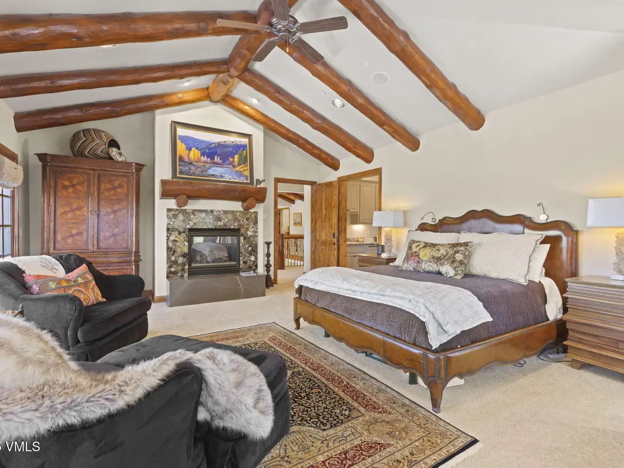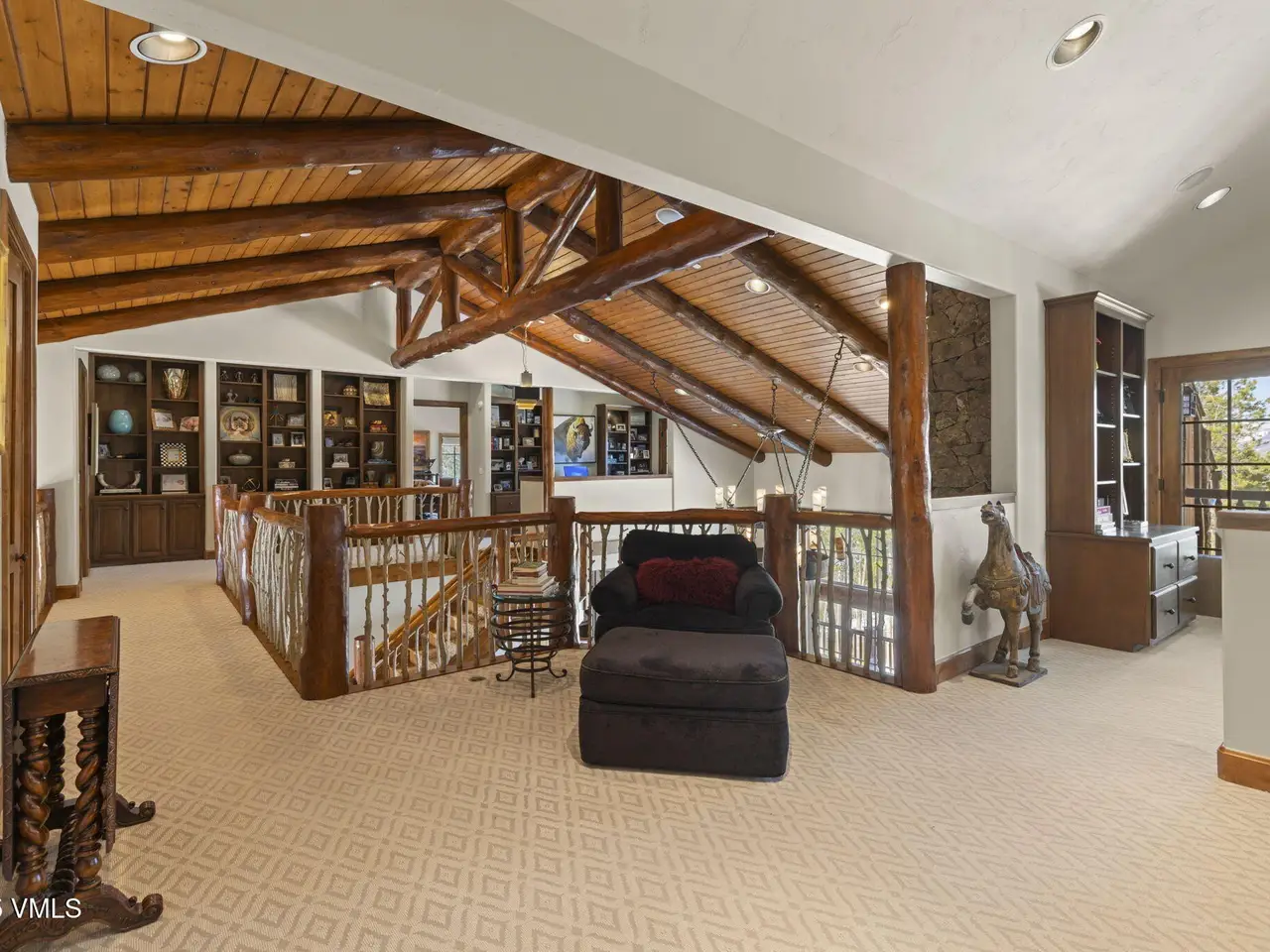 Perched on a premier, elevated site just beyond the gates of The Ranch, this remarkable mountain estate embodies the spirit of Colorado living. Crafted with massive hand-peeled log accents and warm, natural materials throughout, the home blends rustic elegance with thoughtful, sophisticated design. Inside, expansive living spaces are tailored for both grand entertaining and quiet retreat, featuring dedicated areas for movie nights, fitness, soaking under the stars in the outdoor hot tub, game days, billiards and a well appointed wine tasting enclave. The heart of the home is a beautiful chef's kitchen, complete with high-end appliances and an adjacent morning room filled with natural light-the perfect place to start your day. For those who work remotely or need a quiet place to create, there are two private offices. The layout includes two luxurious primary suites, four additional guest suites, and a custom-built bunk room that can comfortably sleep a crowd. Panoramic views stretch out to the Gore Range, completing this one-of-a-kind alpine retreat.