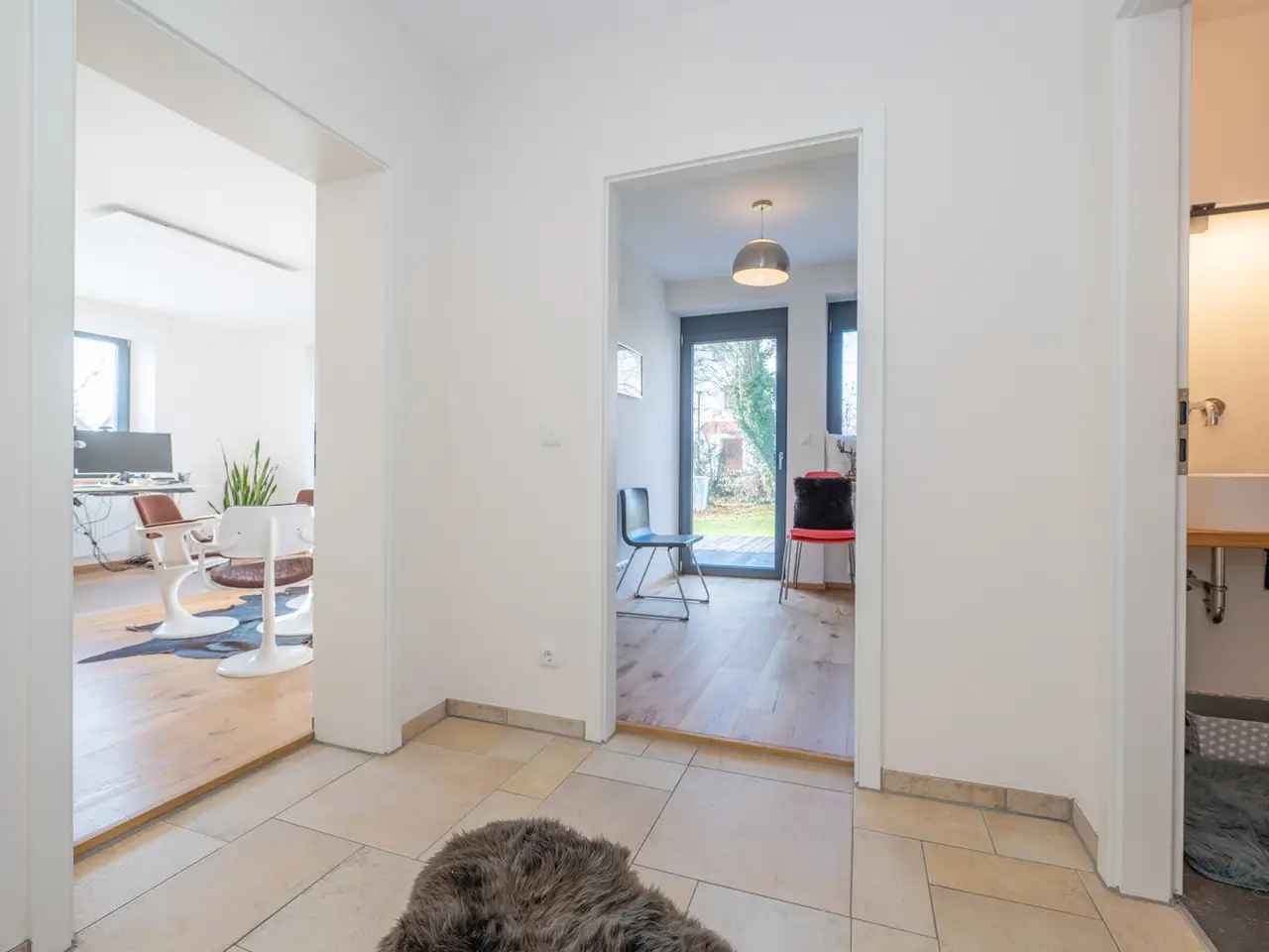 For sale is a high-quality renovated detached house with a spacious granny apartment that combines modern living with timeless elegance. The property, built in 1961, was extensively renovated in 2022 and is situated on a spacious plot of approx. 1209 m² in a sought-after and central location in Eggenfelden. With a living space of approx. 250 m², spread over a total of 9 rooms, the house offers plenty of space for a variety of uses. The first floor welcomes you with an inviting and representative foyer, which impresses with an open staircase in solid oak. The open-plan living and dining area of approx. 45 m² impresses with real oak parquet flooring and large window fronts that offer a generous view of the mature garden. From here, you can access the spacious terrace of around 100 m² with an outdoor fireplace. The terrace is planked with extra-thick larch wood and extends over the entire south and west side of the house. The modern fitted kitchen meets all requirements and is equipped with an induction stove, a Bora extractor fan, a dishwasher and a solid oak worktop. A guest WC completes the space available in the main living area on this level. On the upper floor, a gallery leads to the bedrooms. The master bedroom not only offers plenty of space on approx. 35 m², but also its own en-suite master bathroom with natural light, free-standing bathtub, separate floor-level shower area, double washbasin, WC and electric underfloor heating. Two further rooms, which are ideal as guest or children's rooms, as well as a separate dressing room and an additional shower room complete the upper floor. High-quality details such as refurbished solid oak parquet flooring and electrically operated skylights underline the high standard. The granny apartment on the first floor with separate entrance extends over approx. 70 m² and offers two rooms, a fitted kitchen and a bathroom with shower and electric underfloor heating. This unit is ideal as a practice, office or guest apartment. From here you also have access to the spacious garden, which offers numerous design options. The basement of the house, which has separate access, houses a wine cellar as well as several storage rooms. A carport with space for two cars and additional parking spaces in the driveway are available for vehicles. A modern balcony power plant on the carport supports the energy efficiency of the property, which is rounded off by a new pellet heating system and a decalcification system. This property combines modern living comfort with a well-thought-out room layout and high-quality fixtures and fittings. The central yet quiet location in Eggenfelden, just a 5-minute walk from the town square, offers an ideal combination of urban infrastructure and living close to nature. A viewing is essential to discover the full potential of this special home. Make an appointment today to see this unique offer for yourself.