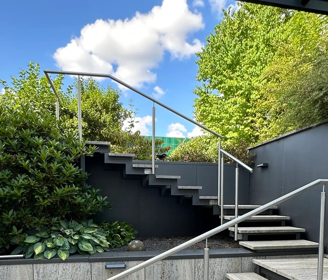 This dreamlike and spacious detached house was furnished by the owners with the best materials in 2019. The floor plan is airy. From the very first glance in the entrance area, you can feel the coziness paired with modern living. The light-flooded living and dining area is the heart of the first floor and impresses with floor-to-ceiling windows overlooking the beautiful garden. The high-quality fitted kitchen has a separate and practical storage room, as well as direct access to the covered terrace and the garden. A study, a modern guest WC and a checkroom complete this level. The staircase is also an absolute highlight, with the open gallery giving it a very special charm. The bedrooms and two bathrooms are located on the upper floor. The master bedroom with dressing room and en-suite bathroom offers a super nice oasis of well-being with approx. 45 m². A children's room with access to its own balcony, a guest room with a high-quality built-in wardrobe and a timeless shower room complete the top floor. A wellness area with a claw-foot sauna has been integrated into the basement. Direct access to the covered terrace invites you to enjoy relaxing wellness days. Two further rooms have been added to the basement, which are ideal for use as a study or guest room. The garage with a full basement adds two additional storage rooms. From the modern, deep courtyard, you can access the first floor level and the garden via the external stairs. The entire property has been equipped with a ventilation system with heat recovery and a photovoltaic system, resulting in a perfect final energy requirement of currently 11.1 kWh (A+). A double garage with wallbox and an outdoor parking space in front of it have of course been included.
