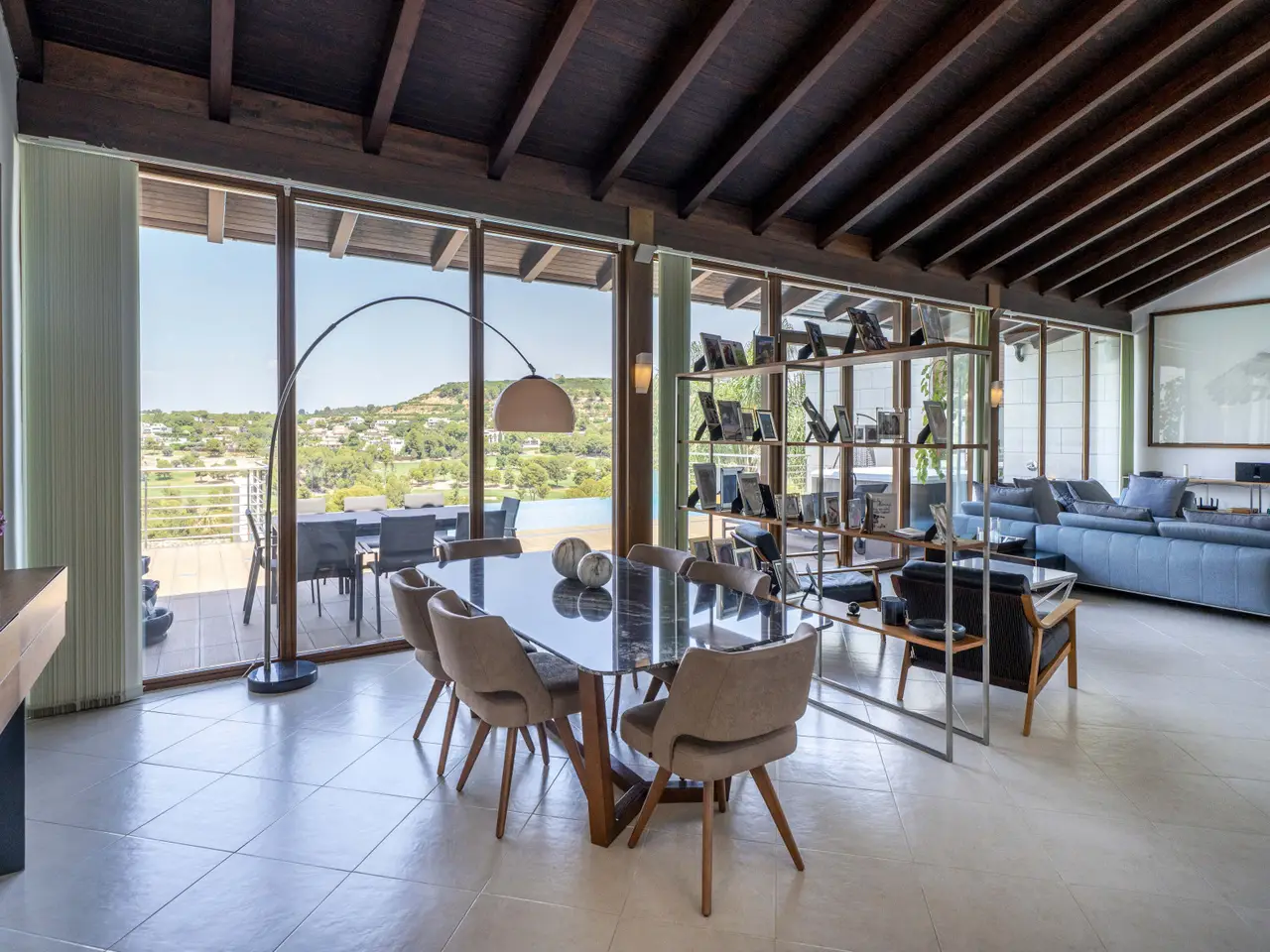 Located in the private urbanization El Bosque Golf, less than 25 kilometers from the city of Valencia, this modern villa offers a spacious and functional housing, within a natural environment with controlled access, 24-hour surveillance, golf course, social club and several catering services. The property is located on a plot of more than 1,300 m2 and has more than 550 m2 built. Distributed on two floors, it presents an efficient organization of spaces that facilitates a comfortable daily life. The main floor includes living room, dining room, kitchen, master bedroom and two other bedrooms. On the lower floor there are two additional bedrooms, a multipurpose room (cinema or games), service area, laundry room, machine room and storage spaces. The outdoor area, connected with the living room and the master bedroom, has a swimming pool with infinite edge, outdoor dining area and jacuzzi. From this area you can enjoy direct views of the golf course and the vegetation surrounding the house. The architectural design prioritizes natural light, cross ventilation and privacy. The property is located near an international school, supermarket, public transport and less than 15 kilometers from the airport. A luxury property for those looking for tranquility, proximity to Valencia and living next to a golf course.