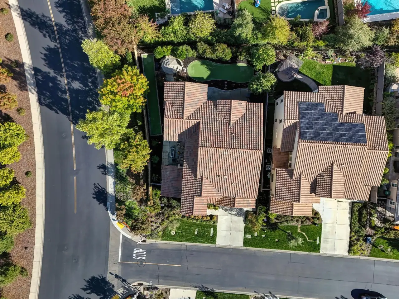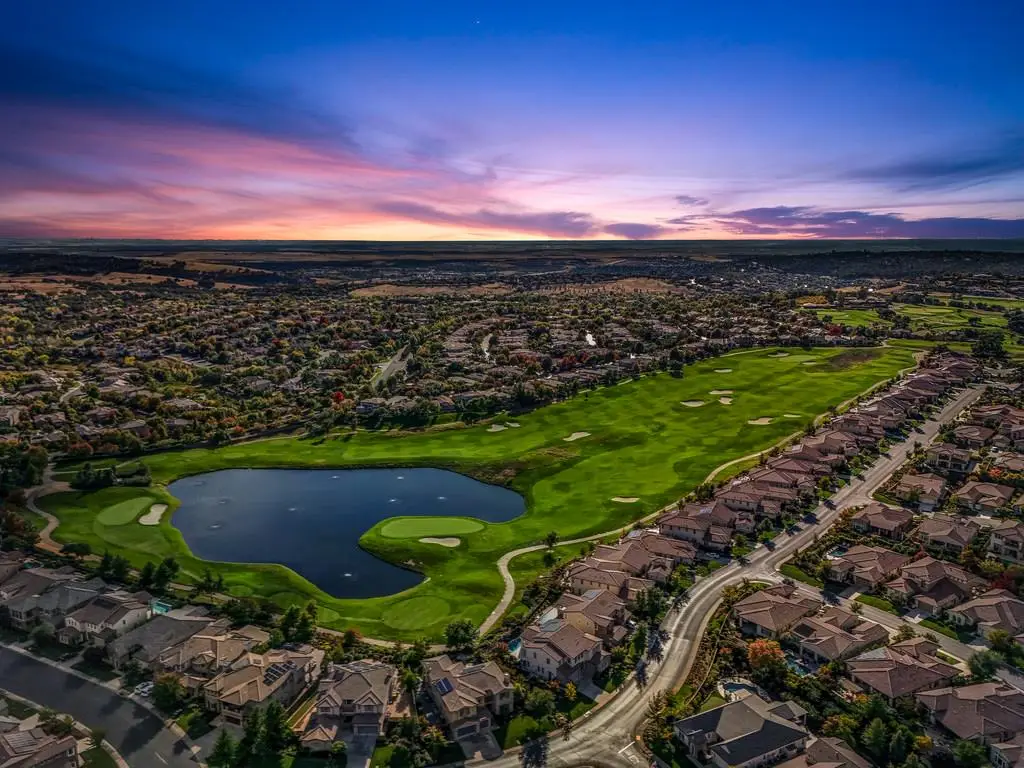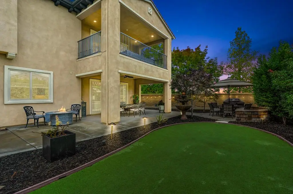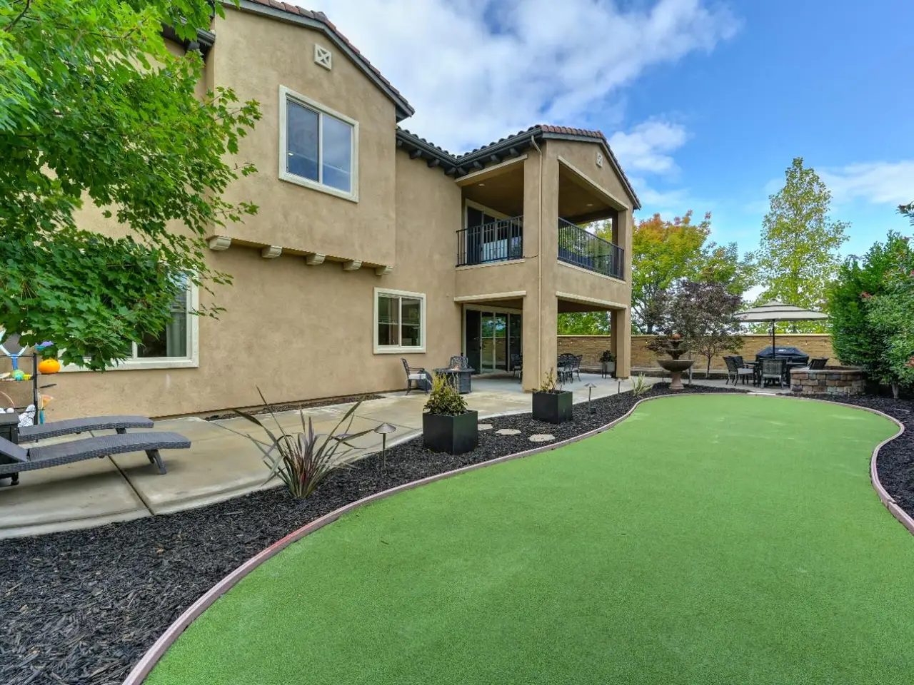 Your dream home in the prestigious 24-hour guard-gated community of Serrano Golf & Country Club awaits. This elegant residence features an open floor plan with hardwood floors, designer accents, and expansive living spaces. The main level offers a private office with French doors, guest suite with full bath, 1/2 bath, living room, pantry, formal dining room with custom lighting and a chef's kitchen which includes high-end appliances, and an oversized island perfect for cooking and entertaining. Upstairs you'll find a loft with balcony and panoramic views, two en-suite bedrooms with walk-in closets, and a luxurious primary suite with private balcony, spa-like bath, and dual walk-in closets. Enjoy indoor-outdoor living with large sliders opening to a Bocce court, private putting green, and outdoor dining areas. Additional features include a mudroom, 3-car tandem garage with epoxy flooring, and house is pre-plumbed for solar. Close proximity to parks, trails, Folsom Lake, and top-rated schools. Serrano Country Club offers world-class amenities: an 18-hole championship golf course, multiple dining venues, fitness center, junior Olympic pool, wading pool, four lighted tennis courts, and a spa.