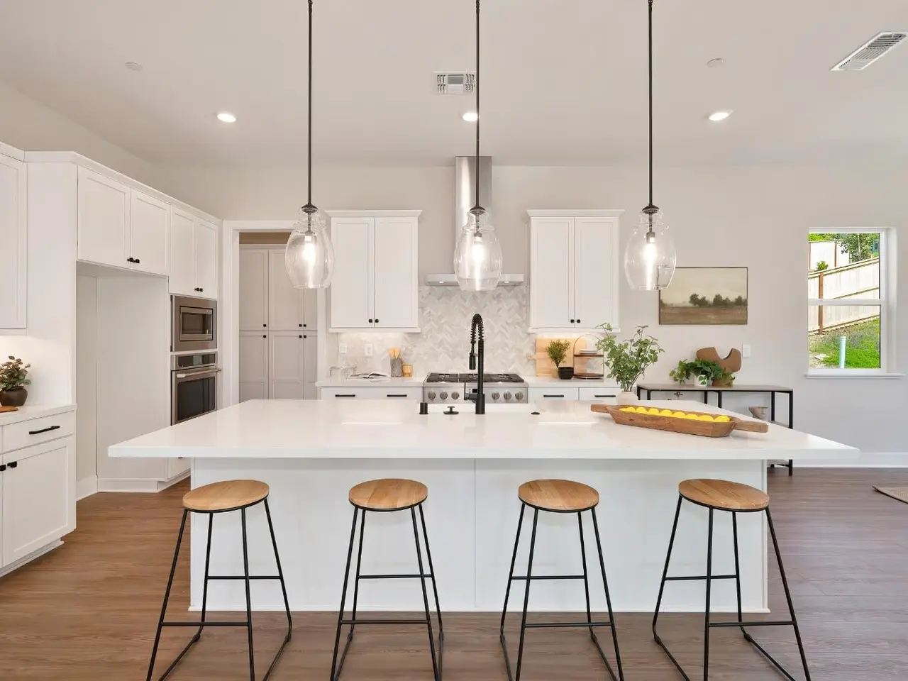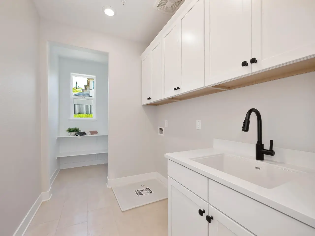 • Custom white cabinetry