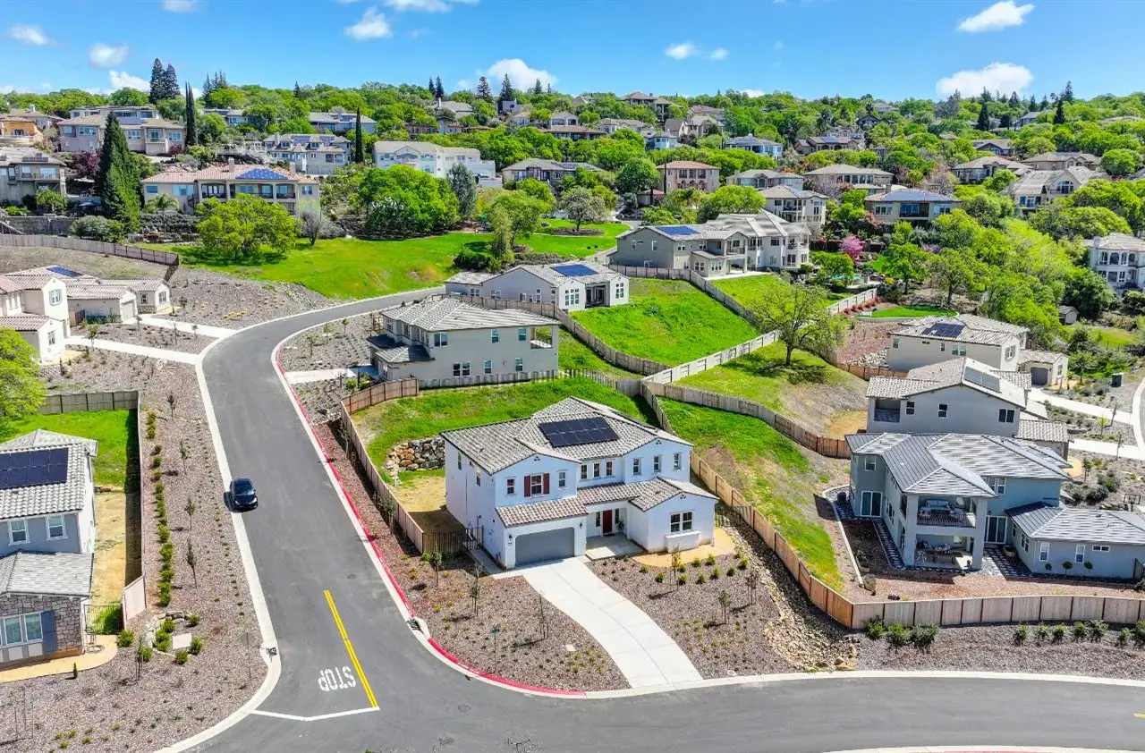 Nestled in the highly sought-after Ridgeview Village of El Dorado Hills, this brand-new, meticulously crafted home offers 3,984 square feet of elegant living space. Featuring 4 spacious bedrooms and 4.5 beautifully appointed bathrooms, this residence effortlessly blends comfort with modern sophistication. The upstairs Great Room provides an ideal secondary space for entertaining, with panoramic views that create the perfect backdrop for family gatherings and special events. The gourmet kitchen is a chef's dream, showcasing a large center island, custom white cabinetry, a fully equipped rear prep kitchen, and premium stainless steel Caf appliances. Step outside to the expansive California Room, a peaceful oasis perfect for alfresco dining or simply relaxing in style while enjoying the tranquil views. The private downstairs guest suite offers a quiet, secluded retreat for family or visitors, ensuring comfort and privacy. With abundant natural light flowing throughout, this home strikes a flawless balance of style and functionality. It stands as a true gem in the Ridgeview community, offering an unparalleled lifestyle in a serene setting.