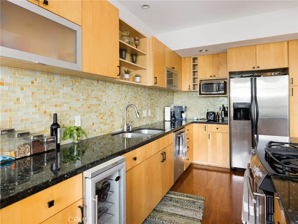 This beautifully updated 2 bedroom, 2.5 bathroom home offers just under 1800 sq ft of thoughtfully designed living space. The main level features new vinyl plank flooring, a private bedroom with an en-suite bathroom as well as two additional flexible spaces that can be used as a family room, office space, and/or a garage. The second floor showcases hardwood floors and an open-concept layout between the spacious kitchen and living room, complete with an electric fireplace. The kitchen itself has a large island, wine fridge, dishwasher, and plenty of storage.The spacious primary suite features a walk-in closet, a dual vanity bathroom, a large shower with seating, and a private balcony. A convenient half bath and stacked laundry are also located upstairs. The updated stairwell off the living room leads to a brand-new private deck with gas and water lines and electrical outlets—ideal for entertaining. Additional highlights include a new A/C unit, new Milgard windows, plenty of parking in the garage and/or carport, and ample storage under the stairs.