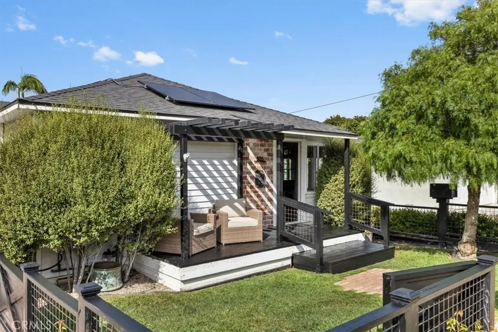 Discover a property that beautifully blends classic charm with modern design, offering 2,708 sq. ft. of versatile living space across a 3 bedroom, 2 bath main residence, a newly built (2024) ADU, a finished recreation room with loft, and an upgraded two-car garage with studio. The main home exudes farmhouse warmth with original hardwood floors, remodeled bathrooms (2020 & 2025), a spacious kitchen with farmhouse sink, subway tile, and granite countertops, plus cozy touches like an electric fireplace. Thoughtful upgrades include central heat and A/C, tankless water heater, copper/PEX plumbing, new roof, solar, and a 200-amp panel (2023). Outdoor living is highlighted by a gated front yard, mature landscaping, automated sprinklers, a new 200 sq. ft. deck, and backyard plumbing for a future fire feature. The newly built (2024) two-story ADU offers a sleek modern contrast, with 2 bedrooms, 2 bathrooms, polished concrete floors, 10’ ceilings, a custom kitchen with new appliances, gas fireplace, upstairs bedrooms with ceiling fans, luxury laminate flooring, and independent solar and utilities. A finished rec room with half bath, kitchenette, and vaulted loft provides additional living or creative space. The polished concrete garage impresses with a full glass high-lift door, beverage refrigerator, custom storage, and a finished studio with wired speakers and A/C. Perfect for multi-generational living, private retreat, or rental income, this unique property blends rustic comfort with modern convenience, all within walking distance to Main Street dining, shops, and the beach, with easy freeway access.