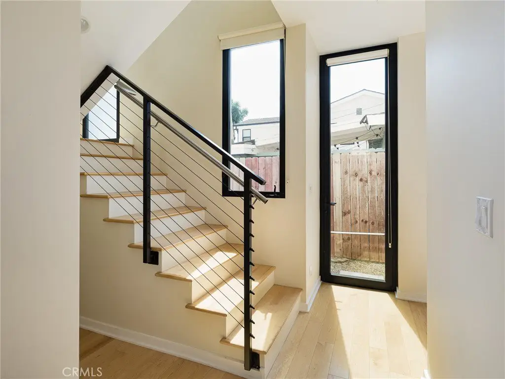 Welcome to 512 Sierra Place, a striking modern home designed by the award-winning firm MINARC, nestled on a unique triangle lot in the heart of El Segundo, situated across the street from Rec Park. From the moment you step into the sleek foyer—complete with a convenient half bath and access to the attached garage—you’ll notice the thoughtful design and clean, contemporary finishes throughout. Move into the spacious open-concept living area and you’re greeted by expansive full-size glass doors that open to a serene backyard oasis, a cozy fireplace in the living room, and a state-of-the-art elevator that connects both levels. The adjoining kitchen is a true showpiece, featuring modern cabinetry, bar seating, and high-end finishes perfect for entertaining or everyday living. Upstairs, natural light floods the stairwell through a wall of windows, with extra storage tucked underneath. A versatile hangout room with its own balcony creates the perfect casual retreat, and leads to a private bedroom with a full ensuite bathroom. Another generously sized bedroom with its own ensuite sits on the opposite wing, offering privacy and comfort. The primary suite is a modern sanctuary, boasting dual sinks, ample closet space, and a large private balcony, as well as access to the elevator for ultimate convenience. This home is truly a showcase of modern luxury and intelligent design.