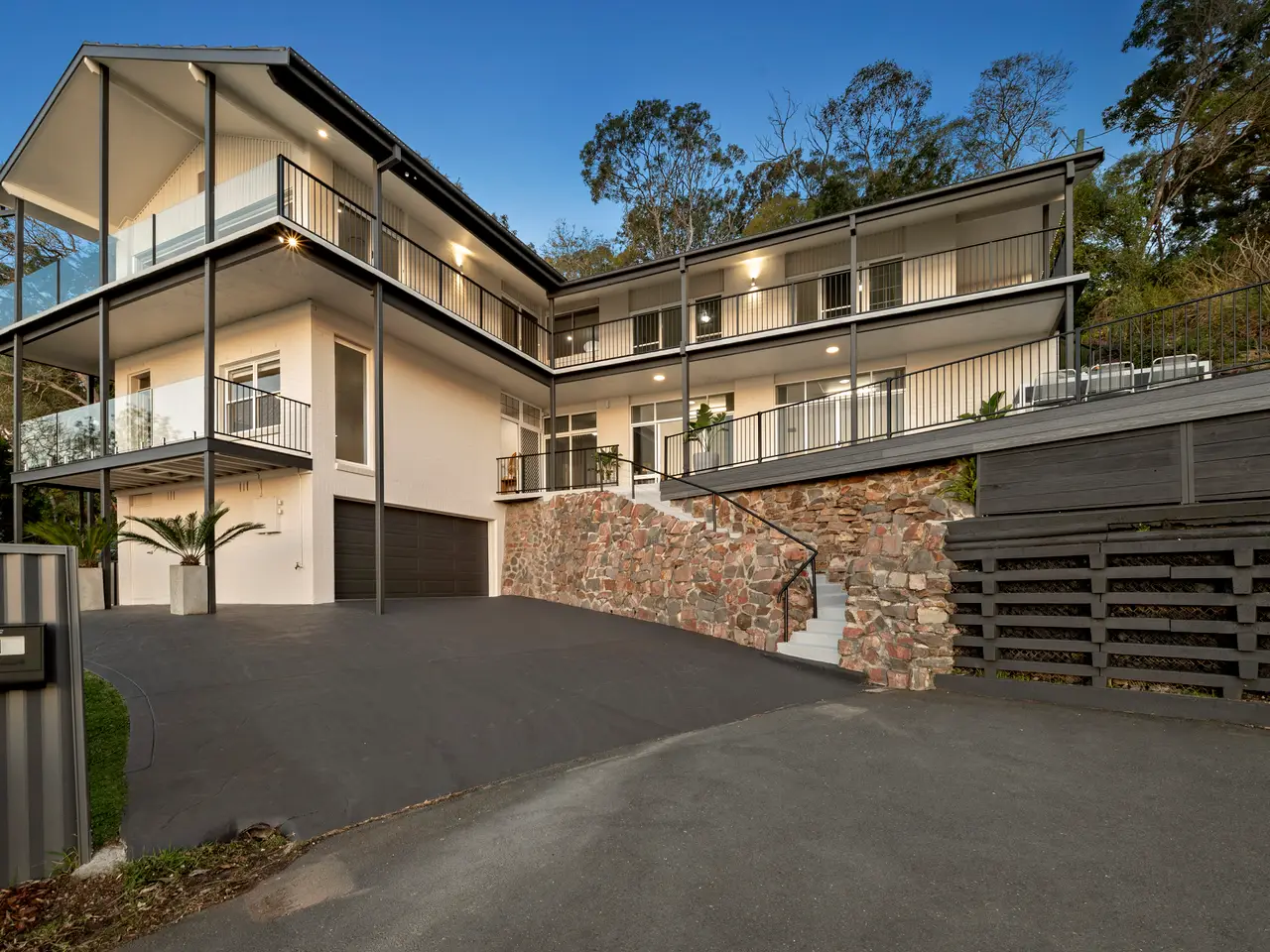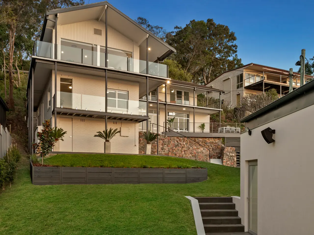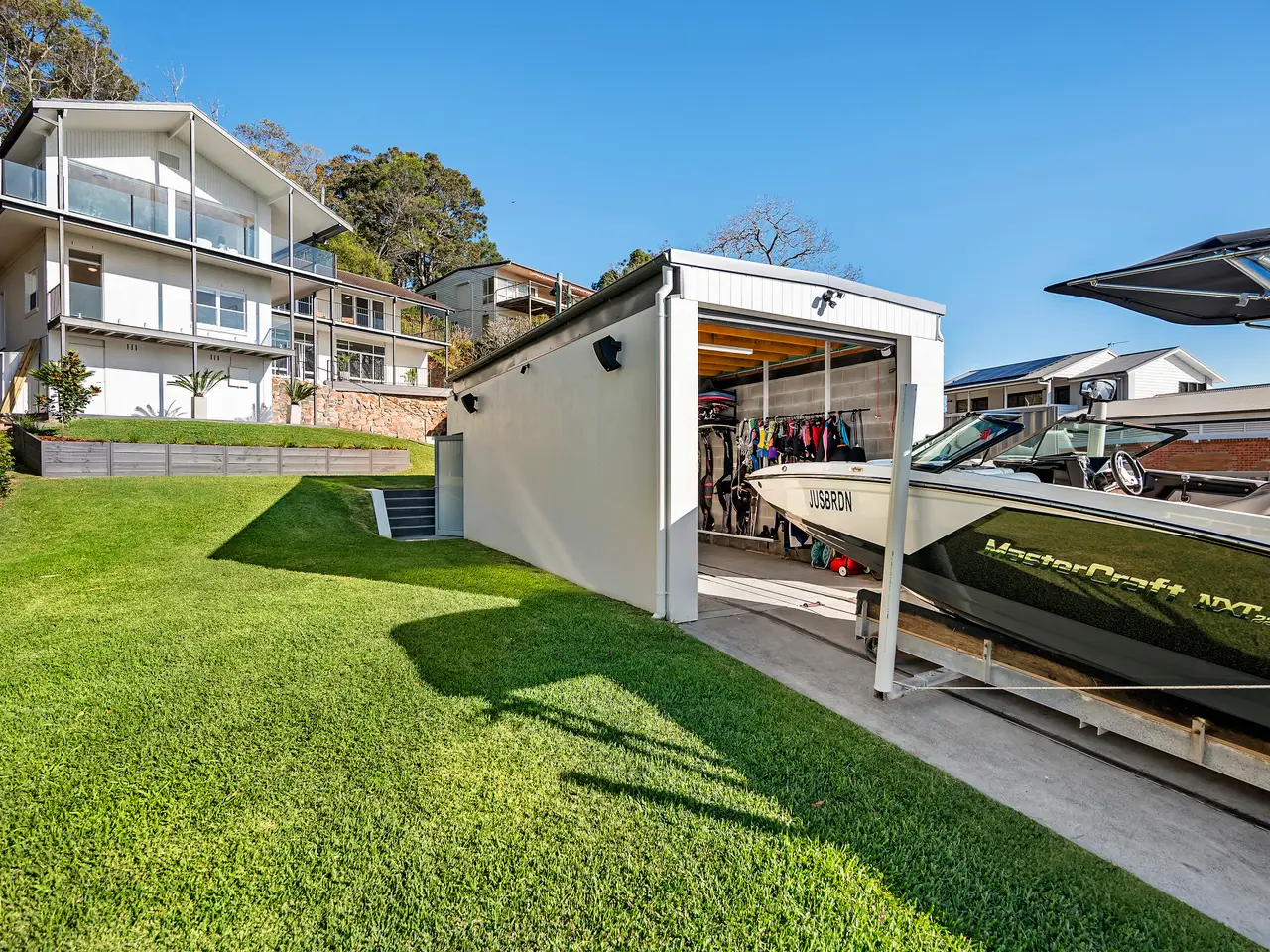 Capturing breathtaking lake views on absolute waterfront, this spectacular residence offers elegant lakeside living in one of Lake Macquarie's most sought-after addresses. Immaculate throughout, the property has been extensively renovated to create a light-filled sanctuary that impresses with its refined sense of style, luxury finishes and expansive layout. Perfectly suited to families seeking space, the home expands over two enchanting levels, where inviting everyday living is accentuated by sensational water views and an effortless indoor-outdoor flow from both living and sleep spaces. Brimming with beautiful alfresco areas you will long to linger in, it is a delight to come home to and a joy to entertain in. Alongside a stunning kitchen and two airy living spaces, there is superb versatility to be found in the studio with kitchenette, sizeable office and fifth bedroom, all positioned on ground level. With Lake Macquarie's sparkling shores lapping at the edges of the backyard, it is the complete package for anyone who loves getting out on the water, whether fishing, boating, kayaking or paddleboarding. In addition to the boathouse, the property boasts a private deep-water jetty, offering one of the select few moorings protected from the southerly wind on the eastern side of the lake. - Next-door property 45 Bareki Road, Eleebana also for sale, offering potential to purchase both residences and maximise lakefront presence - Impeccably renovated split-level home on an absoulte waterfront block set back from street at end of quiet cul-de-sac - Effortless coastal chic elevated by high ceilings, refined neutrals, pale timber floors and plush carpet - Expansive windows and glorious alfresco spaces provide sweeping, unobstructed views over the water - Bright and airy living through reconfigured open-plan on upper level, spilling out onto alfresco space enjoying lake breezes - Fabulous new kitchen flaunts huge walk-in pantry, sleek stone counters, premium Smeg appliances, inc. new dishwasher, and a breakfast bar bench with waterfall ends - Wraparound balcony connects open-plan and three large bedrooms, including master with new ensuite - New main bathroom features luxe bathtub, walk-in shower, dual vanity and separate WC - Lower level made up of family room, office, fifth bedroom with ensuite, and studio with kitchenette - Lower level also connected by sweeping alfresco space and sparkling lake views - Lakeside boathouse provides storage for all the toys, complete with slipway, WC, outdoor hot and cold shower, access to private deep-water jetty - Additional features inc. freshly painted and new floors and window coverings throughout, new laundry, two new Eco-deck balconies, ducted AC - Plentiful parking provided on driveway, double garage with epoxy floors, and single carport - Situated within a friendly and social local community, with Santa at Rocky Point a standout - Short drive or boat ride to Warners Bay and Belmont for lakeside cafes, supermarkets and conveniences - Zoned for Eleebana Public and Warners Bay High, access to Newcastle Grammar bus We have obtained all information used in the preparation of this document from third party sources however, we cannot guarantee the accuracy or currency of this information. Prospective purchasers and their advisors are advised to carry out and rely on their own enquiries and investigations in relation to the information in this document and the property it concerns.