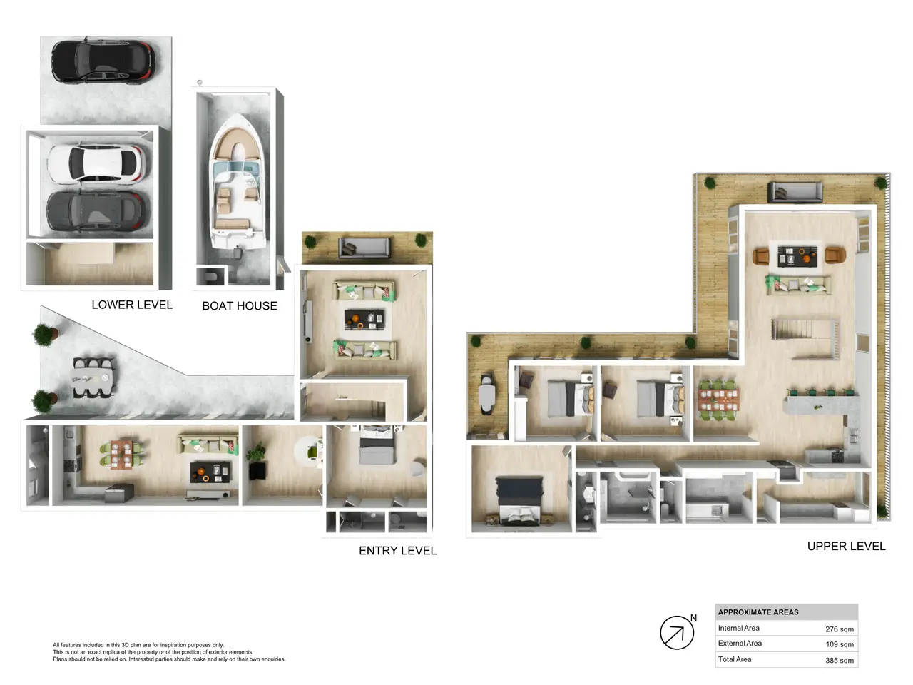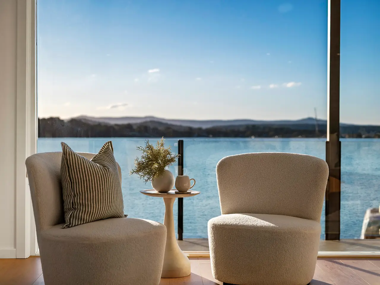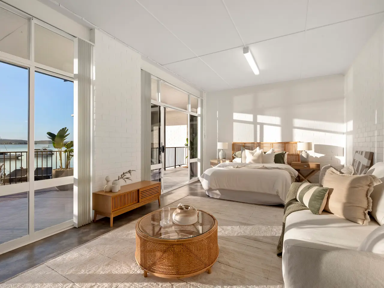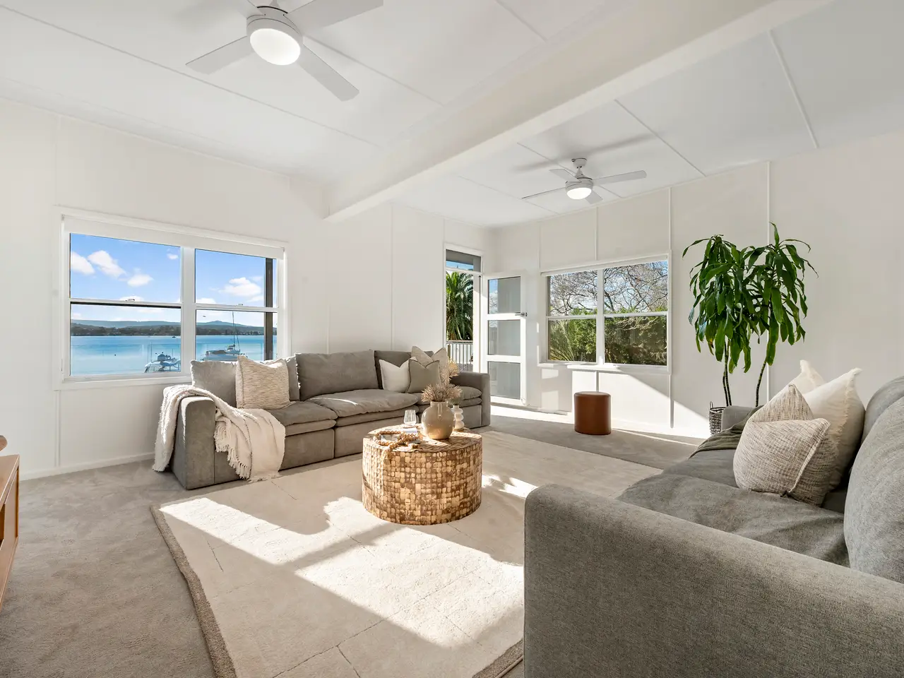 Capturing breathtaking lake views on absolute waterfront, this spectacular residence offers elegant lakeside living in one of Lake Macquarie's most sought-after addresses. Immaculate throughout, the property has been extensively renovated to create a light-filled sanctuary that impresses with its refined sense of style, luxury finishes and expansive layout. Perfectly suited to families seeking space, the home expands over two enchanting levels, where inviting everyday living is accentuated by sensational water views and an effortless indoor-outdoor flow from both living and sleep spaces. Brimming with beautiful alfresco areas you will long to linger in, it is a delight to come home to and a joy to entertain in. Alongside a stunning kitchen and two airy living spaces, there is superb versatility to be found in the studio with kitchenette, sizeable office and fifth bedroom, all positioned on ground level. With Lake Macquarie's sparkling shores lapping at the edges of the backyard, it is the complete package for anyone who loves getting out on the water, whether fishing, boating, kayaking or paddleboarding. In addition to the boathouse, the property boasts a private deep-water jetty, offering one of the select few moorings protected from the southerly wind on the eastern side of the lake. - Next-door property 45 Bareki Road, Eleebana also for sale, offering potential to purchase both residences and maximise lakefront presence - Impeccably renovated split-level home on an absoulte waterfront block set back from street at end of quiet cul-de-sac - Effortless coastal chic elevated by high ceilings, refined neutrals, pale timber floors and plush carpet - Expansive windows and glorious alfresco spaces provide sweeping, unobstructed views over the water - Bright and airy living through reconfigured open-plan on upper level, spilling out onto alfresco space enjoying lake breezes - Fabulous new kitchen flaunts huge walk-in pantry, sleek stone counters, premium Smeg appliances, inc. new dishwasher, and a breakfast bar bench with waterfall ends - Wraparound balcony connects open-plan and three large bedrooms, including master with new ensuite - New main bathroom features luxe bathtub, walk-in shower, dual vanity and separate WC - Lower level made up of family room, office, fifth bedroom with ensuite, and studio with kitchenette - Lower level also connected by sweeping alfresco space and sparkling lake views - Lakeside boathouse provides storage for all the toys, complete with slipway, WC, outdoor hot and cold shower, access to private deep-water jetty - Additional features inc. freshly painted and new floors and window coverings throughout, new laundry, two new Eco-deck balconies, ducted AC - Plentiful parking provided on driveway, double garage with epoxy floors, and single carport - Situated within a friendly and social local community, with Santa at Rocky Point a standout - Short drive or boat ride to Warners Bay and Belmont for lakeside cafes, supermarkets and conveniences - Zoned for Eleebana Public and Warners Bay High, access to Newcastle Grammar bus We have obtained all information used in the preparation of this document from third party sources however, we cannot guarantee the accuracy or currency of this information. Prospective purchasers and their advisors are advised to carry out and rely on their own enquiries and investigations in relation to the information in this document and the property it concerns.