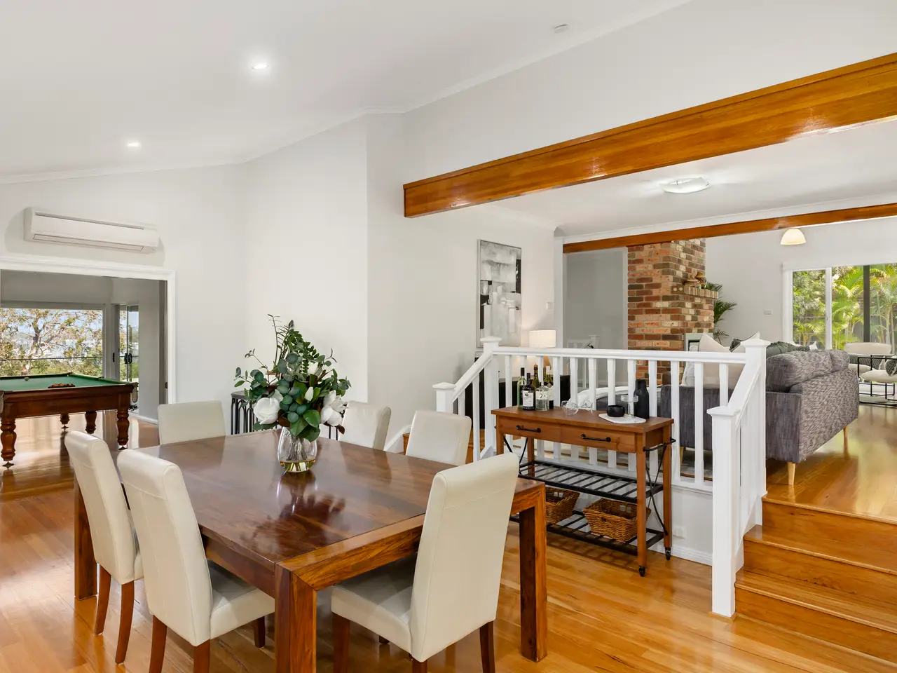 Hidden within a peaceful cul-de-sac, this beautifully composed home delivers the privacy, style and sense of escape every family dreams of. Surrounded by tropical greenery and designed to unfold across three thoughtful levels, it captures the essence of relaxed living. Light filters through every space, highlighting a modern interior that balances easy flow with architectural interest - from the double-height void and feature fireplace to the series of living zones connecting effortlessly to a collection of alfresco entertaining areas. Step outside and the mood shifts entirely: a crystal-blue pool glistens beside palm-fringed gardens, the soundtrack is birdsong, and the entire setting feels worlds away from suburbia. A home that celebrates both design and liveability, it's built for connection as much as retreat. The family can spread out across multiple living areas, cook in style in the stone-finished kitchen, or enjoy quiet moments in one of the five bedrooms. Surrounded by leafy outlooks and complete with a large backyard, this is a true sanctuary, where the outside world fades, and life revolves around calm, comfort and understated elegance. - Exceptional privacy surrounded by established gardens and natural greenery - Three-level design with garage, storage and powder room below; living zones and master suite mid-level; four bedrooms above - Open-plan living and meals area with direct flow to a covered deck and poolside entertaining - Designer kitchen with stone benchtops, mirrored splashback, 900mm gas oven, and garden outlook - Large rumpus with lake view plus separate formal lounge for flexibility - Double-height void, engineered timber floors, and feature brick fireplace with gas flame - Five bedrooms, all with robes; two modern bathrooms including ensuite, plus two powder rooms - Sparkling inground swimming pool bordered by lush tropical landscaping - Air conditioning, neutral palette, oversized double garage with storage space - Set in a quiet, community-minded pocket close to the lake, Eleebana Public School and popular foreshore pathways - 5 minute drive to Warners Bay's café culture, Belmont CBD, or Lake Macquarie Square We have obtained all information used in the preparation of this document from third party sources however, we cannot guarantee the accuracy or currency of this information. Prospective purchasers and their advisors are advised to carry out and rely on their own enquiries and investigations in relation to the information in this document and the property it concerns.