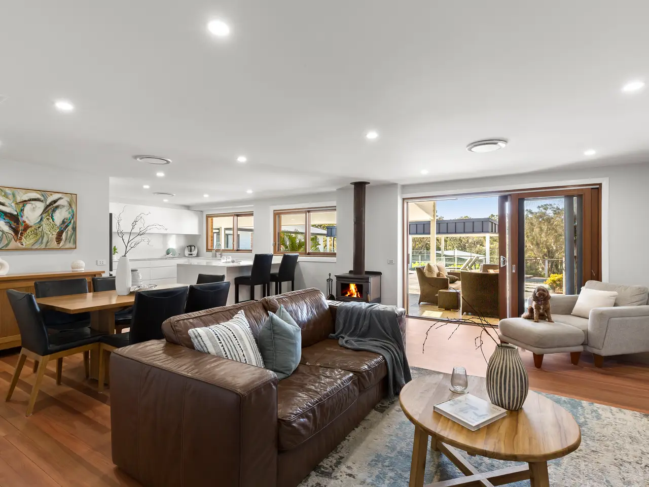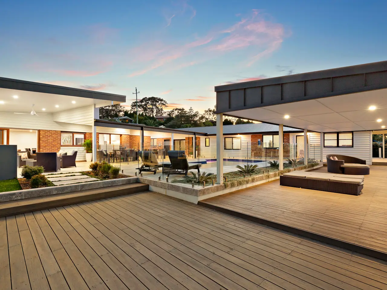 Set across 2.7 acres of manicured tranquility, 15 Cherry Road, Eleebana is an acreage estate that blurs the line between family sanctuary and five-star resort. The home itself is a triumph of scale and sophistication - dual level, beautifully renovated, and designed for modern living with a collection of formal and casual spaces, a high-gloss kitchen with stone benches and servery windows, plus bedrooms placed for privacy, including a ground-floor master suite and an upstairs children's wing anchored by a peaceful retreat space. Every detail has been considered: turpentine floors, an internal sauna, ducted air, winter fireplaces and a granny flat that rivals the size of an apartment, complete with its own lounge, kitchen and bathroom. Flexibility extends further with a massive shed featuring its own bathroom and mezzanine floor, an attached double garage with drive-through bay, and abundant parking for a motorhome, boat or trailers, ensuring this estate is as practical as it is indulgent. It's outside, though, where this property delivers its showpiece. A travertine terrace frames the mineral pool, an outdoor kitchen elevates entertaining, and a fireplace flickers as the sun goes down, creating an alfresco domain that rivals a luxury resort. A wraparound deck surveys sweeping lawns and an orchard laden with citrus, stone fruit, and nuts, adding an authentic acreage edge to its prestige credentials. Despite the sense of seclusion, the location is unbeatable - Lake Macquarie's foreshore, dining scene and picnic areas are at your fingertips, and Newcastle's sandy beaches and CBD are only 20 minutes away. Rarely does a home unite this level of space, seclusion and sophistication in one lifestyle-defining package. - Expansive family home, renovated to perfection and sitting on 10,960sqm of perfectly groomed grounds - Open plan family living plus formal lounge and dining, both warmed by charming fireplaces - Glossy white kitchen with waterfall-edged breakfast bar and big brand appliances - Superb wrap-around travertine terrace overlooks mineral pool and features an outdoor kitchen, fireplace with chimney, and enough space to host a crowd - Four beautifully appointed bedrooms, all with a ceiling fan, master includes dual WIRs - Glamorous ensuite, full family bathroom and a pool-house with bathroom and the luxury of an inbuilt sauna - Self-contained 1-bed/1-bath granny flat ideal for teenagers, extended family or guests - Five water tanks (90,000 litres) - Massive 19.7m x 14.8m shed with triple bay garage, workshop, mezzanine level and bathroom - Circular driveway with attached 2 car and 4 car garage with prized drive-through bay to yard - Ideal north-to-rear backyard with abundant space to play, entertain, tinker and garden - Once-in-a-lifetime opportunity to secure a lifestyle property that's on most people's wish-list We have obtained all information used in the preparation of this document from third party sources however, we cannot guarantee the accuracy or currency of this information. Prospective purchasers and their advisors are advised to carry out and rely on their own enquiries and investigations in relation to the information in this document and the property it concerns.