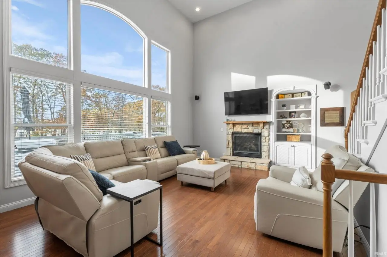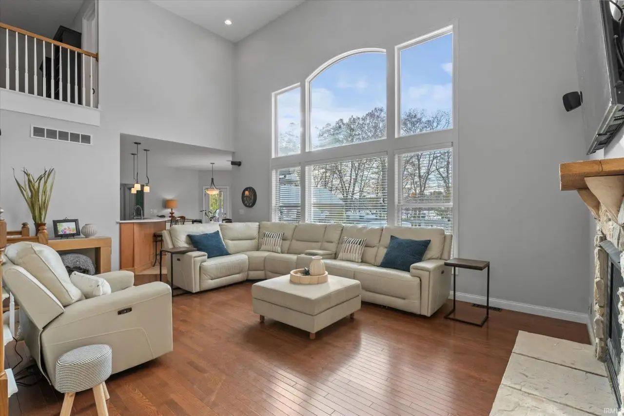 Unique Opportunity in Elkhart County! Discover this stunning 4-bedroom, 3.5-bath home perfectly situated on 3.5acres in a beautiful neighborhood setting. Complete with a private pond and an impressive 28' x 52' pole barn, this property offers the ideal blend of luxury, privacy, and functional space. Step inside to a grand, vaulted foyer that opens into a spacious great room featuring hardwood floors and breathtaking views of the pond. The main level also includes a formal dining room, living room, and a den with elegant French doors - providing plenty of space for work, relaxation, or entertainment. The large kitchen has tons of cabinetry, a walk-in pantry, and a layout designed for convenience. The main-floor primary suite boasts tray ceilings, deck access with beautiful views, and an expansive en-suite bath complete with separate his-and-hers vanities, dual walk-in closets, a walk-in shower, and a garden tub - all enhanced by heated floors. A main-floor laundry room, half bath, and charming 3-season screened porch complete the main level. Upstairs, a generous loft area overlooks the great room and provides additional living space. Two bedrooms share a Jack-and-Jill bath, while the third has its own private bathroom. All three bedrooms include walk-in closets. The bright, unfinished basement offers endless possibilities with numerous windows and direct access to the 3-car garage via a private staircase - ready for customization to suit your needs. Outdoors, enjoy peaceful views of the pond and the neighboring open field. With abundant beauty, privacy, and storage, this property is truly one-of-a-kind.