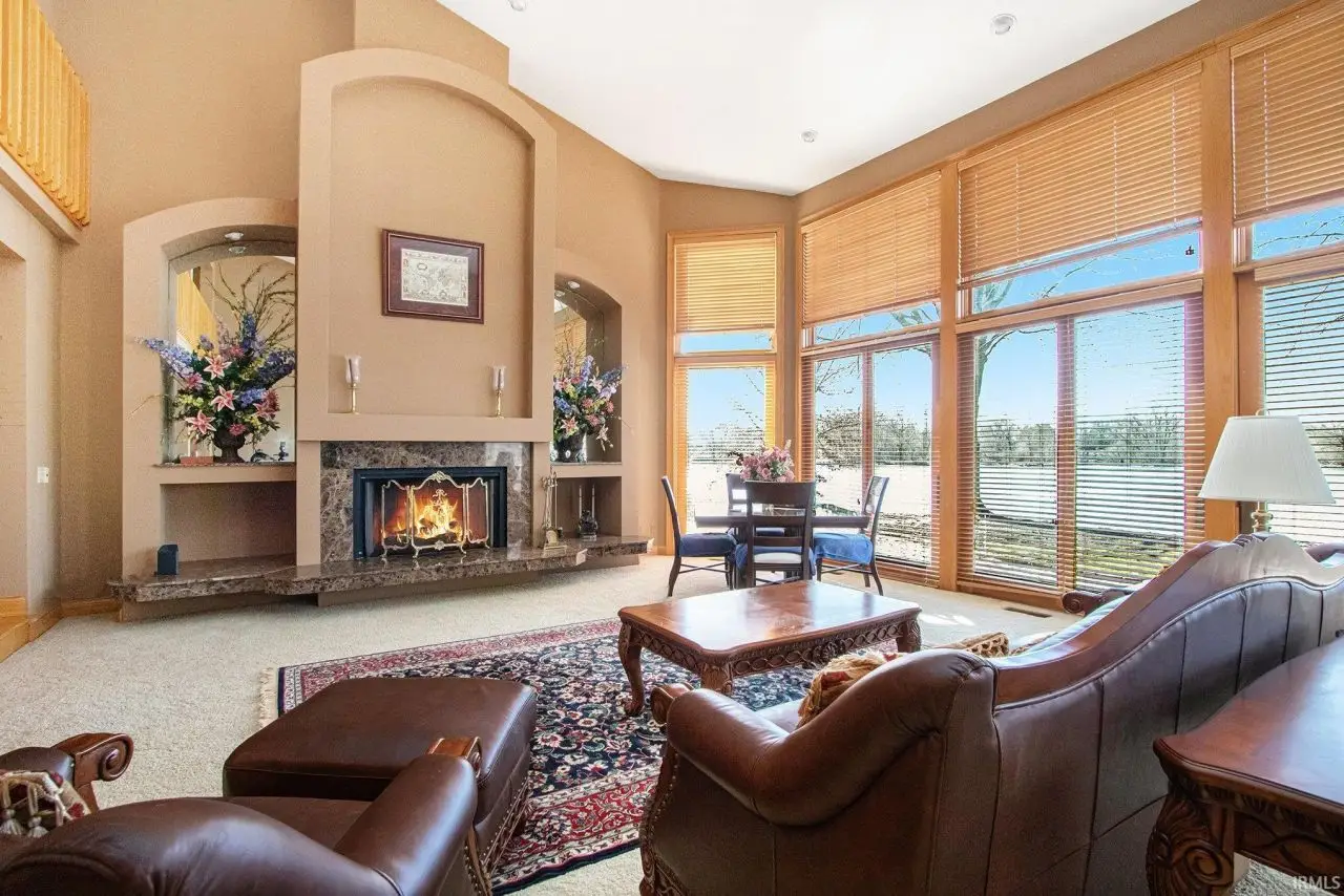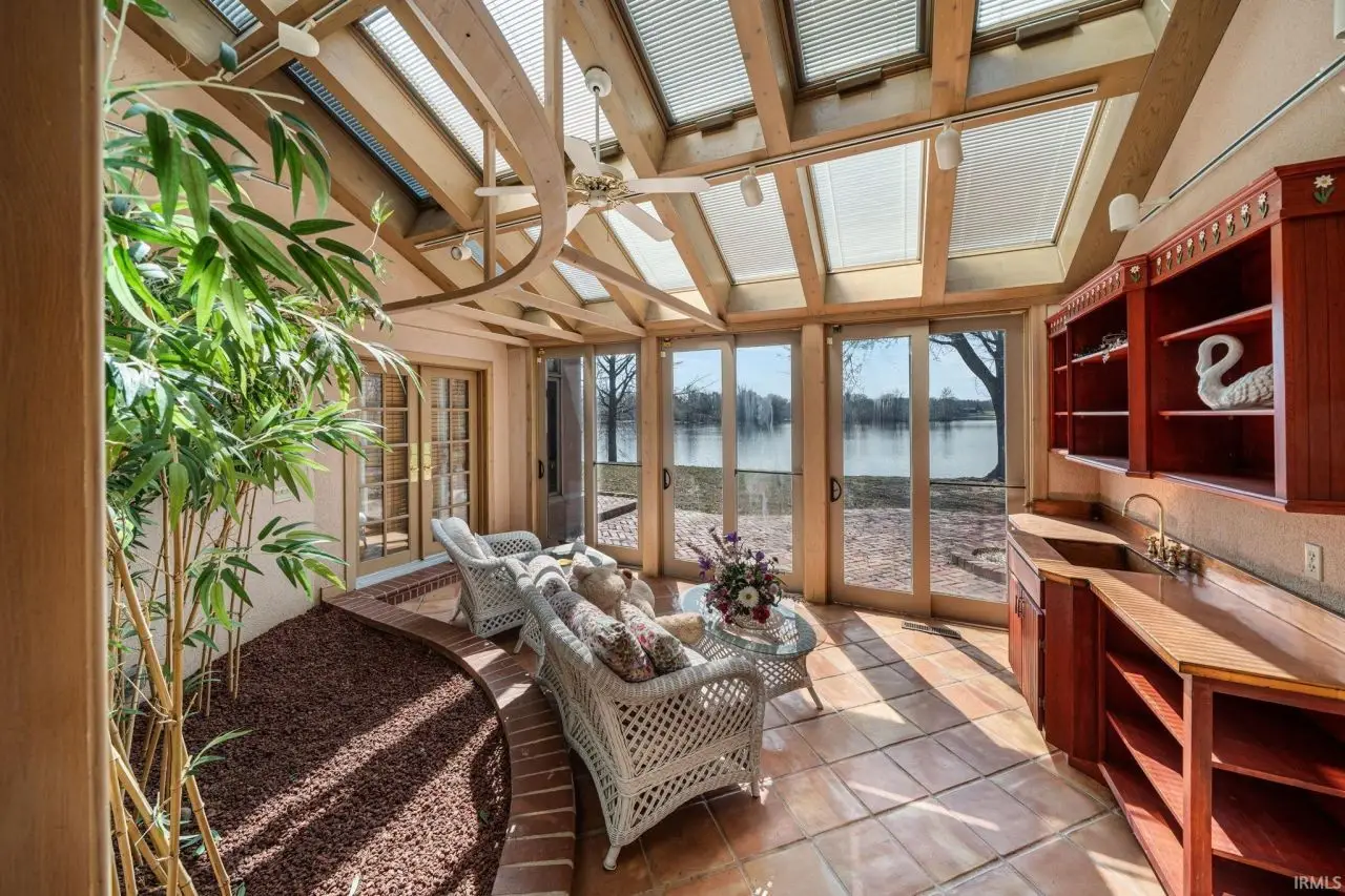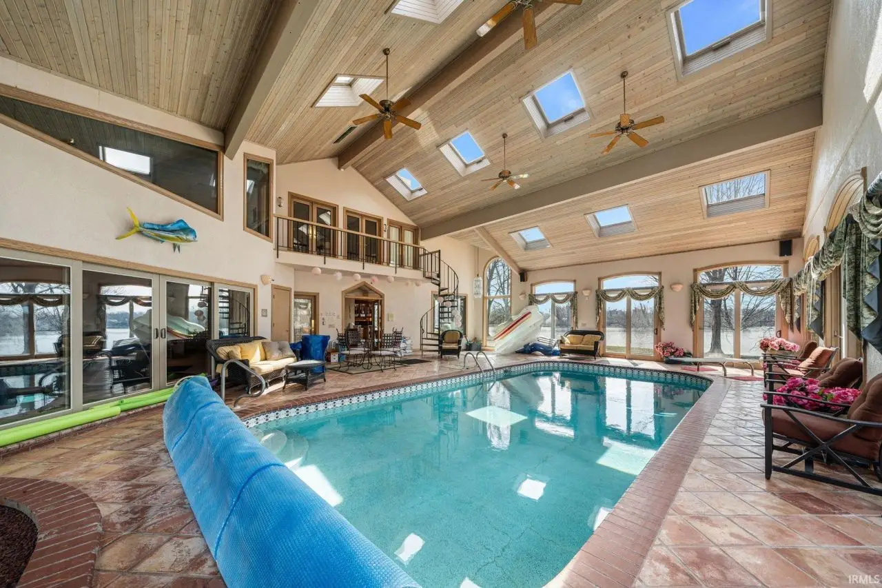 LUXURY LIVING AT ITS FINEST WITH ALL THE AMENITIES ONE COULD DESIRE! GORGEOUS RIVER FRONTAGE WITH HUGE PRIMARY SUITE, CUSTOM KITCHEN, INDOOR POOL WITH GYM AND SAUNA, SUNROOM, THEATER ROOM, OFFICE, 4 TO 6 CAR GARAGE AND SO MUCH MORE. As you enter you'll be taken back by the vaulted ceilings, the winding wooden staircase, the Mexican Tile floors, and the incredible candle and light chandelier. You'll be tempted to relax in the cozy sunroom and will enjoy having breakfast sitting at the semi-circular nook with open views of the water. Primary bedroom on the main floor is 75' long with 2 walk-in closets and huge bathroom. Upper level features all in-suite bedrooms. The lower level is a great clubroom with a built in bar. Fireplaces are placed in all the key areas throughout the house. THIS IS LUXURY LIVING AT ITS BEST!
