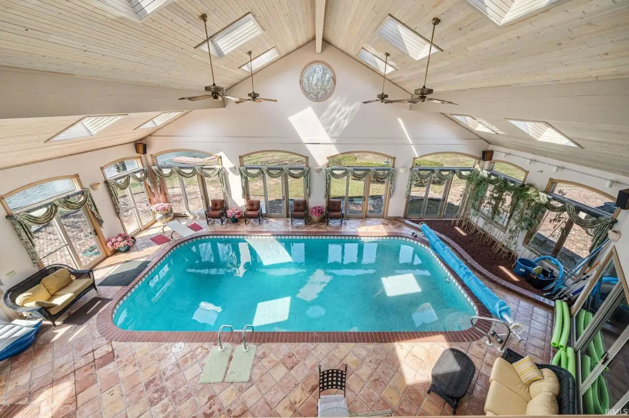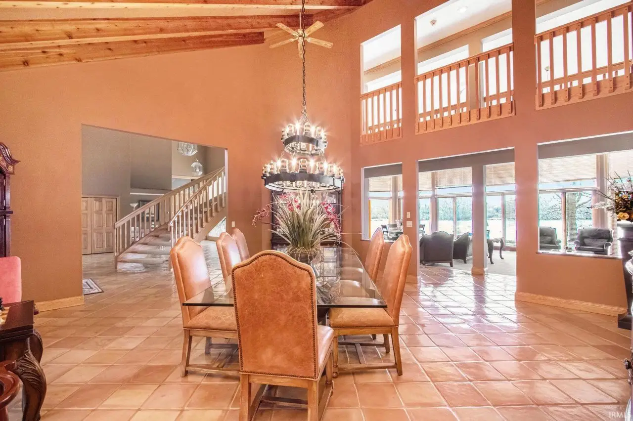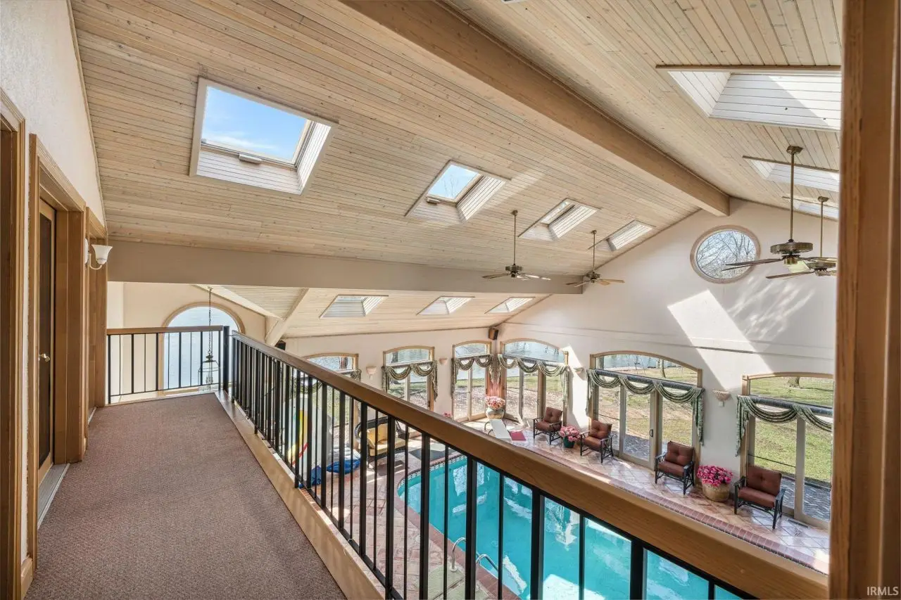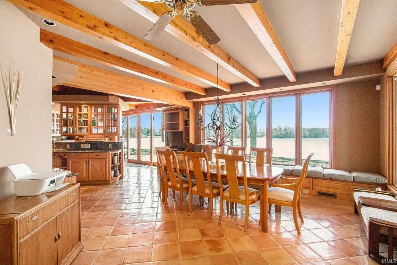 LUXURY LIVING AT ITS FINEST WITH ALL THE AMENITIES ONE COULD DESIRE! GORGEOUS RIVER FRONTAGE WITH HUGE PRIMARY SUITE, CUSTOM KITCHEN, INDOOR POOL WITH GYM AND SAUNA, SUNROOM, THEATER ROOM, OFFICE, 4 TO 6 CAR GARAGE AND SO MUCH MORE. As you enter you'll be taken back by the vaulted ceilings, the winding wooden staircase, the Mexican Tile floors, and the incredible candle and light chandelier. You'll be tempted to relax in the cozy sunroom and will enjoy having breakfast sitting at the semi-circular nook with open views of the water. Primary bedroom on the main floor is 75' long with 2 walk-in closets and huge bathroom. Upper level features all in-suite bedrooms. The lower level is a great clubroom with a built in bar. Fireplaces are placed in all the key areas throughout the house. THIS IS LUXURY LIVING AT ITS BEST!