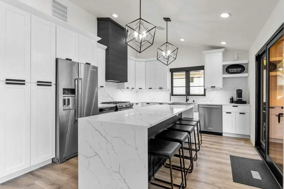 • Waterfall island with bar seating