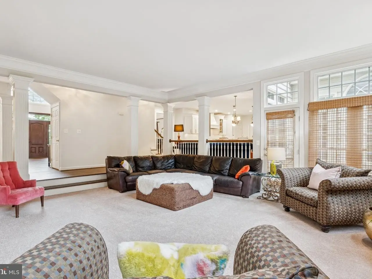 Welcome to 3028 Seneca Chief Trail in Ellicott City, a beautiful NV Homes Georgetown model offering 7,034 total square feet of living space, including a mostly finished basement, set on nearly one acre of wooded privacy. This home has been lovingly maintained by the original owners and showcases thoughtful updates throughout. The main level impresses with soaring ceilings and a double staircase that flows from both the foyer and the kitchen. The gourmet kitchen was renovated in 2018 with quartz counters, white cabinetry, and stainless steel appliances, and opens seamlessly into the sunroom and spacious family room, making it perfect for entertaining. Off the sunroom, the backyard features a Trex deck completed in 2023 and back pavers installed in 2022. The main level also includes a large living room, dining room, private office with serene lawn views, laundry room, and a freshly carpeted family room featuring built-ins and a fireplace. Upstairs offers four generously sized bedrooms. The primary suite includes a sitting room, two walk-in closets, and a large bath. A Jack and Jill suite connects two bedrooms with a shared bath, while the fourth bedroom has its own private bath. New carpet was just installed throughout the entire upstairs. The walkout basement expands the living space with a large media room, a flex room with adjoining full bath, a unique custom-designed make-up/hair studio, and an unfinished storage and utility space with built-in cabinetry. Additional highlights include a two-car garage with direct access to the laundry room, a driveway that accommodates five or more cars, a roof replaced three years ago with transferable warranty, two separate HVAC systems (furnace/AC for the main level and basement, heat pump for the upper level), nearly all fresh interior paint, and a washer and dryer that are only a couple of years old. This home combines elegance, space, and privacy, all within a highly desirable Ellicott City location. It feeds into Manor Woods Elementary, Mount View Middle School, and Marriotts Ridge High School. Open houses will be held Saturday and Sunday. Square footage is based on estimated floor plans provided by the photographer and may differ from public records. All measurements are approximate and should be independently verified.