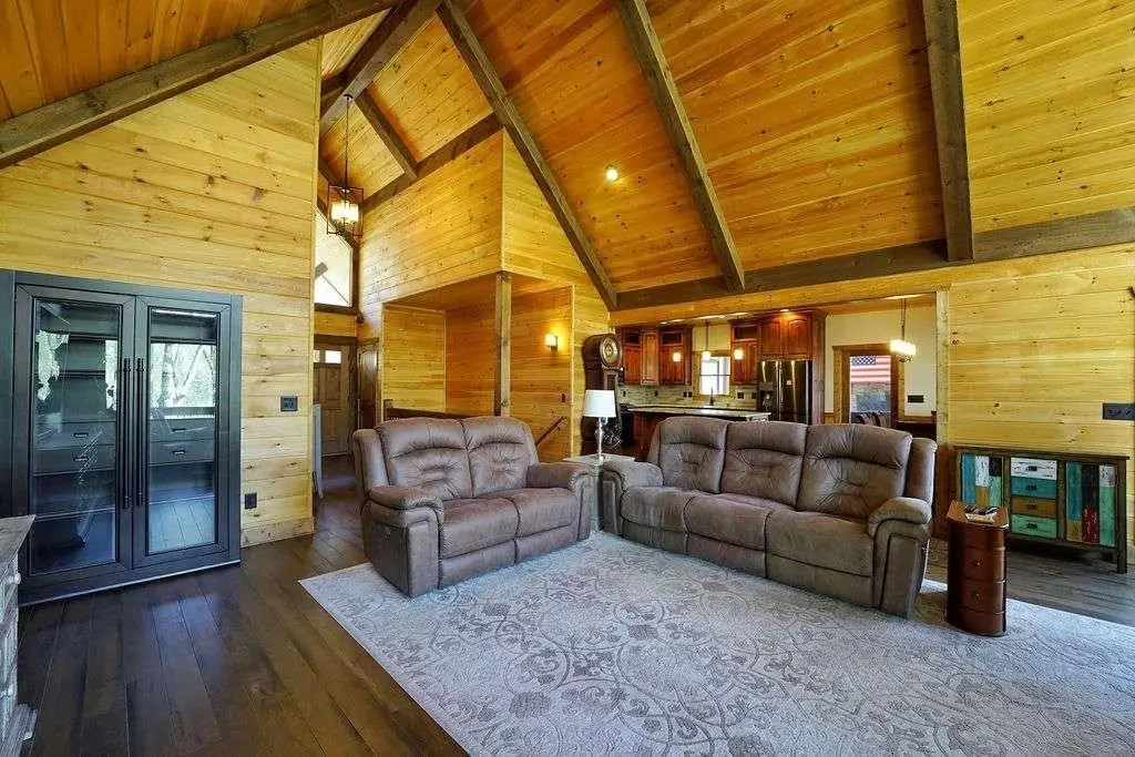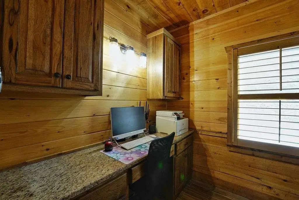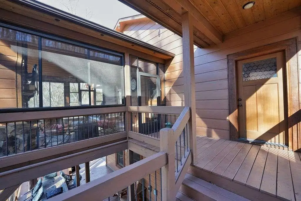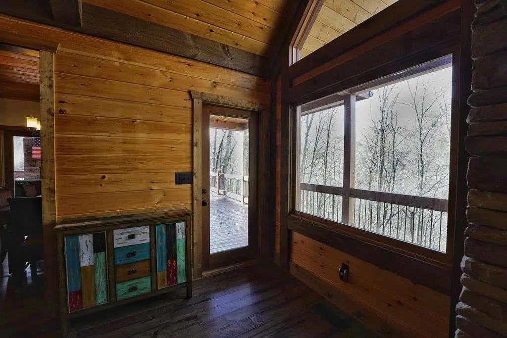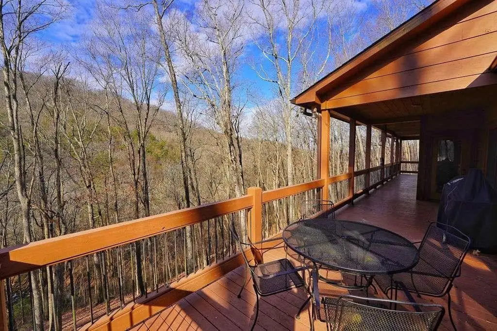 Nestled in the heart of the North Georgia Mountains, this exquisite and charming mountain home in Falling Waters hosts an unparalleled blend of luxury and nature with 2.3 tastefully landscaped acres, creek access and breathtaking views. With over 3600 sq ft of living space, each level will make your jaw drop. The main living floor includes the family room with stacked stone fireplace, chef's kitchen with custom cabinetry and stainless steel appliances, large laundry room/utility room downstairs, home office space, primary suite, plus an additional spacious bedroom and bath. On this level outside is a screened-in living space with a cozy wood burning fireplace. The terrace level is home to two large bedrooms and bathrooms, a full home gym, stacked stone fireplace, and a wet bar. Custom cabinets, granite countertops, high-end finishes and modern touches are found throughout the home. Expansive decks adorn the entire back of the house and overlook a large flagstone firepit area, a sauna and hot tub, all of which stay with the home! This home is the most perfect blend of natural beauty and modern comfort. Truly a must see! Newly built outdoor shed. Samsung front load washer and dryer stay.