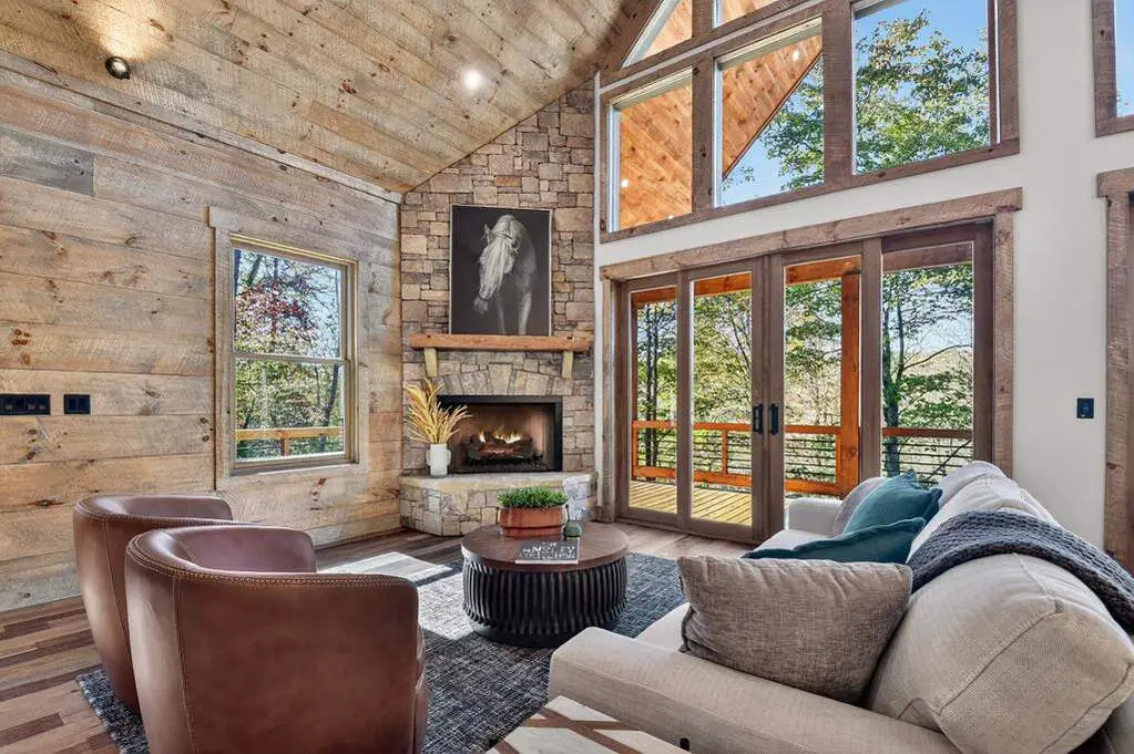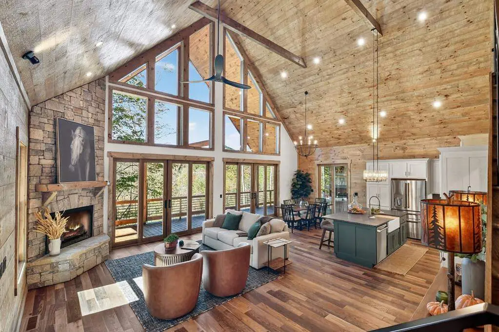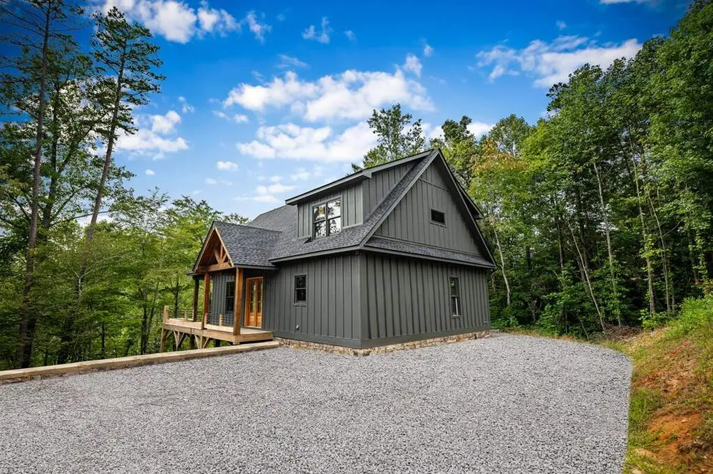 Nestled between the charming mountain towns of Ellijay and Blue Ridge, this stunning new construction by Homestead Mountain Home Builder's offers the perfect blend of modern comfort and natural serenity. Featuring 4 spacious bedrooms and 3.5 luxurious baths, (one bonus room), this home is designed for both everyday living and mountain retreat escapes. Enjoy the cozy stone outdoor fireplace, perfect for gatherings under the stars. Enjoy year-round panoramic views from your private sanctuary, located in a peaceful gated community with high-speed fiber optic internet-ideal for remote work or streaming in the mountains. The neighborhood includes a scenic common area with a serene pond, outdoor entertainment space. This is mountain living at its finest-peaceful, connected, and beautifully crafted. Don't miss your chance to own in one of North Georgia's most desirable communities.
