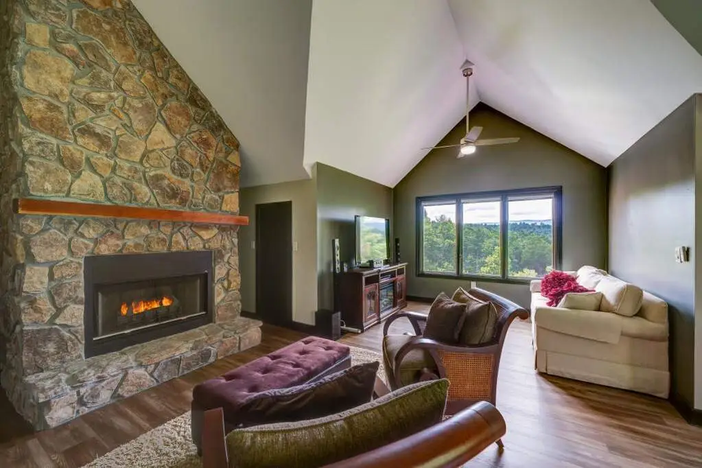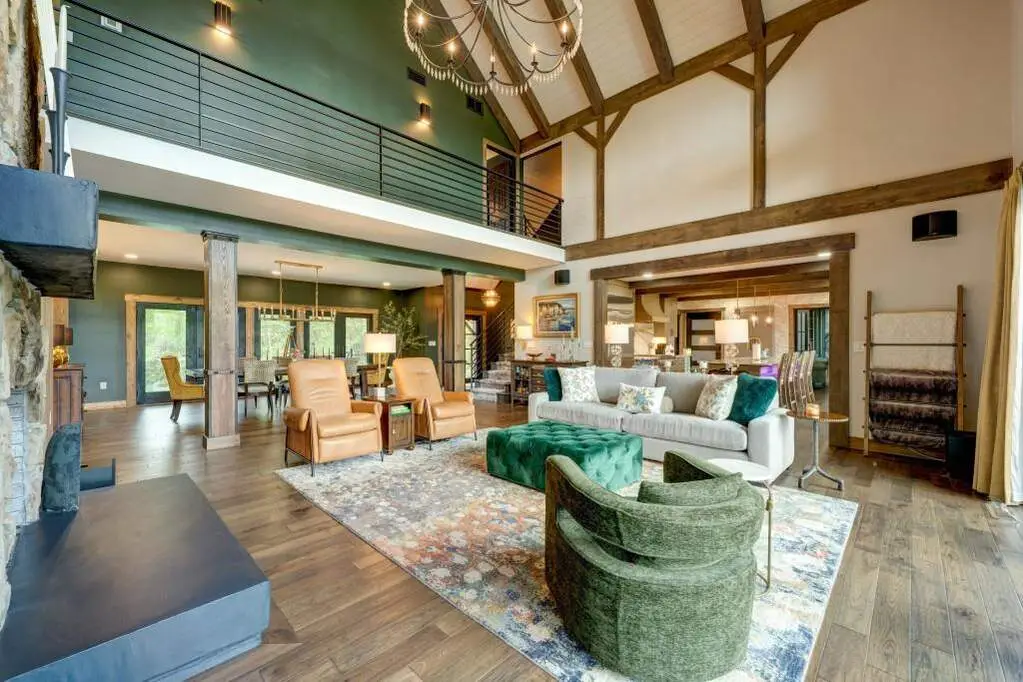 Welcome to Holly Hill Estate, a spectacular property set on 34+ acres showcasing year-round views in every direction. As you enter the property along the gentle pasture, past the vintage barn leading to the impressive home, to the sweeping mountain views from the expansive covered rear deck with swim spa, past the woodlands and down to the serene pasture and 875+ feet of Conasauga Creek frontage, this property encompasses many special moments. The fully furnished home underwent a two-year complete top-to-bottom renovation and transformation, with attention to detail and impressive finishes throughout. A complete features list is available to detail the significant level of improvements. Highlights include the chef's kitchen with custom white oak cabinetry, Quartzite countertops, and Monogram appliances. The den's Renaissance inspired details wow with custom cabinetry, marble and bronze inlays, a stunning ceiling fresco and private deck with stone fireplace. The great room's soaring ceilings, walls of glass to take in the views, custom cabinetry, stone fireplace, and doors opening to the covered deck create a welcoming space for year-round entertaining. The serene main level primary suite delights with a linear fireplace and luxurious spa bathroom; while the upper level has three ensuite bedrooms, one of which is oversized and suitable as a game room, media room, secondary living room, or bunkroom. Custom lighting, stone and wood details and bespoke furniture, all sourced from around the world complete the refined and luxurious interior. The exterior was designed for minimal maintenance with a new roof, soffits, fascia and gutters, no-fade siding, composite decking and cable railings, and new windows and doors throughout. Enjoy year-round comfort with three HVAC units, whole house generator, three propane tanks and fiber optic internet. Entertainment and relaxation abound with 4 fireplaces, 2280+sq ft of finished outdoor space with multiple front and rear covered spa