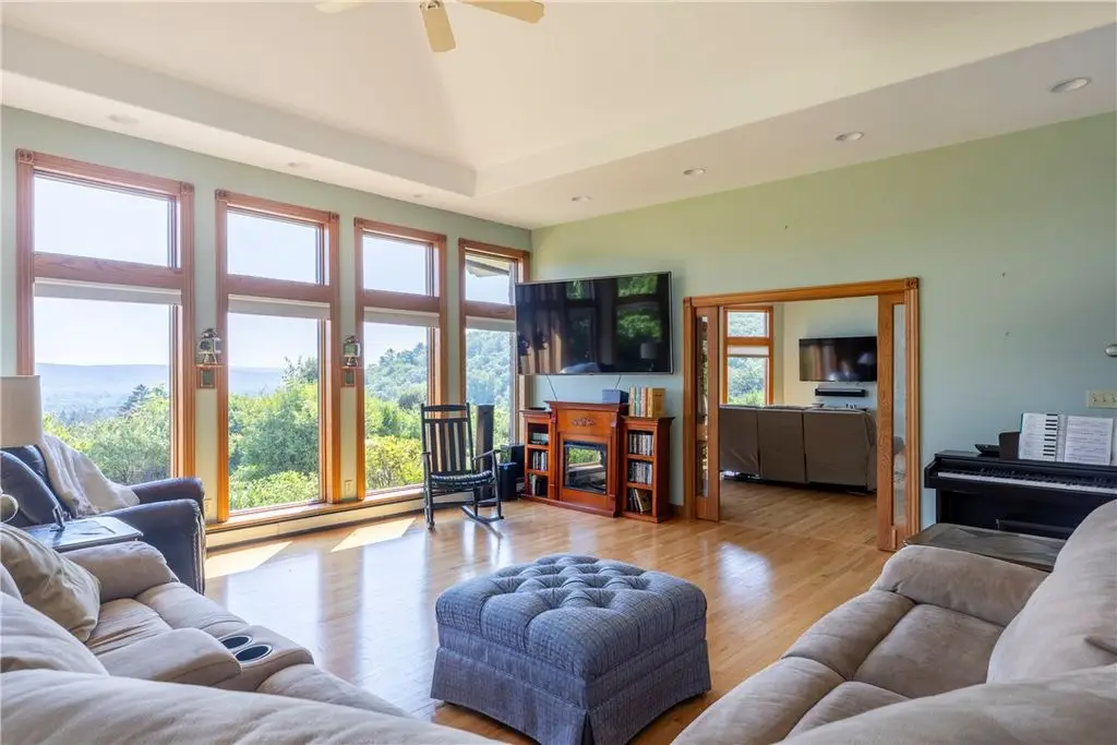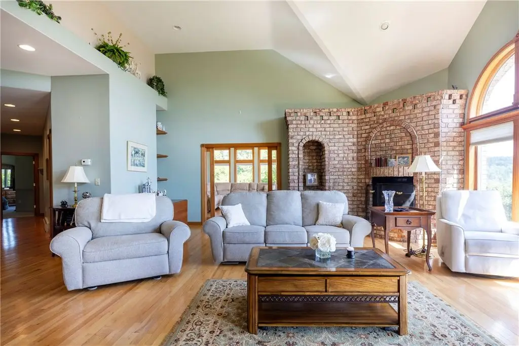 Absolutely spectacular custom built home with quality throughout. This four bedroom, executive ranch style home is situated on six acres offering amazing views of the area and is centrally located. Double door vaulted entryway, formal living room with double sided fireplace and doors leading to an outside patio, formal dining room can seat many, large great room with fireplace with expansive windows to capture the view; sunroom or reading room, fabulous eat-in kitchen with all top of the line appliances, breakfast bar, dining area and adjacent pantry has numerous storage cabinets and desk area plus there is an adjacent bath. The east wing has three very good-sized bedrooms and two full baths. The west wing has a private office den or nursery off the huge master bedroom suite, which includes a spacious bathroom with double vanity, shower, walk-in tub, private toilet and extra-large walk-in closet. There is a first-floor laundry, plus a lower level recreation room with full bath. The full, concrete basement is divided into sections which could be easily finished into several additional rooms. There are two hot water baseboard furnaces and two brand new central air units. The breezeway attaches the house to the three car garage. Above the garage is a two room apartment with a living room, bedroom and full bath. Everything you have been looking for is right here! It's gorgeous!