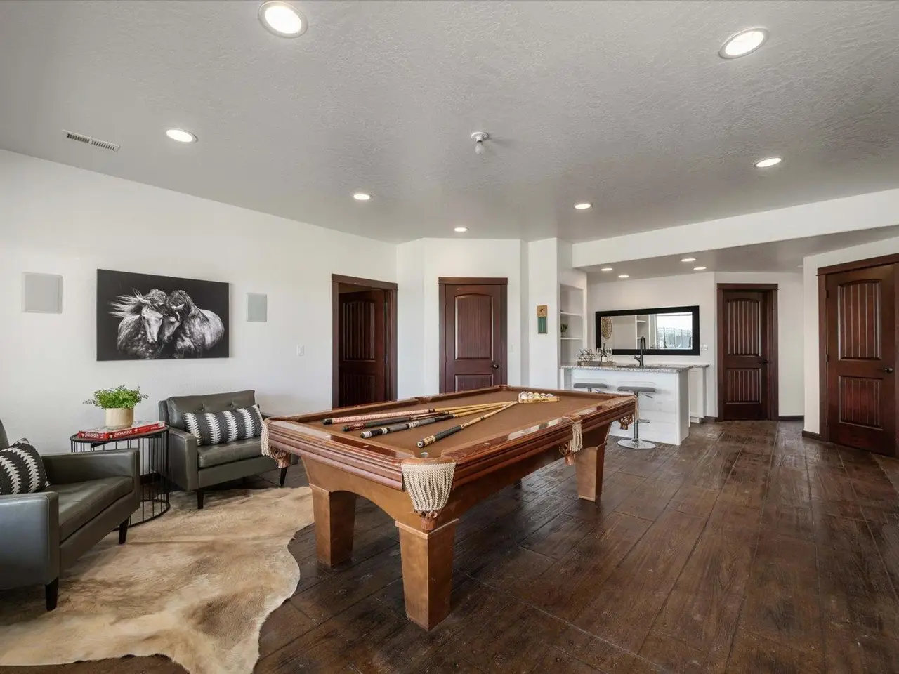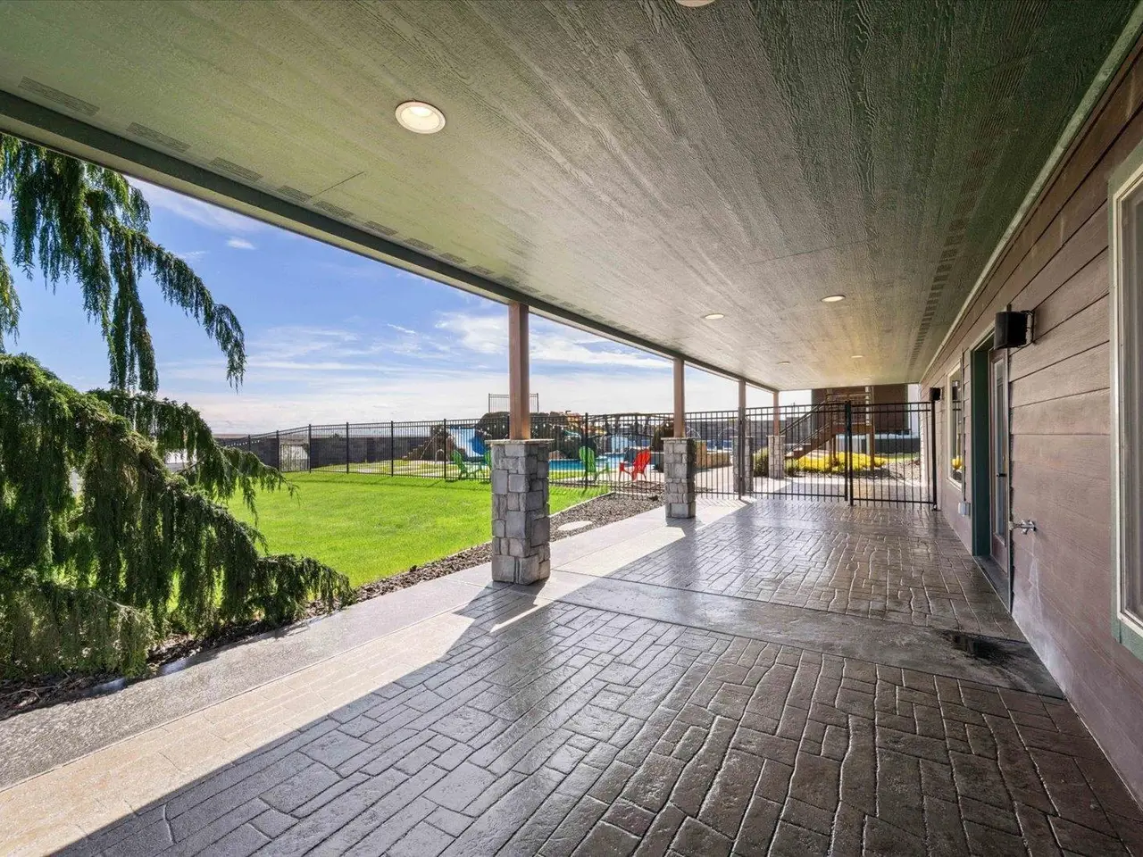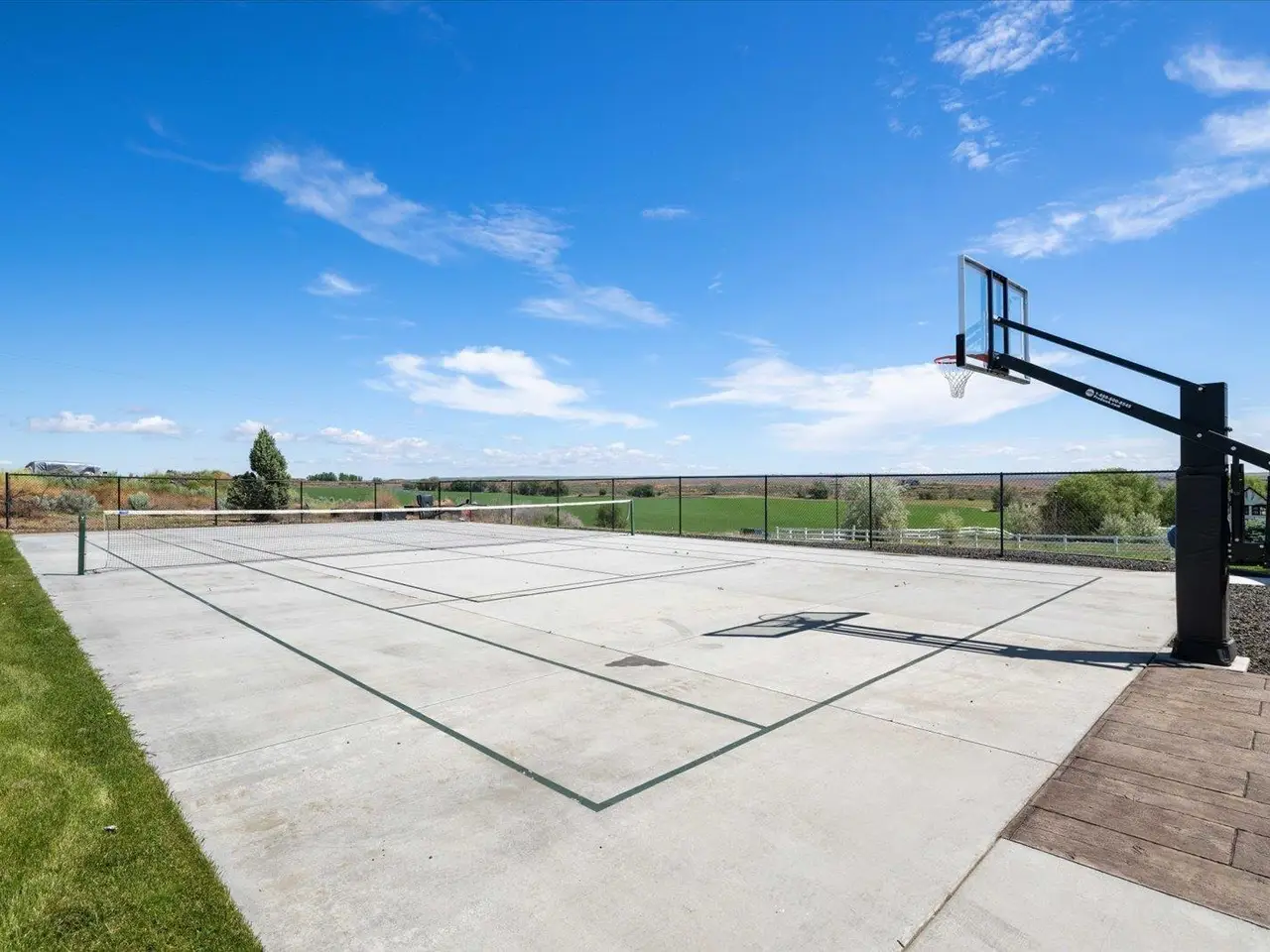 Presenting this exclusive premier listing – Discover unparalleled privacy and resort-style living just 12 minutes north of Pasco, Washington. Nestled on 4.34 acres, this extraordinary 4-bedroom, 5-bath estate offers 3,356 sq ft of luxury and functionality, thoughtfully designed for upscale entertaining and everyday comfort. The open-concept kitchen and living area exude modern elegance with an oversized granite island, brand new built-in fridge/freezer, large pantry, Venetian plaster ceiling, custom millwork, and ambient LED up-lighting. The main level features a versatile bedroom or office, full bath, and spacious laundry/mudroom with oversized sink. The massive primary suite is a private retreat with French doors opening to the outdoor oasis and covered patio, a large walk-in closet, and a spa-like en-suite with self-heated two-person Jacuzzi tub, dual showerheads with rain feature, dual vanities, heated towel rack, and smart TV. The daylight basement continues the luxury experience with stamped and stained wood-look concrete floors, two additional bedrooms (one with walk-in closet), full bath, game room with pool table, and a custom wet bar with sink and luxury cabinetry. The professionally designed theater room includes a half bath, no-touch urinal, climate control, and 8” steel-reinforced safe room. Outdoor living is truly unmatched, featuring a 43,000-gallon lagoon-style pool with swim-up bar, grotto rock waterfall, waterslide, two white sand beaches, bridge, 20+ person hot tub with waterfalls, and a gas fire pit. Additional highlights include a miniature lake with sand beach and firepit, an outdoor amphitheater with 200”+ drop-down screen and built-in bar, and an outdoor bathroom with shower for pool guests. The upper stamped concrete deck offers panoramic territorial views of the Basin and Blue Mountains and includes a custom built-in Traeger grill, outdoor kitchen, sink, and refrigerator. The lower covered patio features outdoor speakers and more stamped concrete for seamless entertainment. A newly added sport court with pickleball and a fully fenced, irrigated pasture for horses or livestock make this property both luxurious and functional. With a private drive, low-maintenance pre-stained concrete siding, standing seam metal roof, and proximity to schools, highway access, and Country Mercantile nearby, this one-of-a-kind estate is a rare opportunity in the Tri-Cities.