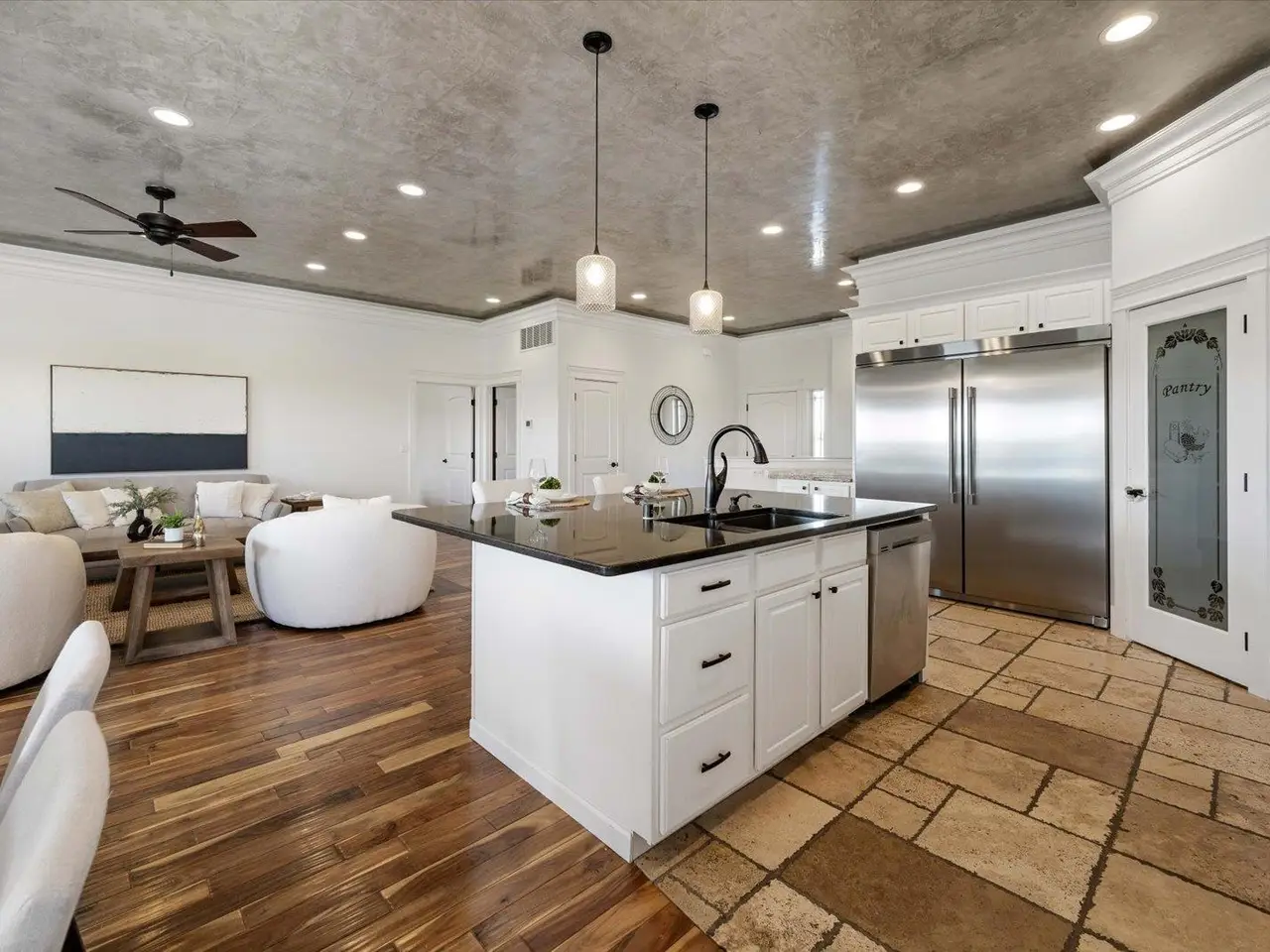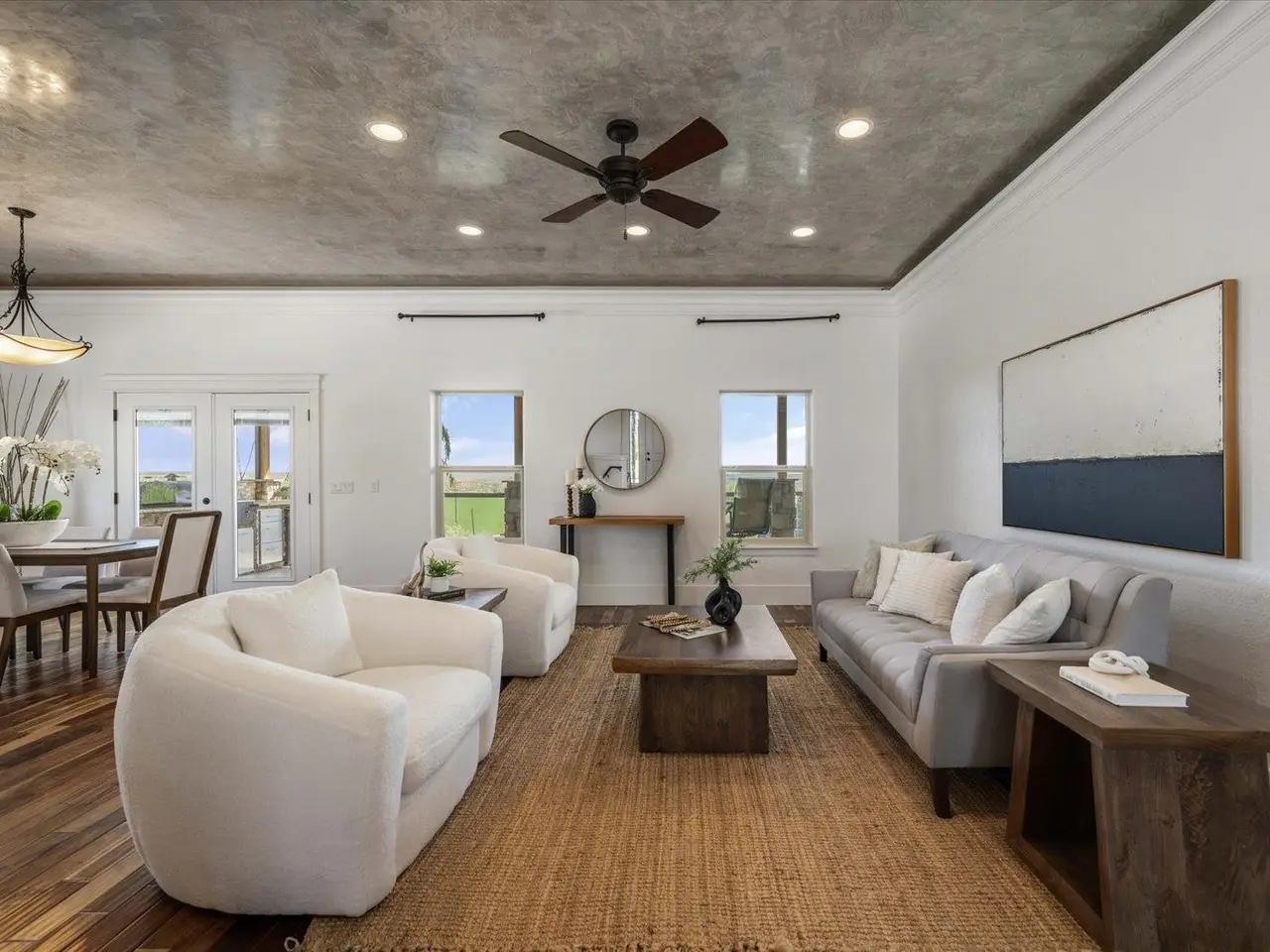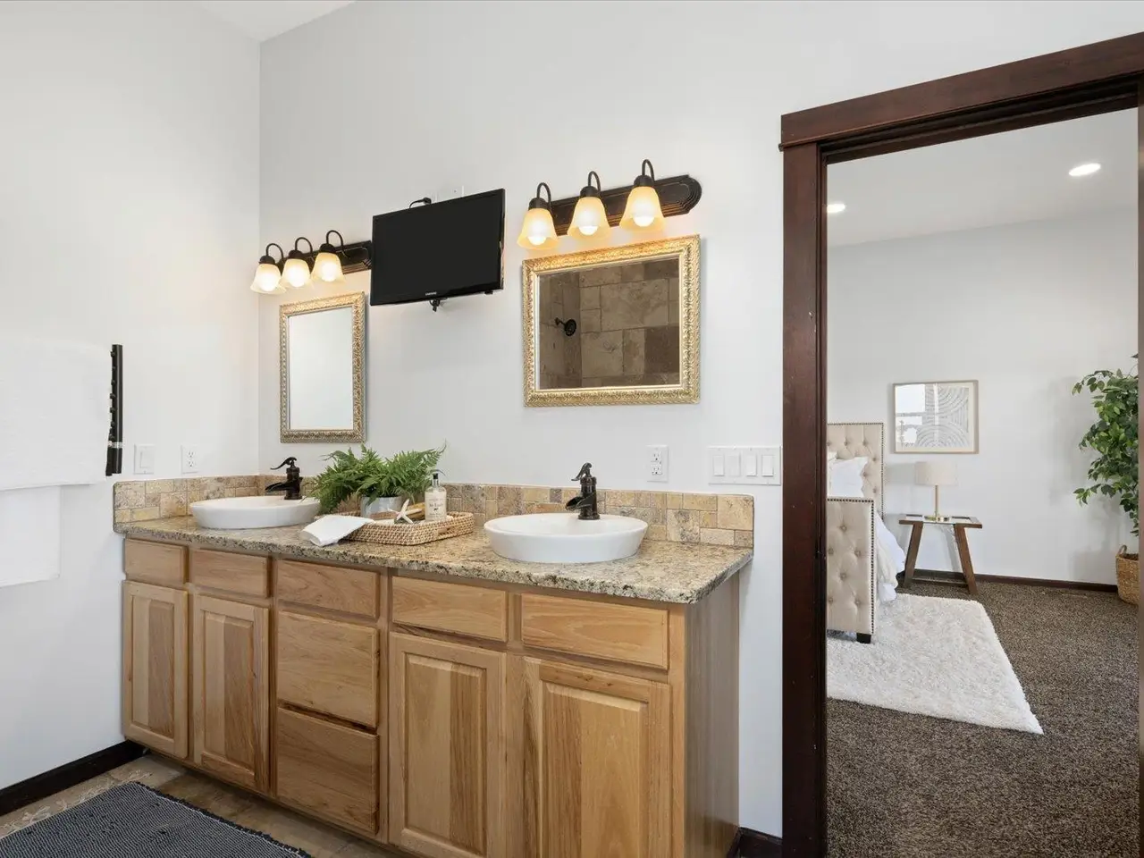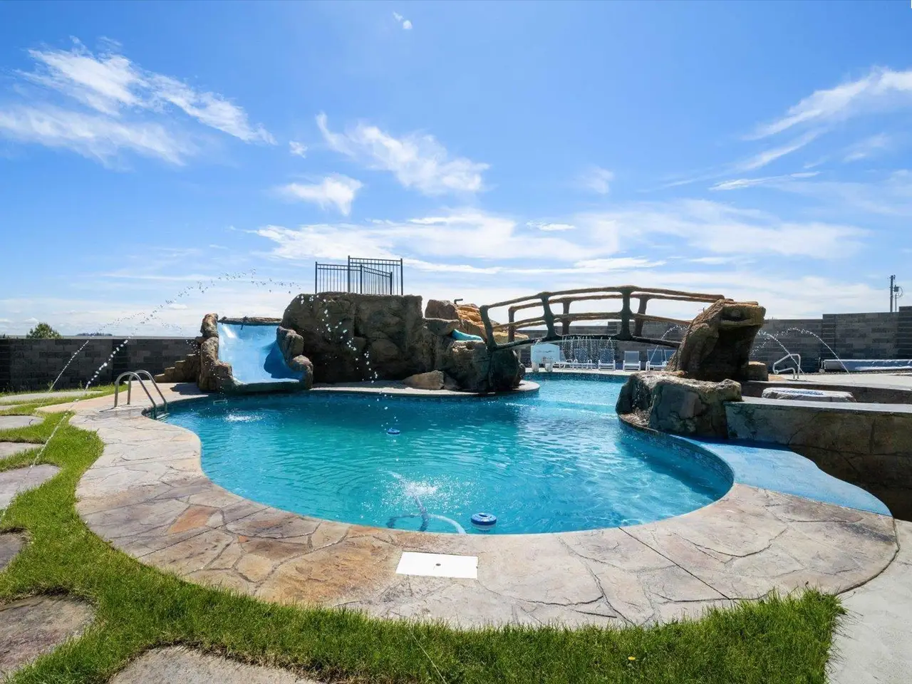 Presenting this exclusive premier listing – Discover unparalleled privacy and resort-style living just 12 minutes north of Pasco, Washington. Nestled on 4.34 acres, this extraordinary 4-bedroom, 5-bath estate offers 3,356 sq ft of luxury and functionality, thoughtfully designed for upscale entertaining and everyday comfort. The open-concept kitchen and living area exude modern elegance with an oversized granite island, brand new built-in fridge/freezer, large pantry, Venetian plaster ceiling, custom millwork, and ambient LED up-lighting. The main level features a versatile bedroom or office, full bath, and spacious laundry/mudroom with oversized sink. The massive primary suite is a private retreat with French doors opening to the outdoor oasis and covered patio, a large walk-in closet, and a spa-like en-suite with self-heated two-person Jacuzzi tub, dual showerheads with rain feature, dual vanities, heated towel rack, and smart TV. The daylight basement continues the luxury experience with stamped and stained wood-look concrete floors, two additional bedrooms (one with walk-in closet), full bath, game room with pool table, and a custom wet bar with sink and luxury cabinetry. The professionally designed theater room includes a half bath, no-touch urinal, climate control, and 8” steel-reinforced safe room. Outdoor living is truly unmatched, featuring a 43,000-gallon lagoon-style pool with swim-up bar, grotto rock waterfall, waterslide, two white sand beaches, bridge, 20+ person hot tub with waterfalls, and a gas fire pit. Additional highlights include a miniature lake with sand beach and firepit, an outdoor amphitheater with 200”+ drop-down screen and built-in bar, and an outdoor bathroom with shower for pool guests. The upper stamped concrete deck offers panoramic territorial views of the Basin and Blue Mountains and includes a custom built-in Traeger grill, outdoor kitchen, sink, and refrigerator. The lower covered patio features outdoor speakers and more stamped concrete for seamless entertainment. A newly added sport court with pickleball and a fully fenced, irrigated pasture for horses or livestock make this property both luxurious and functional. With a private drive, low-maintenance pre-stained concrete siding, standing seam metal roof, and proximity to schools, highway access, and Country Mercantile nearby, this one-of-a-kind estate is a rare opportunity in the Tri-Cities.