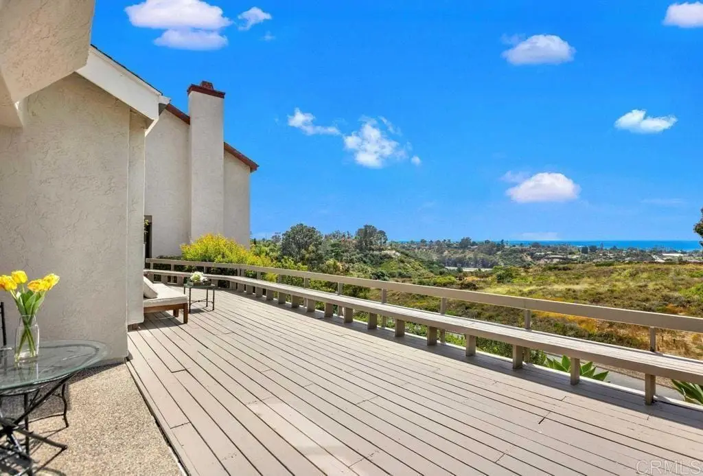 *Tenant Occupied* DO NOT DISTURB TENANT - Agent accompanied showings ONLY. Experience breathtaking coastal living from this rare corner-lot Skyloft home in Coastal Encinitas, offering sweeping 180 views from the Pacific Ocean to the Batiquitos Lagoon Ecological Reserve. This bright 3-bedroom, 2.5-bath residence features vaulted ceilings, engineered hardwood floors, modern bathrooms, and a newly remodeled rear deck designed to capture the panoramic horizon. Enjoy custom closets, a spacious two-car garage, and beautifully updated bathrooms with wood vanities, quartz countertops, and contemporary fixtures. Mid-Century Moderninspired lighting adds timeless coastal elegance, while community amenities include a saltwater pool, spa, tennis and pickleball courts, dog park, playground, and clubhouse. A perfect blend of modern design, coastal beauty, and relaxed beach-town living.