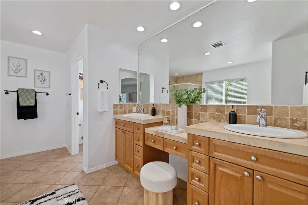 Spa-like bathroom with dual vanities