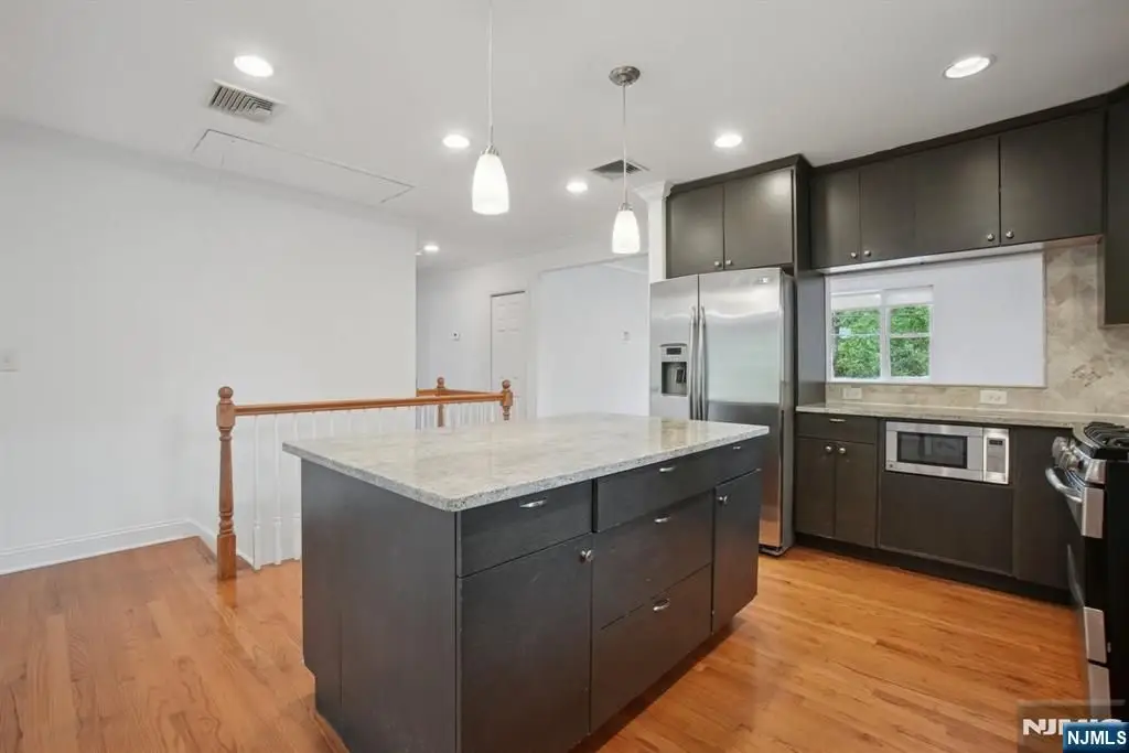 North Cliffs / Close to NYC Transportation / Low Taxes Renovated four-bedroom, three-bath contemporary tri-level with open floor plan, hardwood floors, and abundant natural light. Stylish kitchen with center island, granite counters, and stainless appliances. Features two bedrooms on each level plus a large private office with separate entrance "perfect for work-from-home. Newer windows, updated baths, and circular drive. A great alternative to townhome living!