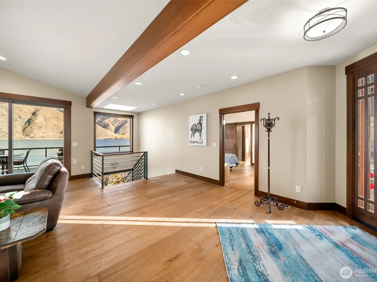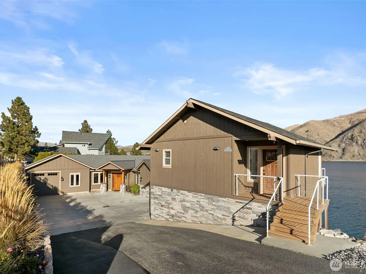 Welcome home to this masterfully crafted Entiat home + ADU featuring premier riverfront living on the Columbia River with ~141ft of low-bank frontage, a newer SINGLE use dock & 9,000lb boat lift. Upon entry you will find exsposed beams, vaulted ceilings, extensive use of engineered hardwood flooring, focal floor to ceiling fireplace & stunning mountain and river views. Inviting chef's kitchen with large center island, SS appliances, induction cooktop, large walk-in pantry and adjoining family room with oversized slider door to rear covered deck area that features infrared heaters - ideal for entertaining. Main floor primary suite, lower rec room, ample parking - the list goes on. An exceptional waterfront opportunity in Central WA!