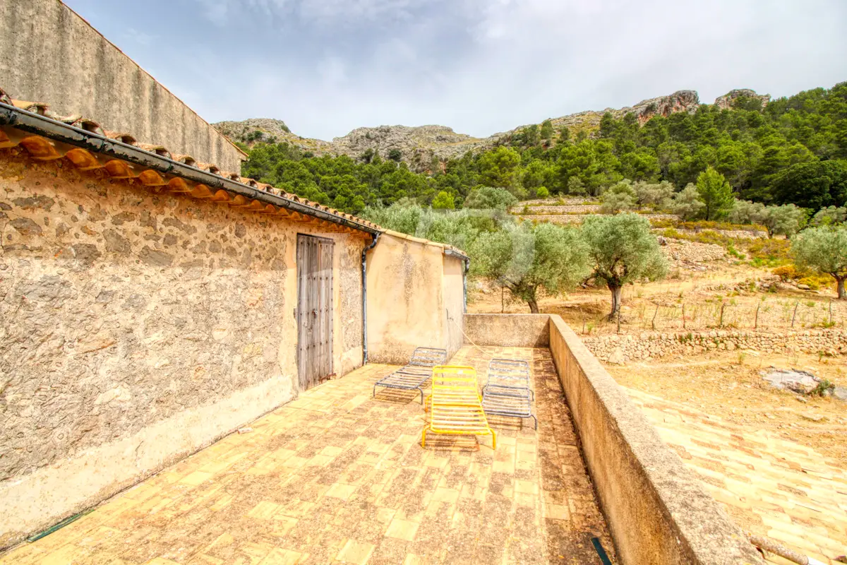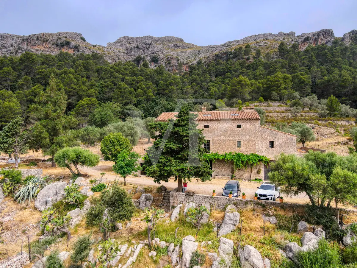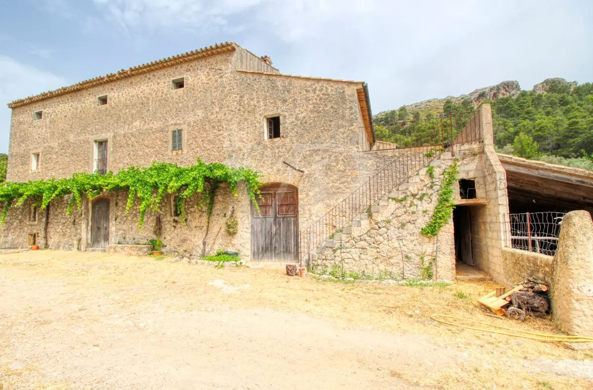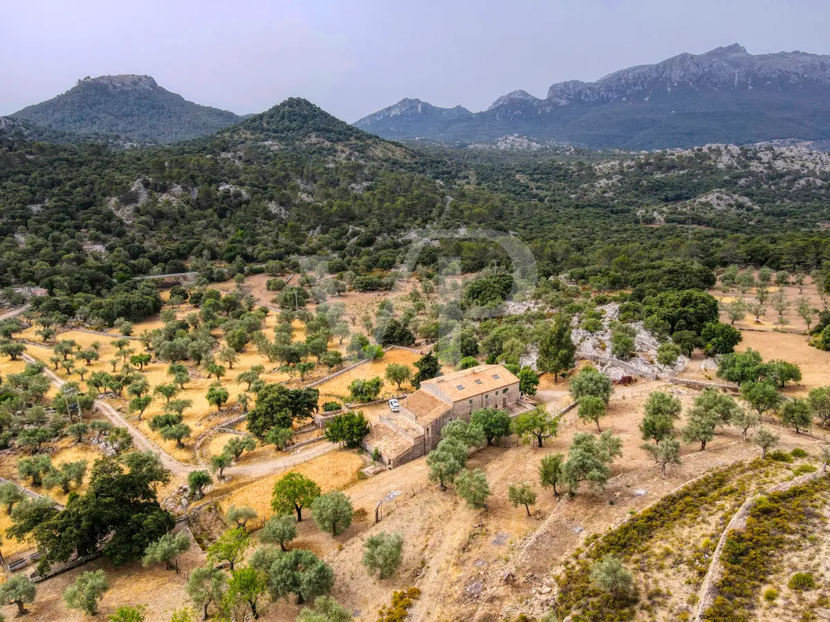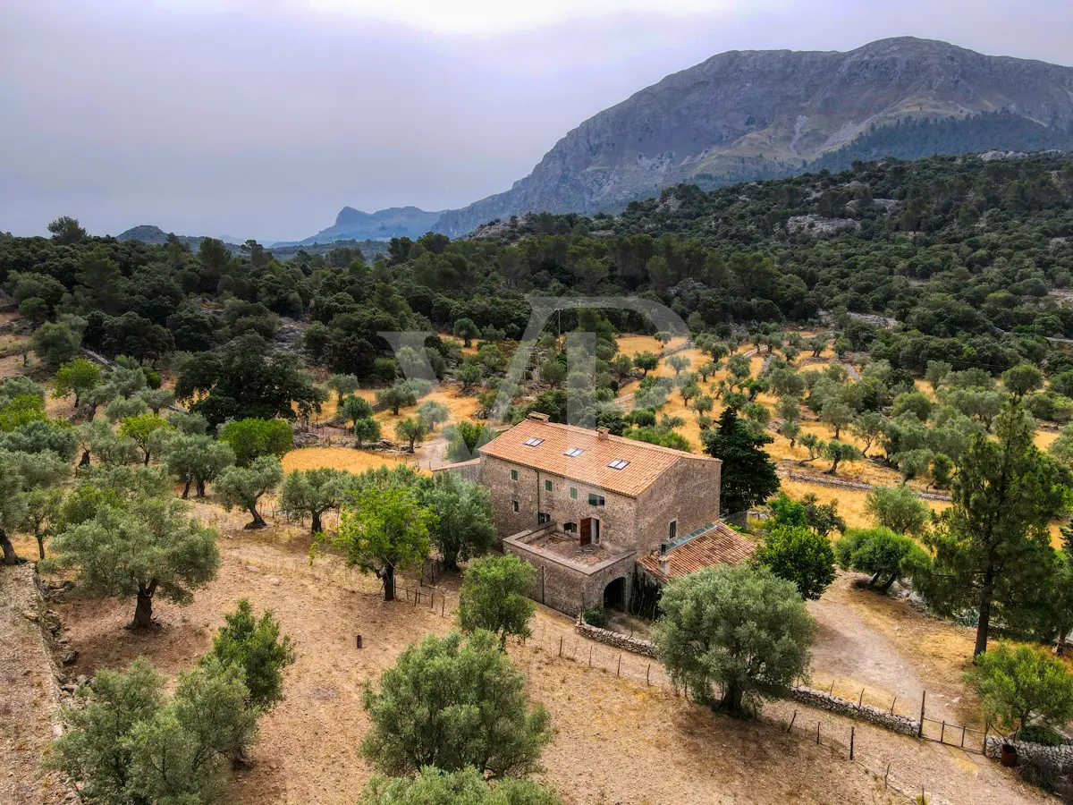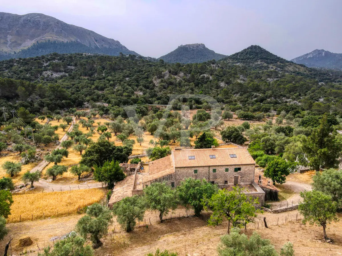 For sale is this fantastic historic finca located on 80 hectares in the natural landscape of the Serra de Tramuntana in Escorca. The finca includes approximately 8 hectares of olive groves, 23 hectares of holm oaks, 4 hectares of almond trees, 27 hectares of scrubland and 3.8 hectares of farmland. The farm is certified with the designation "organic production", which has meant a long conversion period. The production of high quality and tasty oil, fantastic honey and sheep grazing helps to sustain the farm by taking advantage of its large extension. The houses of the old farm "Possessió" are located at an altitude of 500 metres above sea level and are over 700 square metres in size and spread over three floors. The ground floor consists of an entrance hall, an old kitchen with a large fireplace, a storage room, an annex with an old bread oven, another fireplace and a spacious living room, and another annex at the back used as a garage. There is also a small independent storage room. On the first floor, a long corridor distributes all its bedrooms, direct exit to a fantastic terrace, living room with fireplace, the old owners' kitchen, large pantry and the old bathroom. The upper floor consists of two large rooms with sloping ceilings, separated by thick walls. This property surprises not only by the dimensions of the construction, but also by the size of the plot and its location. The thick stone walls, high ceilings with original wooden beams and original terracotta tiles are exceptional. The property has electricity, two of its own water wells, a natural water source from the mountains, a "safareig" water deposit and the possibility to build another one. All this gives this finca an abundance of water. An ecological finca that is part of Mallorca's culture and history, nestled in a fantastic and unique setting.
