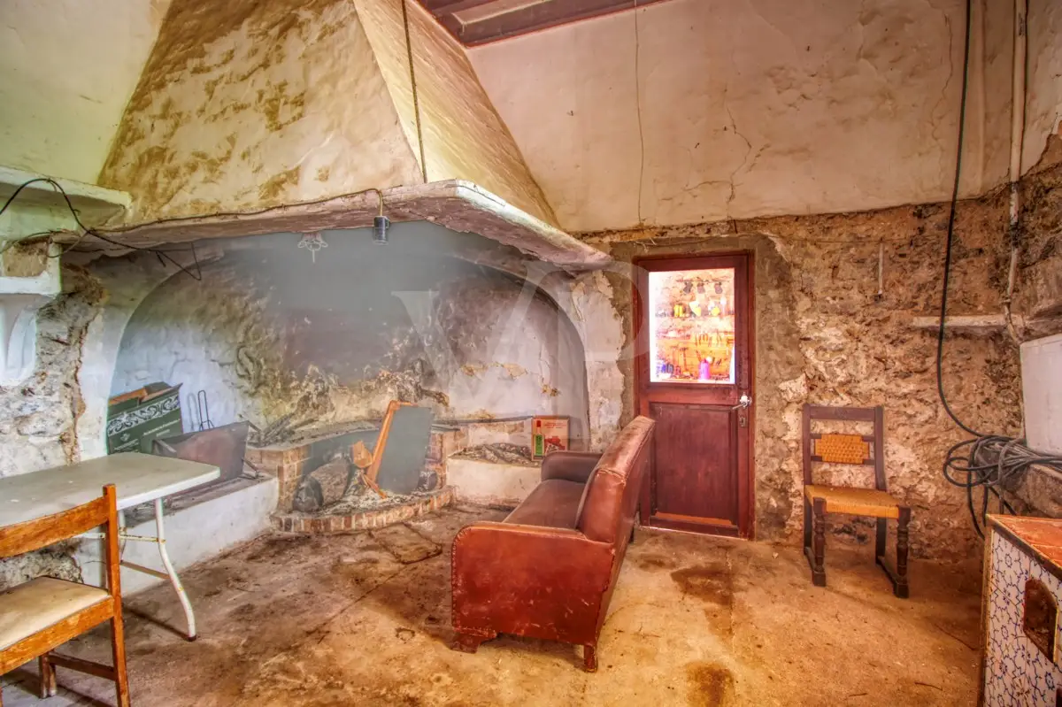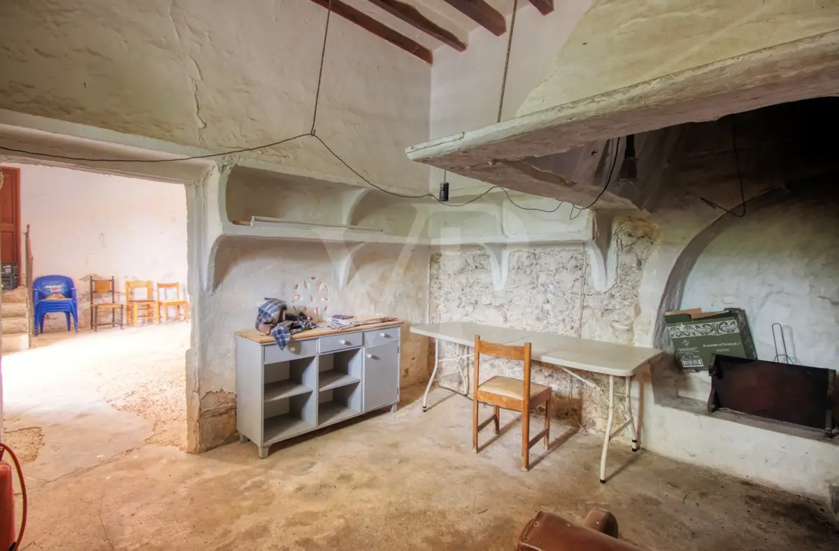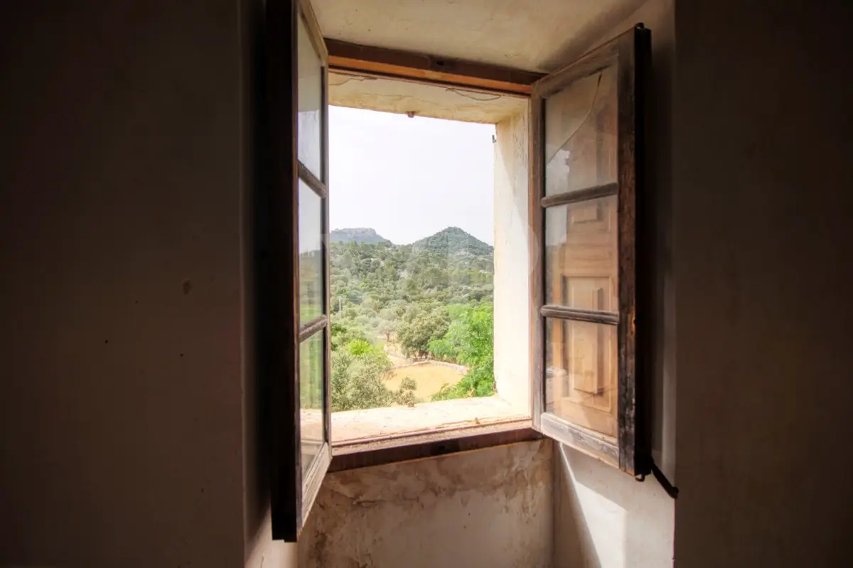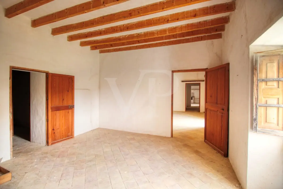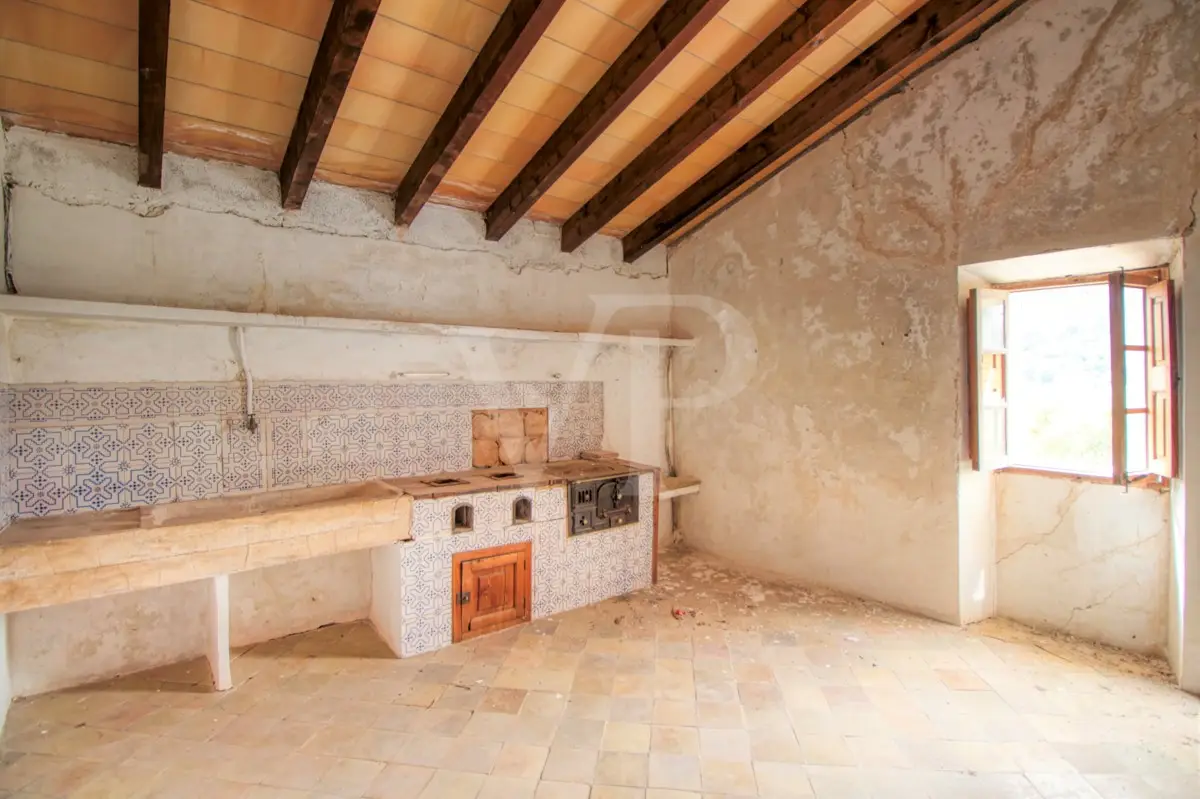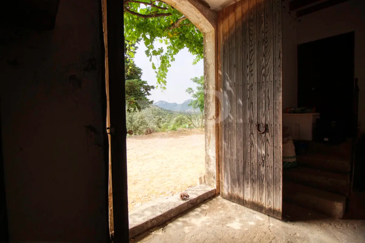 For sale is this fantastic historic finca located on 80 hectares in the natural landscape of the Serra de Tramuntana in Escorca. The finca includes approximately 8 hectares of olive groves, 23 hectares of holm oaks, 4 hectares of almond trees, 27 hectares of scrubland and 3.8 hectares of farmland. The farm is certified with the designation "organic production", which has meant a long conversion period. The production of high quality and tasty oil, fantastic honey and sheep grazing helps to sustain the farm by taking advantage of its large extension. The houses of the old farm "Possessió" are located at an altitude of 500 metres above sea level and are over 700 square metres in size and spread over three floors. The ground floor consists of an entrance hall, an old kitchen with a large fireplace, a storage room, an annex with an old bread oven, another fireplace and a spacious living room, and another annex at the back used as a garage. There is also a small independent storage room. On the first floor, a long corridor distributes all its bedrooms, direct exit to a fantastic terrace, living room with fireplace, the old owners' kitchen, large pantry and the old bathroom. The upper floor consists of two large rooms with sloping ceilings, separated by thick walls. This property surprises not only by the dimensions of the construction, but also by the size of the plot and its location. The thick stone walls, high ceilings with original wooden beams and original terracotta tiles are exceptional. The property has electricity, two of its own water wells, a natural water source from the mountains, a "safareig" water deposit and the possibility to build another one. All this gives this finca an abundance of water. An ecological finca that is part of Mallorca's culture and history, nestled in a fantastic and unique setting.