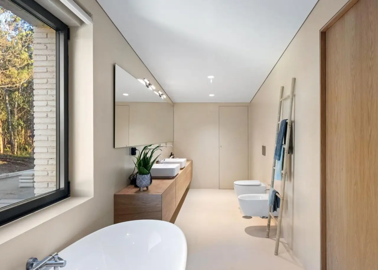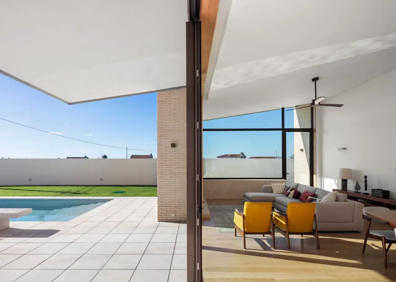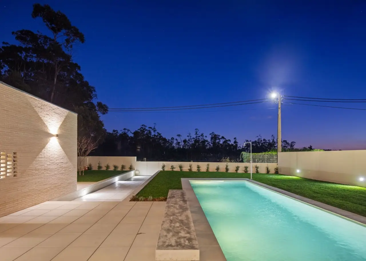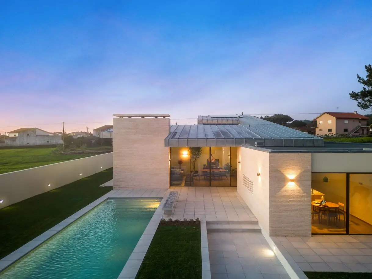 Contemporary 4+1 bedroom villa as new, set in a generous plot of land and with the signature of one of the most renowned architectural firms in the north of the country, for sale in Esposende. It was built with high quality materials and is mainly on the first floor, where you'll find the living and dining rooms - with high ceilings and large glazed open ings - allowing access and views of the pool and lawned garden. This floor also houses the independent kitchen with dining area, the two suites with access to the large garden, the guest bedroom and the office, which could be adapted for another function, such as a gym. On the second floor is a quiet and private master suite with dressing room, large bathroom and a private terrace. This villa also has a closed garage for two cars, and it is possible to park two more cars outside. The area's beaches are just 5 minutes away, as are the road accesses. CHARACTERISTICS: Plot Area: 1 000 m2 | 10 764 sq ft Deployment Area: 339 m2 | 3 649 sq ft Building Area: 418 m2 | 4 497 sq ft Bedrooms: 4 Bathrooms: 5 Garage: 4 Energy efficiency: A+ FEATURES: Two suites on the first floor; A master suite with terrace on the first floor; Swimming pool.