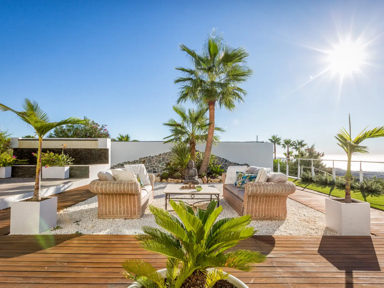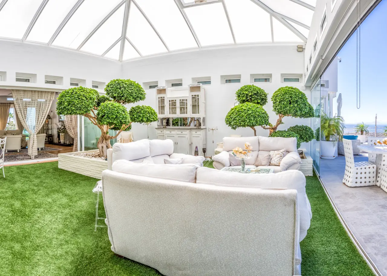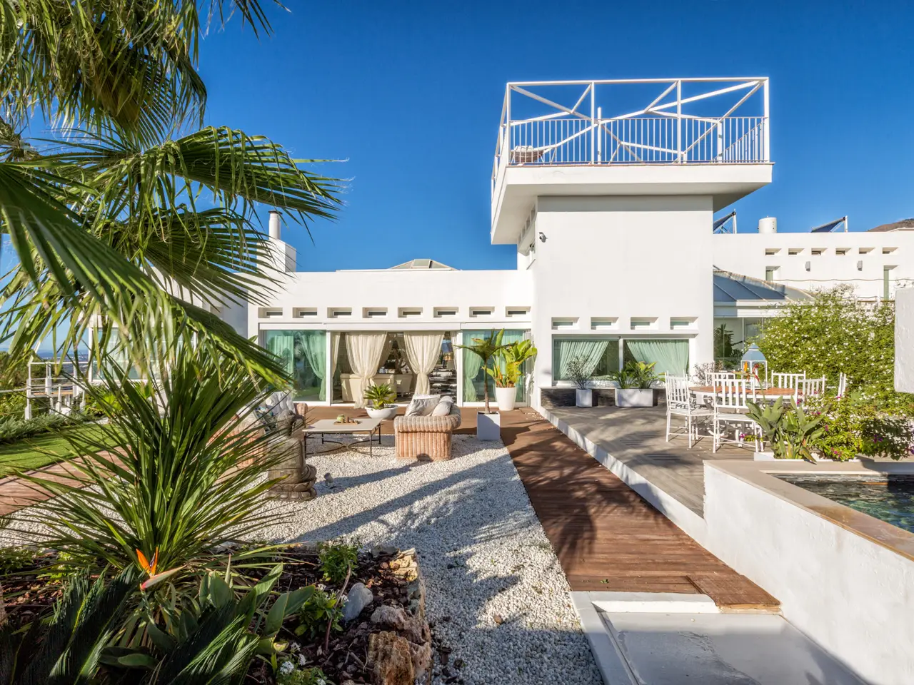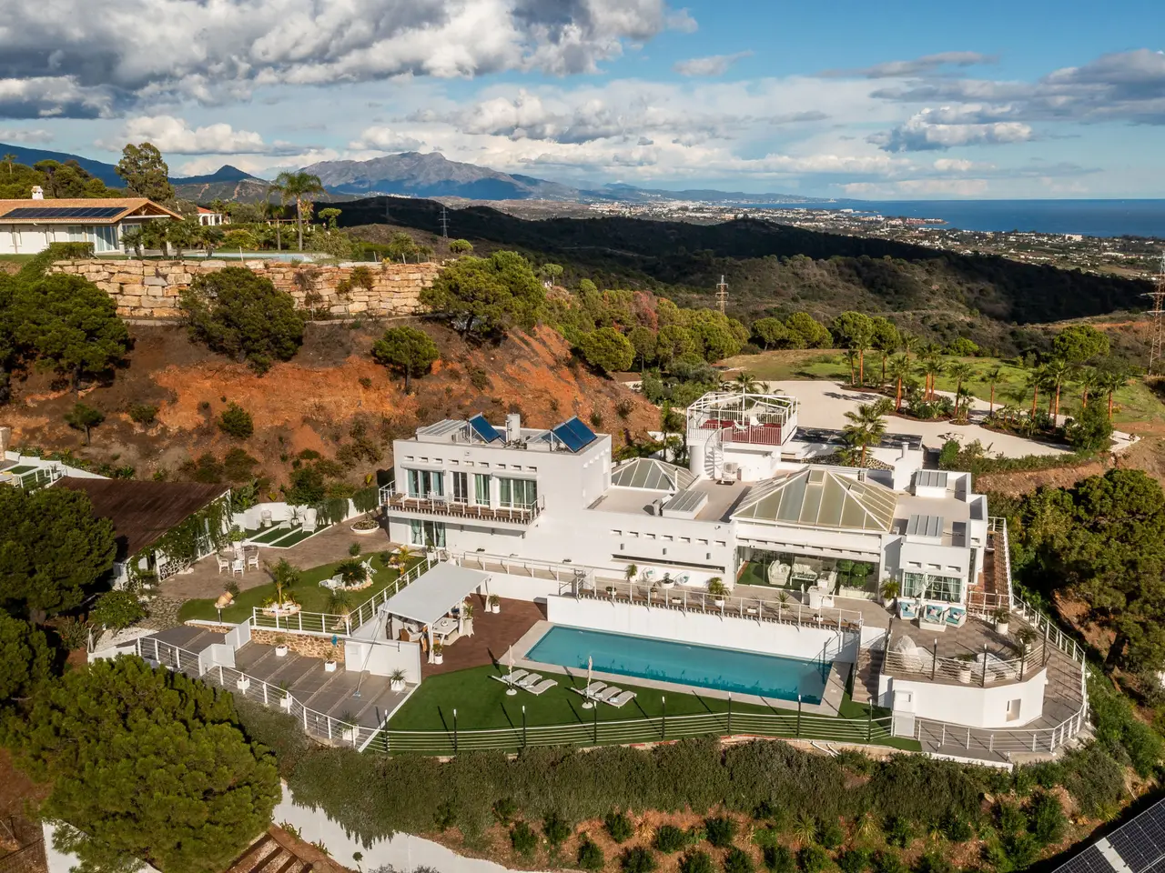 We present to you a unique property, located in an unparalleled natural setting where the sky meets the sea. This exceptional home offers 300-degree panoramic views encompassing Marbella, Gibraltar, and Africa, making every sunrise an unforgettable experience. Live surrounded by nature and wake up to the sound of birds in this exclusive mansion that combines privacy, prestige, and security in an unmatched environment. Located in the most distinguished area of Estepona, Málaga, this villa stands as an architectural gem. With 750 m² built on an extensive plot of over 15,000 m², it is ideal for those seeking a sophisticated home with all the luxury and exclusivity. The interior design, decorated with impeccable taste and materials of the highest quality, is a reflection of elegance and distinction. The interiors are perfectly connected with the outdoor spaces. Imagine a living room bathed in natural light, with a winter garden and a transparent dome that creates a unique atmosphere. The kitchen, with an impressive central island and fireplace, offers a functional and cozy space with stunning views of the Mediterranean. The property features two exclusive 45 m² suites and five bright double bedrooms, designed with style and comfort, ideal for family or guests. The mansion boasts three main living rooms, each with an exclusive design tailored to different moments of your day. Outside, you will enjoy an unparalleled experience: perfectly maintained Mediterranean gardens, a chill-out corner with a waterfall, barbecue area, tropical pathways, an olive garden, and even a space prepared for a helipad. Designed to be self-sufficient, the property has well water for the gardens and pool, as well as potable water from the network. It also features a photovoltaic installation with 60 solar panels and batteries, capable of covering 90% of the electricity consumption, making it an efficient and sustainable home. Located just 5 minutes from the center of Estepona, this villa allows you to enjoy a vibrant cultural life, exquisite gastronomic offerings, and dreamlike beaches. Additionally, the area offers all necessary services, such as international schools, supermarkets, restaurants, and health centers, with easy access to the highway, international airport, and other destinations on the Costa del Sol in less than an hour. A home where luxury, nature, and comfort blend perfectly. We invite you to visit and experience everything this incredible property has to offer!