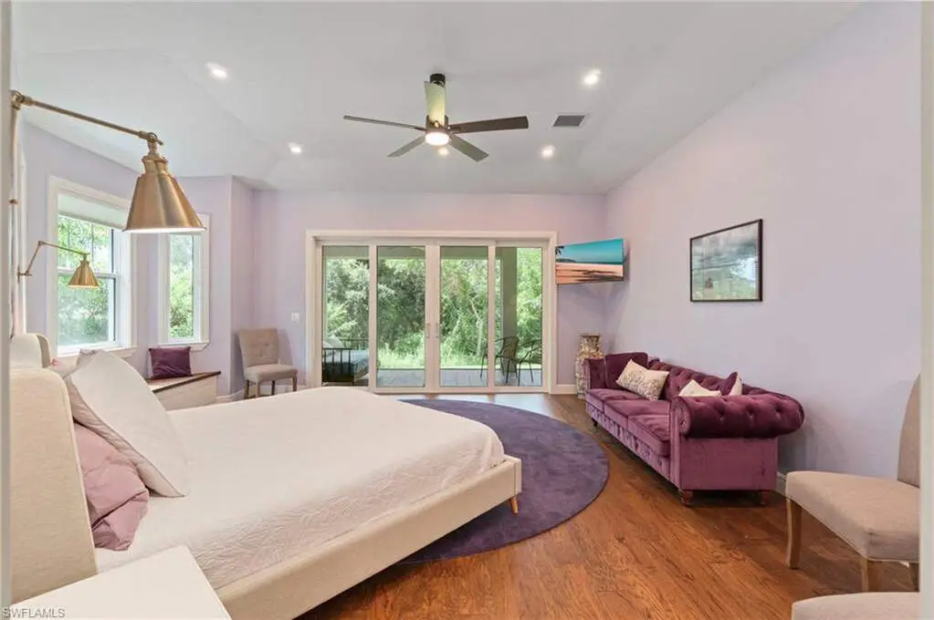2024-BUILT ESTATE SET ON A PRIVATE 4-ACRE LOT with 200 feet of direct Gulf-access frontage along the scenic Estero River, this custom residence offers a rare opportunity to enjoy both privacy and waterfront living. Two private docks (one with a 10,000-lb covered stainless steel lift) provide effortless water access and beautiful views across to Koreshan State Park. Designed by renowned architect Dan Sater, this property combines timeless craftsmanship with thoughtful modern upgrades, creating the ideal family compound or sanctuary for those who value space, security, and nature. Spanning over 3,000 sq ft under air, this home features 4 bedrooms, 3.5 bathrooms, with soaring ceilings ranging from 11 to 16 feet. Offers wood-beamed living spaces, hardwood flooring throughout, hurricane-impact windows and doors, and energy-efficient solar panels. The gourmet kitchen showcases Cafe GE appliance package with three ovens, while the outdoor kitchen with built-in gas grill invites year-round entertaining. Step outside to more than 1,600 sq ft of porch and patio space, plenty of room to add a pool, a 950-sq-ft 3-car garage with soaring 30-foot ceilings, a gated entry, and a 200-foot private paver driveway. Conveniently located near Coconut Point, Publix, Waterside Shops, 5th Avenue, and RSW International Airport.