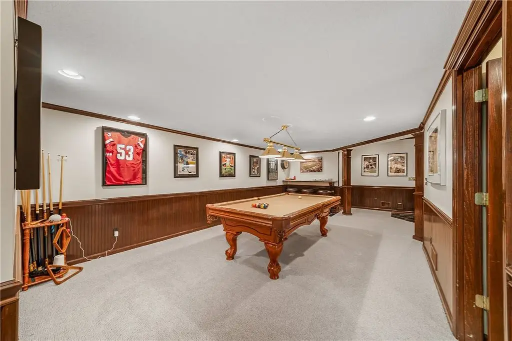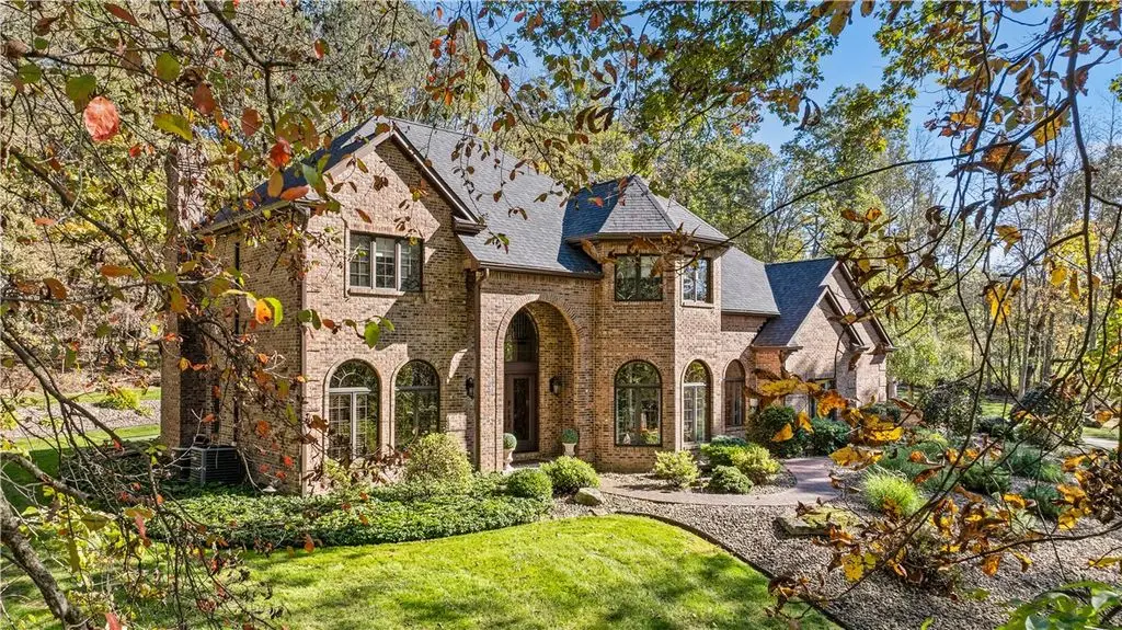 Perfectly situated on 3.6 secluded acres, 340 Fassinger Road is perched on the hill like a fortress. This all-brick estate offers 5 bedrooms, including two primary suites - one on the main level and another upstairs - plus 4 full and 2 half baths. The home's high-end kitchen features custom cabinetry, premium appliances, and seamlessly flows into the massive living and entertaining space. Other perks include a finished lower level with a full bar (and kegerator!), wine cellar, and a dog-washing station. Outside, the serenity continues: a sprawling yard bordered by mature trees creates a natural retreat, complete with a backyard patio with motorized retractable awning ideal relaxation or gatherings. Sportmens or Car Enthusiasts will love the two-story garage with ample storage and workspace. This fortress has a new roof and was designed for comfort, function, and quiet luxury - total privacy, modern upgrades, and timeless strength is just minutes from Cranberry's conveniences.