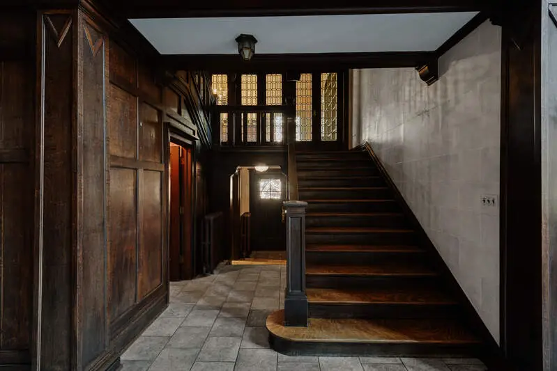Evanston Landmark - This five bedroom residence and two bedroom coach house offers a rare opportunity to own a piece of architectural history. Just steps from Evanston's scenic lakefront, parks, and beaches, this exceptional English Tudor estate is a historic masterpiece designed by renowned architect Ernest Mayo. Situated on a double lot with lush, manicured grounds and a private fenced yard, this estate seamlessly blends timeless elegance with masterful craftsmanship. The cross-sawn oak paneling, leaded glass windows, and intricate architectural details make this home an enduring beauty. A breathtaking two-story great hall welcomes you inside, featuring soaring 20-foot ceilings and a magnificent fireplace, a true statement of grandeur and warmth. The formal living room, sunroom, and receiving room each exude their own distinctive charm, while the large formal dining room sets the stage for elegant entertaining. A sun-drenched solarium and beautifully updated kitchen overlook the private backyard. Ascending the grand staircase, you'll find a mezzanine-level library overlooking the great hall, offering a serene retreat. The second floor features generously sized bedrooms and a stunning view through the two-story wall of windows. The expansive third floor boasts a grand ballroom and versatile additional spaces, including a kitchenette-ideal for a home office, creative studio, or guest quarters. Adding to its appeal, the estate includes a charming coach house with a two-car garage and a spacious two-bedroom apartment-perfect for guests, extended family, or potential rental income. Porte-cochere offers additional 2 car parking. Expertly maintained, the estate seamlessly combines historic charm with modern convenience, boasting a new roof, updated heating, and new air conditioning systems for year-round comfort. The landscaped grounds provide a picturesque backdrop for outdoor entertaining, quiet relaxation, or even the addition of a pool. Ideally positioned within 20 minutes of downtown and walking distance of fine dining, boutique shopping, and recreational amenities, this estate offers the perfect balance of privacy and convenience. Own a piece of history in one of Chicagoland's most sought-after locations.