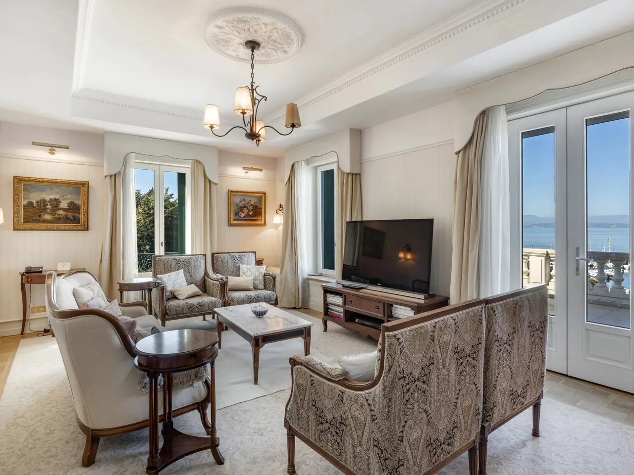 Discover this prestigious detached villa, built in the 1930s, embodying all the architectural elegance of its time. Tastefully and thoroughly renovated with respect for its original character, it seamlessly blends historic charm with modern comfort, all in an exceptional setting. With over 300 m² of living space (480 m² of usable area) and six en-suite bedrooms, this villa offers a generous and welcoming environment, ideal for hosting family and friends in a warm and inviting setting. Located just a few minutes’ walk from the town, the property offers breathtaking panoramic views of the lake, a beautifully landscaped and tree-filled garden, a swimming pool, and generous volumes spread across multiple levels. From the moment you enter, you’ll be captivated by the refined features: impressive ceiling heights, solid wood flooring, elegant moldings, and period wrought ironwork—all carefully preserved and enhanced during the renovation. Each room reflects the timeless character of the 1930s, while offering modern, high-end finishes. Exteriors : • Stunning panoramic lake view • Beautifully landscaped and mature garden • Swimming pool • Two large terraces and a balcony Interior – Designed for Comfort and Functionality: Ground floor : • Elegant entrance hall • Office, ideal for remote work or a professional activity • Spacious, independent kitchen • Bright and welcoming living room • Dining room • Guest WC with washbasin First floor: • A large master suite with dressing rooms, two private bathrooms, and a private lounge • An additional en-suite bedroom with private bathroom Second floor: • Four en-suite bedrooms, each with its own bathroom, including one with a balcony Fully finished basement: • Three rooms • Professional-grade kitchen • Offices • Multiple bathrooms • Utility rooms, workshop, boiler room, pool equipment room • Extensive storage and technical areas