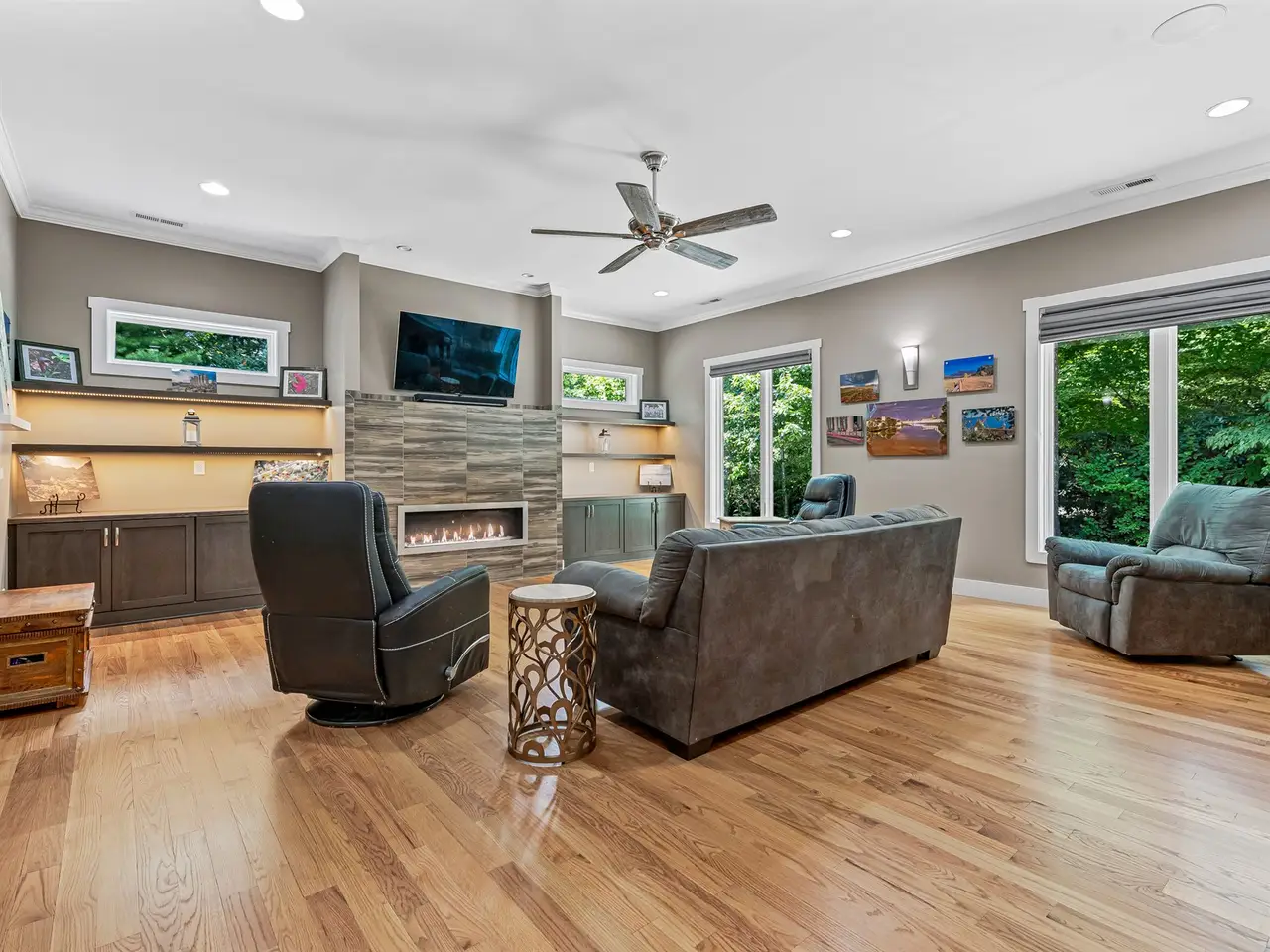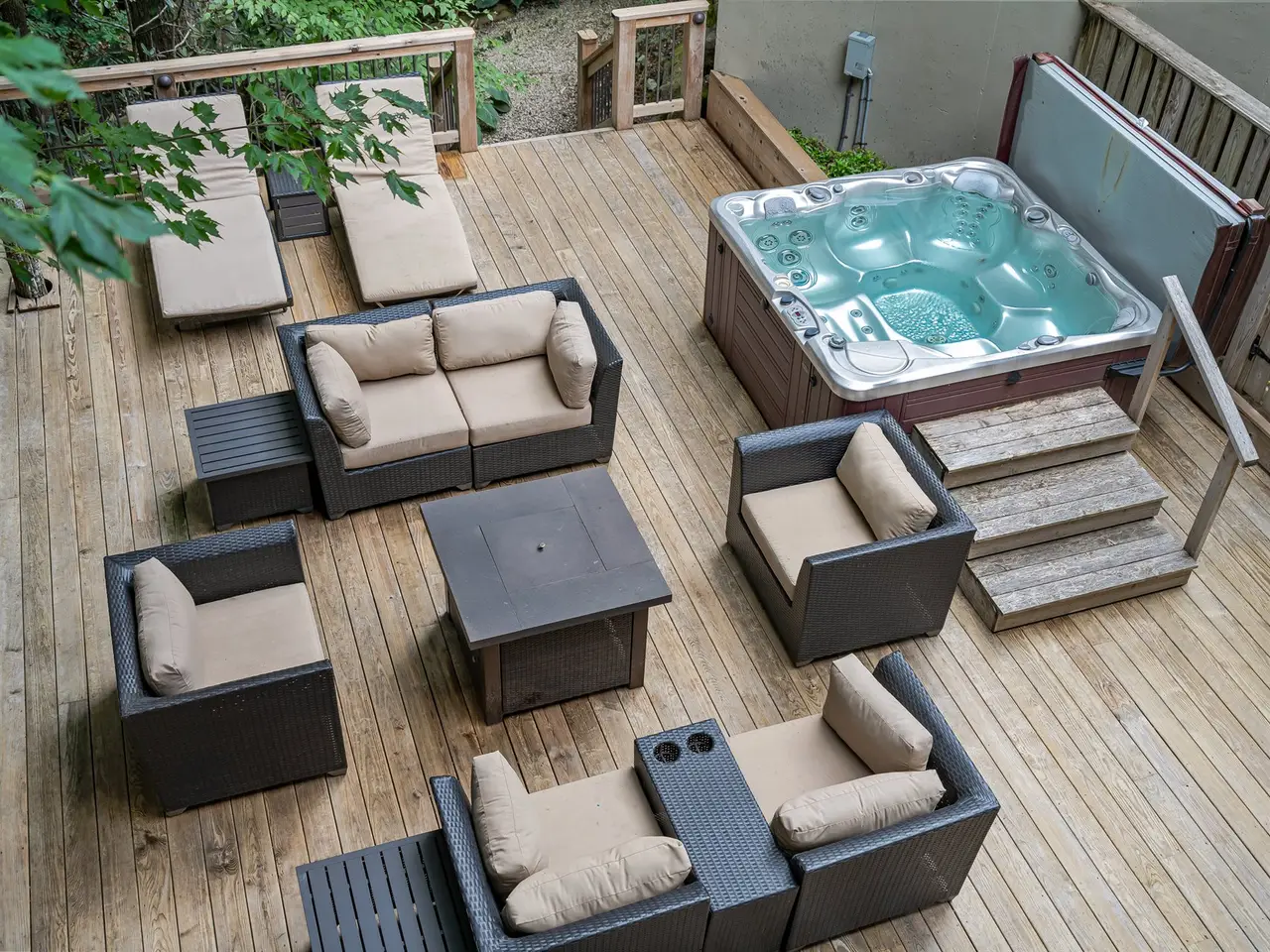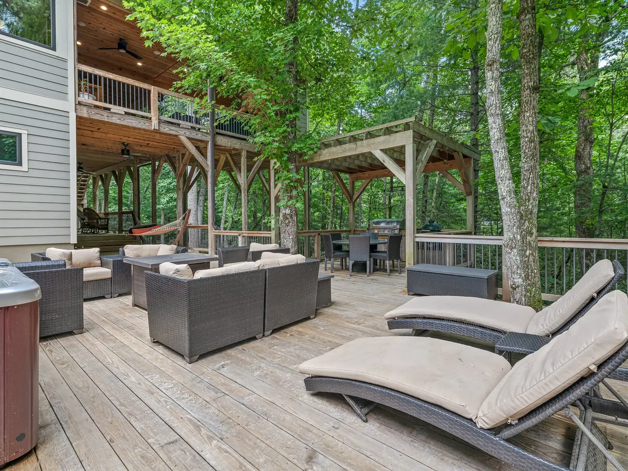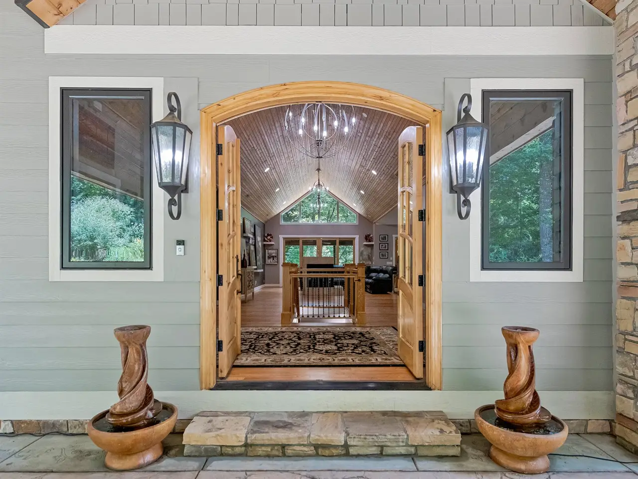 Discover elevated mountain luxury at 105 Blackberry Lane a private retreat where sophistication meets serenity. Enter through a custom arched Italian door into a gallery-style foyer with soaring ceilings and custom lighting. Entertain effortlessly in the chef's kitchen, great room, and music nook and large second living area, or host memorable evenings on the tree-top covered deck with an Earth stone pizza oven and artisan wood-burning fireplace. Enjoy 2,400+ SF of outdoor living with a spa-grade hot tub, pergola grilling area, and forest view firepit deck. The primary suite offers a spa-inspired bath, private balcony, and infrared sauna. Most of the home was updated in 2016, and the separate storage building was also added in 2016. Curated gardens, stone paths, water features, and seamless indoor-outdoor living enhance the experience of this beautiful property. It's not just a home, it's a mountain sanctuary.