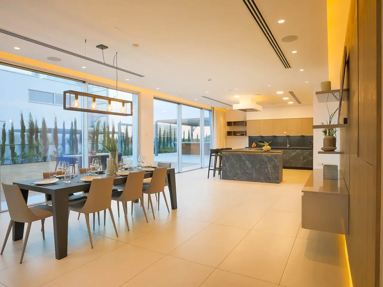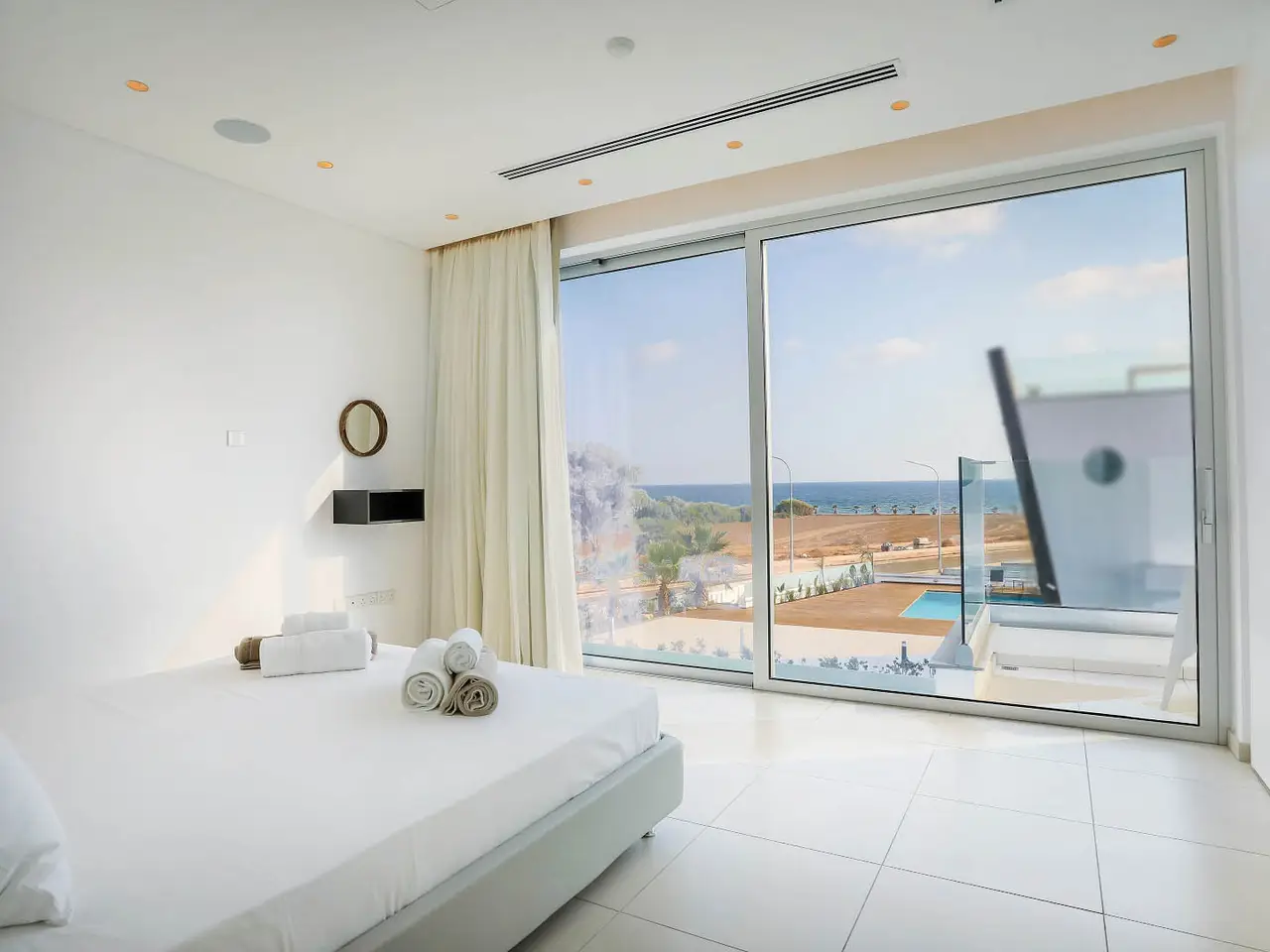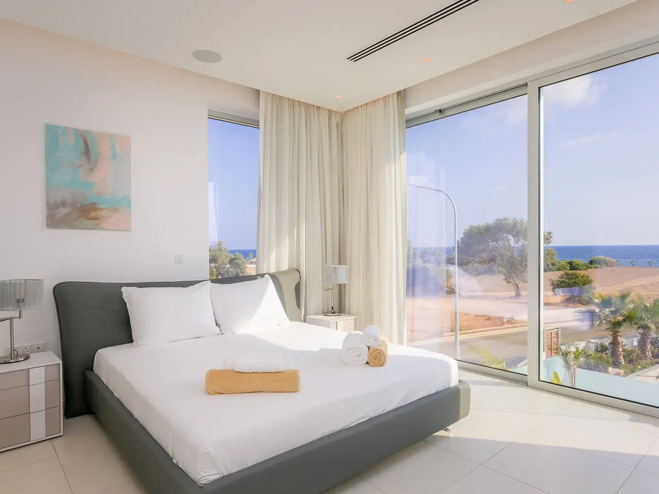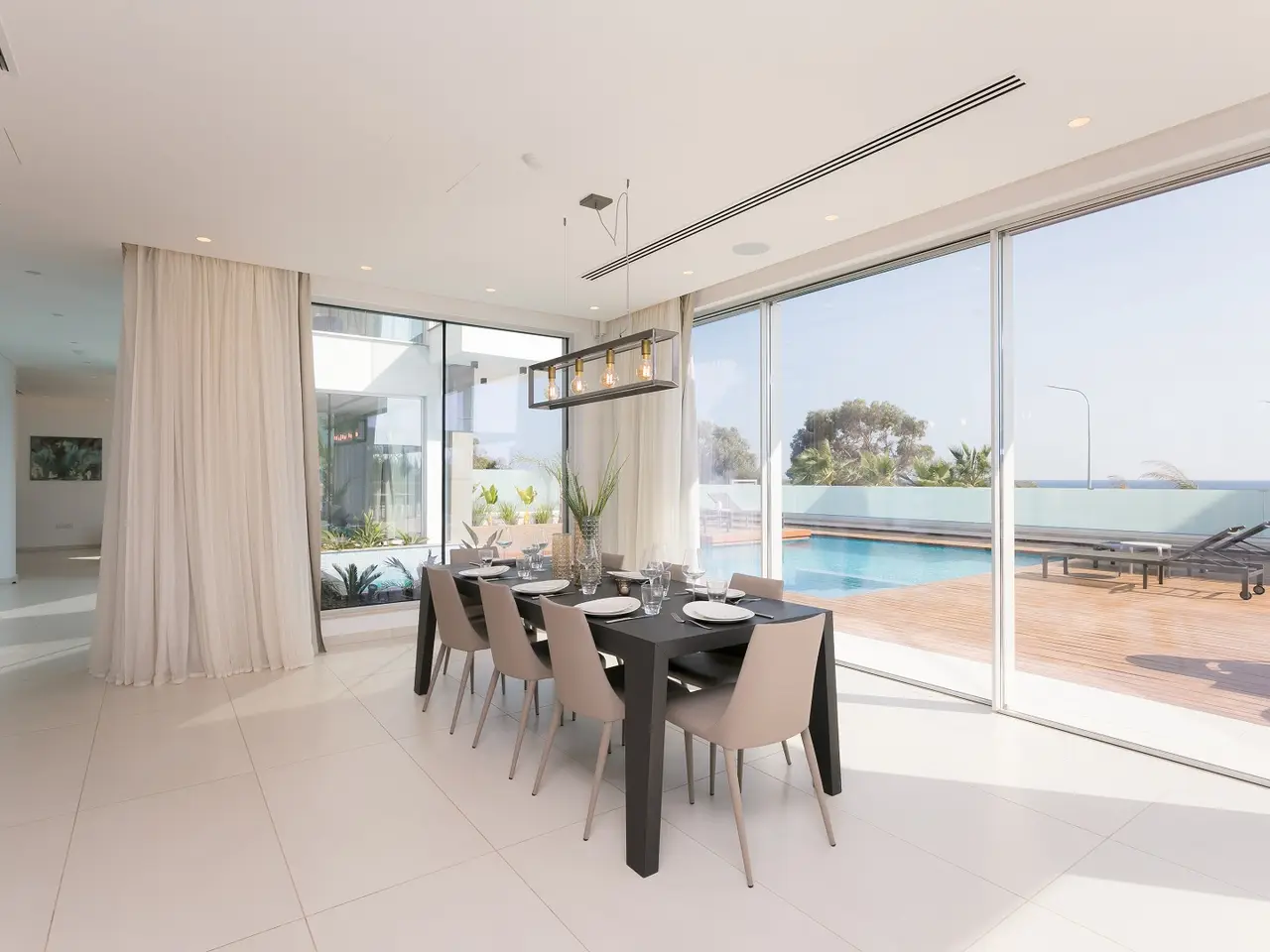 Experience coastal luxury at its finest in this stunning villa nestled between Ayia Napa and Cape Greco. Designed for those seeking opulence and tranquility, this residence offers proximity to the sea and exciting resort amenities while providing a quiet retreat for unwinding. Situated within a modern residential development, this villa is one of six distinctive homes, each occupying its own expansive plot. Overlooking the turquoise waves of Cape Greco just 150 meters away, the villa boasts contemporary architecture that seamlessly merges aesthetic appeal with practical functionality, utilizing premium finishing materials for a modern, bright, and crisp island design. Spanning three floors, the interior layout epitomizes comfort and refinement. Spacious rooms with French windows flood the villa with natural light, enhancing the airy ambiance and offering captivating views. This property presents an ideal setting for 21st-century luxury living by the sea.